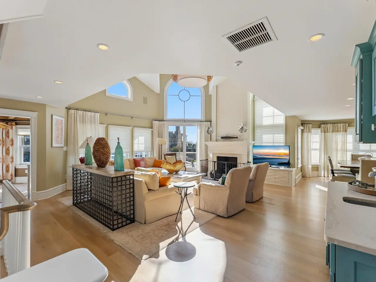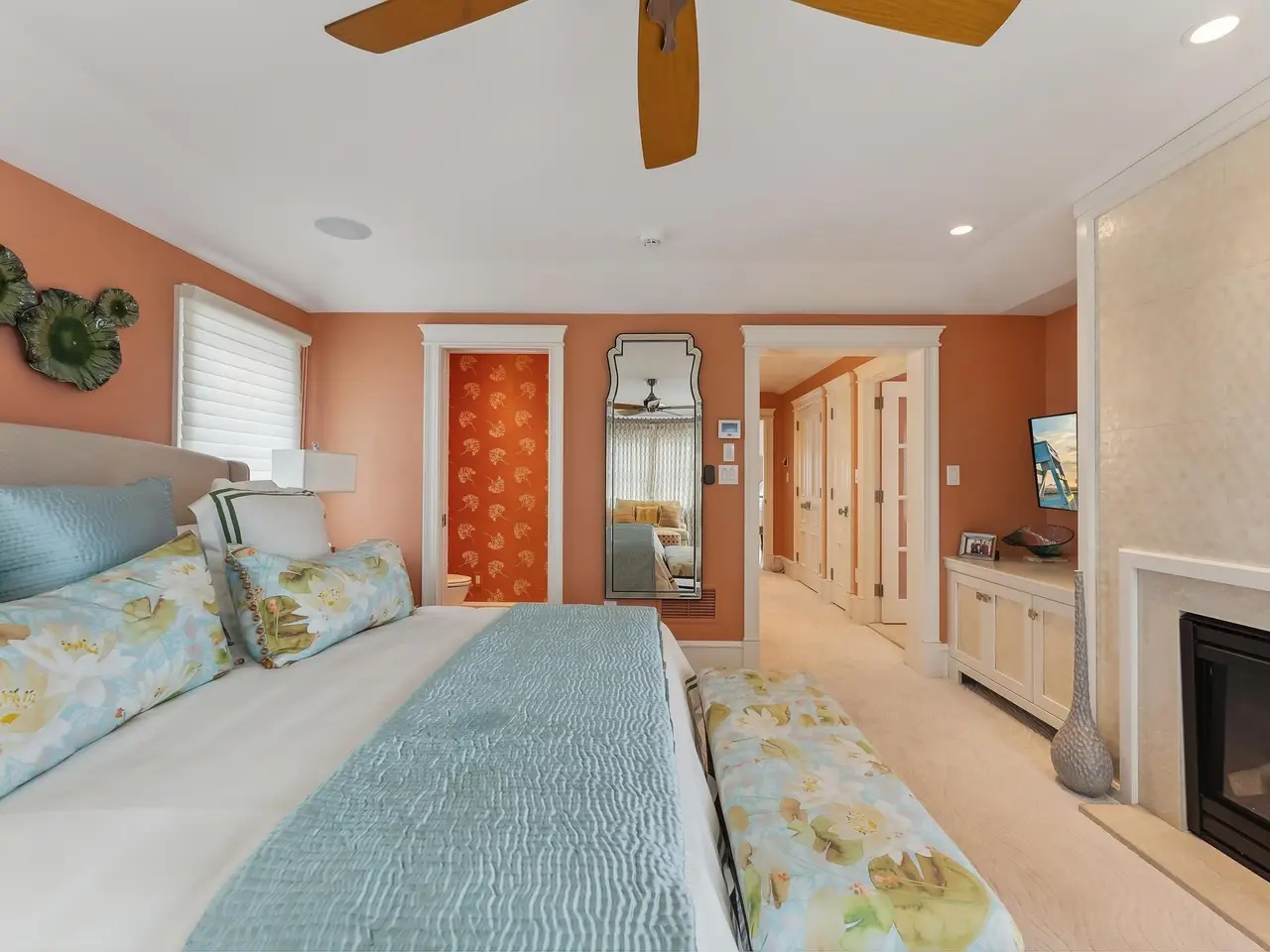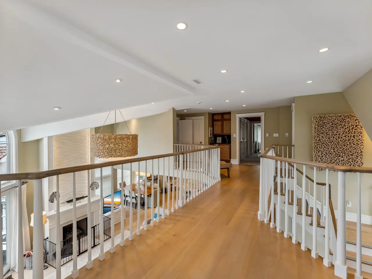 Welcome to 182 65th Street, a stunning summer haven located only 2 homes from Avalon's premier south end 65th St. beach. Completed in 2013, the home was expertly crafted by architect Paul Kiss of OSK Architects, meticulously built and continuously updated by Brandywine Builders, and professionally decorated by Joyce Pearl of Interior Concepts Design of MD. The high-quality design features and bespoke materials reflect superior craftsmanship in every detail. The decor captures a tranquil island-inspired vibe intertwined with refined finishes, all in pristine condition due to very light seasonal usage by owners - home presents like it was just finished very recently and is the ideal beach retreat for creating cherished family memories for generations to come. The three stories flow seamlessly with hardwood floors, installed and honed in place throughout all areas of the home. Entering from the driveway you will find a four-stop elevator for convenient transport of luggage and groceries, plus an electric car charging outlet. Ascend the front steps to a mahogany wraparound deck where a grand custom entry door awaits. Entering the first floor, French doors lead into a spacious family room with wet bar and sliders that open onto the covered front deck. Down the hall, three generously sized bedrooms each equipped with ensuite baths await, one enhanced by a decorative wall of opaque dune reeds and grasses evocative of a serene spa atmosphere. The two rear bedrooms offer sliders leading to the four season back porch which opens directly to the backyard pool area. The porch features motorized shutters on all sides allowing for privacy and can be adjusted for open-air enjoyment. The full southern exposed pool is a standout feature complete with an "endless pool fast lane" w power cover for seasonal use. Also on the first floor, a separate east side entrance leads into a full-size laundry room with side-by-side washer and dryer, ample storage closets and hall cabinetry housing the full home 'Creston' integrated technology system. The second level showcases an impressive great room spanning the north and east sides of the home, complete with a wet bar, soaring cathedral ceiling, and gas fireplace with a dramatic wave inspired cove lighting carved fixture reaching to the ceiling. The great room offers sliders onto the front wraparound sundeck ideal for lounging and soaking in the breathtaking ocean views. The kitchen is designed for the culinary enthusiast, featuring premium cabinets, countertops, and appliances, including a custom built-in refrigerator. A second enclosed four season porch off the rear of the kitchen provides additional space for outdoor dining and motorized shutters for added privacy and protection during the off-season. This level also includes a junior master suite with its own access to the rear porch, as well as a charming turreted sitting area with plantation-style ceiling opening onto the front wraparound beach view deck. The third level master suite is the crowning jewel of this home. Indulge in luxury with a full-sized ocean view gym featuring soundproof flooring, a private turreted room on the east side with it's own deck for morning coffee to take in the spectacular ocean sunrise, and a lavish master bath equipped with a jetted tub and heated floors. This owner's retreat features an additional deck off the bathroom & bedroom, a separate powder room, gas fireplace, a wet bar, a second stacked washer-dryer, and spacious walk-in closet. With countless exceptional features, 182 65th Street is a must-visit property that embodies a luxurious tropical essence within a captivating coastal environment. Offered furnished w exclusions.