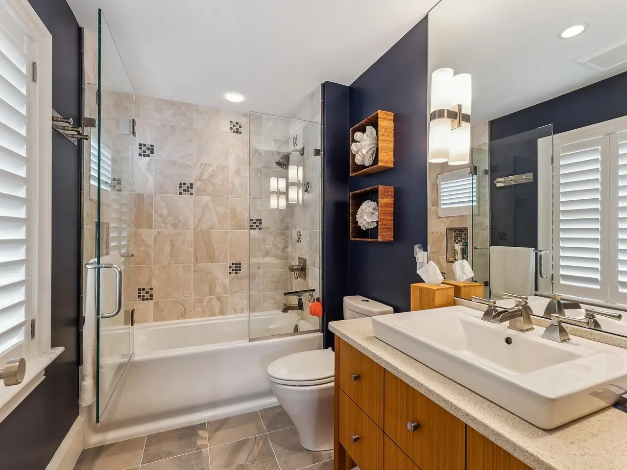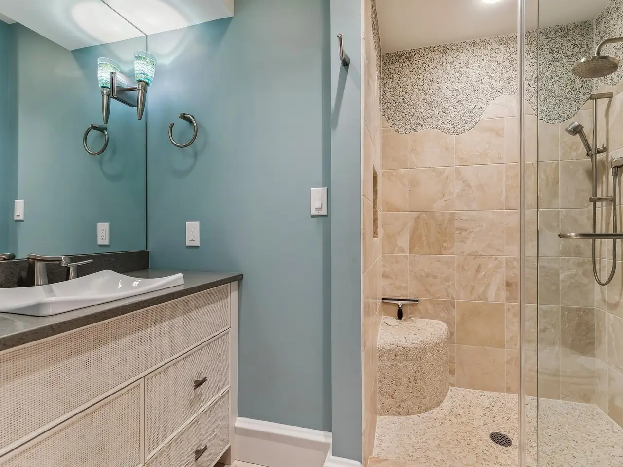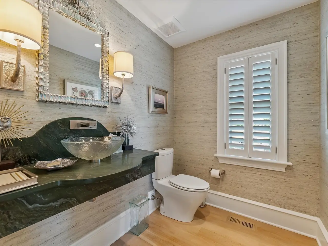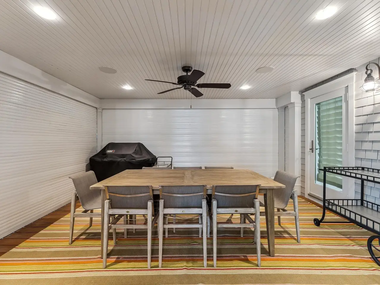 Welcome to 182 65th Street, a stunning summer haven located only 2 homes from Avalon's premier south end 65th St. beach. Completed in 2013, the home was expertly crafted by architect Paul Kiss of OSK Architects, meticulously built and continuously updated by Brandywine Builders, and professionally decorated by Joyce Pearl of Interior Concepts Design of MD. The high-quality design features and bespoke materials reflect superior craftsmanship in every detail. The decor captures a tranquil island-inspired vibe intertwined with refined finishes, all in pristine condition due to very light seasonal usage by owners - home presents like it was just finished very recently and is the ideal beach retreat for creating cherished family memories for generations to come. The three stories flow seamlessly with hardwood floors, installed and honed in place throughout all areas of the home. Entering from the driveway you will find a four-stop elevator for convenient transport of luggage and groceries, plus an electric car charging outlet. Ascend the front steps to a mahogany wraparound deck where a grand custom entry door awaits. Entering the first floor, French doors lead into a spacious family room with wet bar and sliders that open onto the covered front deck. Down the hall, three generously sized bedrooms each equipped with ensuite baths await, one enhanced by a decorative wall of opaque dune reeds and grasses evocative of a serene spa atmosphere. The two rear bedrooms offer sliders leading to the four season back porch which opens directly to the backyard pool area. The porch features motorized shutters on all sides allowing for privacy and can be adjusted for open-air enjoyment. The full southern exposed pool is a standout feature complete with an "endless pool fast lane" w power cover for seasonal use. Also on the first floor, a separate east side entrance leads into a full-size laundry room with side-by-side washer and dryer, ample storage closets and hall cabinetry housing the full home 'Creston' integrated technology system. The second level showcases an impressive great room spanning the north and east sides of the home, complete with a wet bar, soaring cathedral ceiling, and gas fireplace with a dramatic wave inspired cove lighting carved fixture reaching to the ceiling. The great room offers sliders onto the front wraparound sundeck ideal for lounging and soaking in the breathtaking ocean views. The kitchen is designed for the culinary enthusiast, featuring premium cabinets, countertops, and appliances, including a custom built-in refrigerator. A second enclosed four season porch off the rear of the kitchen provides additional space for outdoor dining and motorized shutters for added privacy and protection during the off-season. This level also includes a junior master suite with its own access to the rear porch, as well as a charming turreted sitting area with plantation-style ceiling opening onto the front wraparound beach view deck. The third level master suite is the crowning jewel of this home. Indulge in luxury with a full-sized ocean view gym featuring soundproof flooring, a private turreted room on the east side with it's own deck for morning coffee to take in the spectacular ocean sunrise, and a lavish master bath equipped with a jetted tub and heated floors. This owner's retreat features an additional deck off the bathroom & bedroom, a separate powder room, gas fireplace, a wet bar, a second stacked washer-dryer, and spacious walk-in closet. With countless exceptional features, 182 65th Street is a must-visit property that embodies a luxurious tropical essence within a captivating coastal environment. Offered furnished w exclusions.