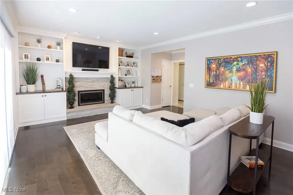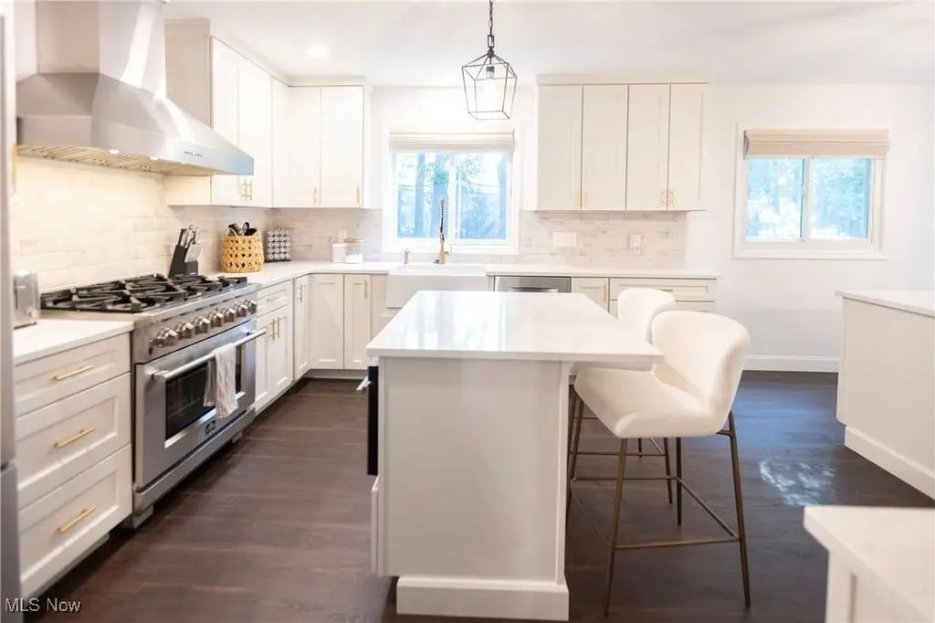 Perfectly situated in a park-like setting, this phenomenal Westwinds Colonial offers modern renovations including a dream kitchen, and unparalleled master wing addition! The two-story foyer greets you with a soaring entryway and focal circular staircase, and is flanked by the first of three home offices, and cozy formal dining room. The chef in your life will love the gourmet kitchen featuring new white cabinetry, quartz counters, two islands, stainless steel appliances including a Forno six burner gas range, and hardwood floors that flow throughout most of the first floor. There's also an expanded pantry, coffee bar, and stylish wet bar with custom cabinets. This opens beautifully to the remodeled family room. You'll love the gas fireplace with modern stone surround flanked by bright white built-ins, and four panel slider that lets the sunshine in and offers views of the stunning backyard! Also find a 1/2 bath and first floor laundry for convenience. Upstairs discover a master wing addition that is truly one of kind. The oversized bedroom and sitting room area open to a stylish bathroom with tiled shower, dual sinks, storage bench, and expansive walk-in closet! Next discover the executive office with vaulted ceilings, wood floors, rich built-ins and windows galore! An absolutely charming third office/craft/bonus room is found across the hall. Three additional large bedrooms share an updated hall bath with double sinks. The lower level features a Rec Room with durable NatureStone flooring, storage, and bath. Outside enjoy this expansive acre lot filled with serene landscaping that boasts a decorative stone paver patio, firepit area, and darling shed. Three car garage! Updates galore incl. newer windows, HVAC, indoor/outdoor speaker system, and so much more. Westwinds is Avon Lake's beloved pool/tennis/pickleball community, adjacent to Lake Erie, and 25 mins to downtown CLE. Welcome to the Westwinds lifestyle!
