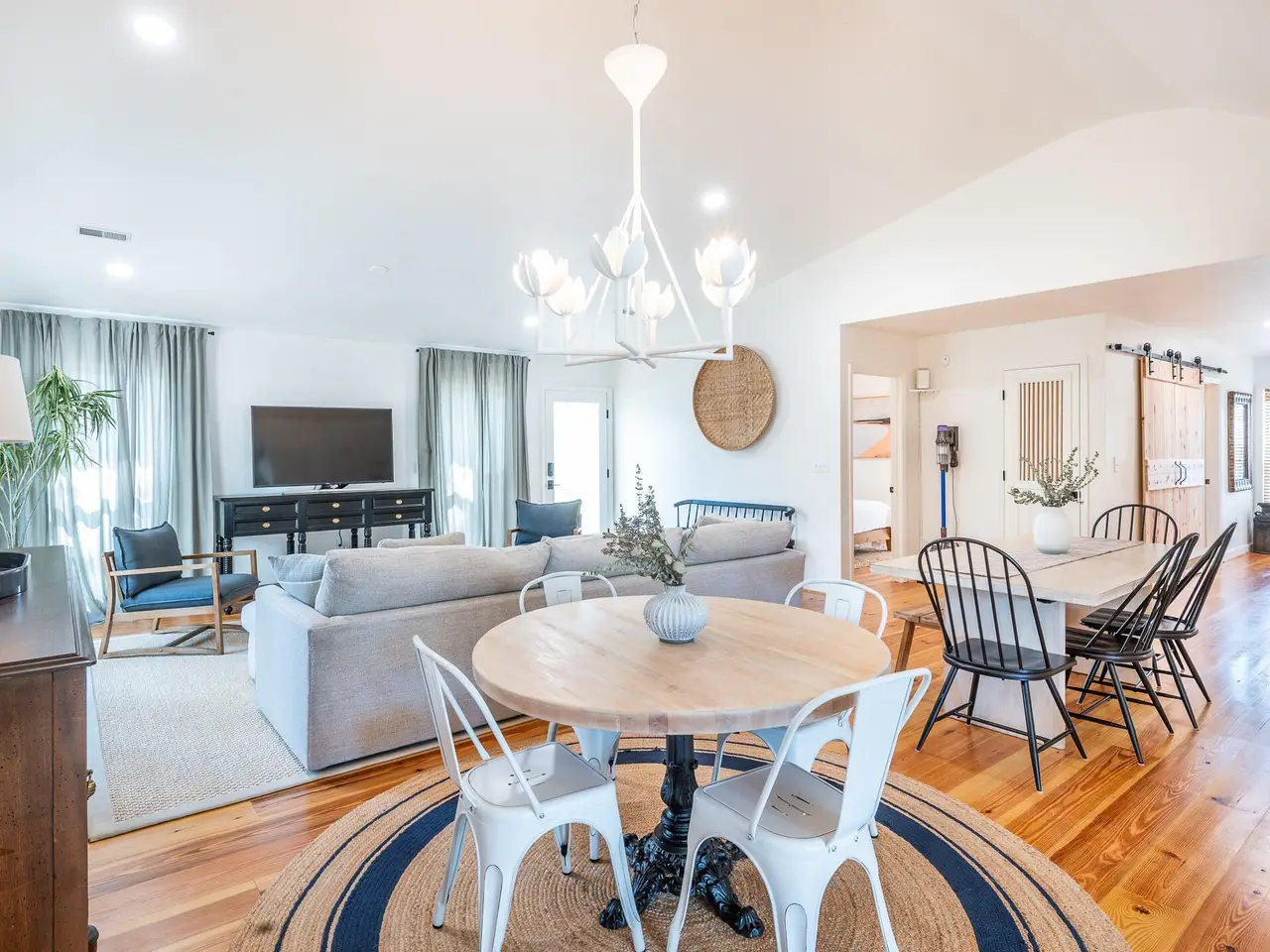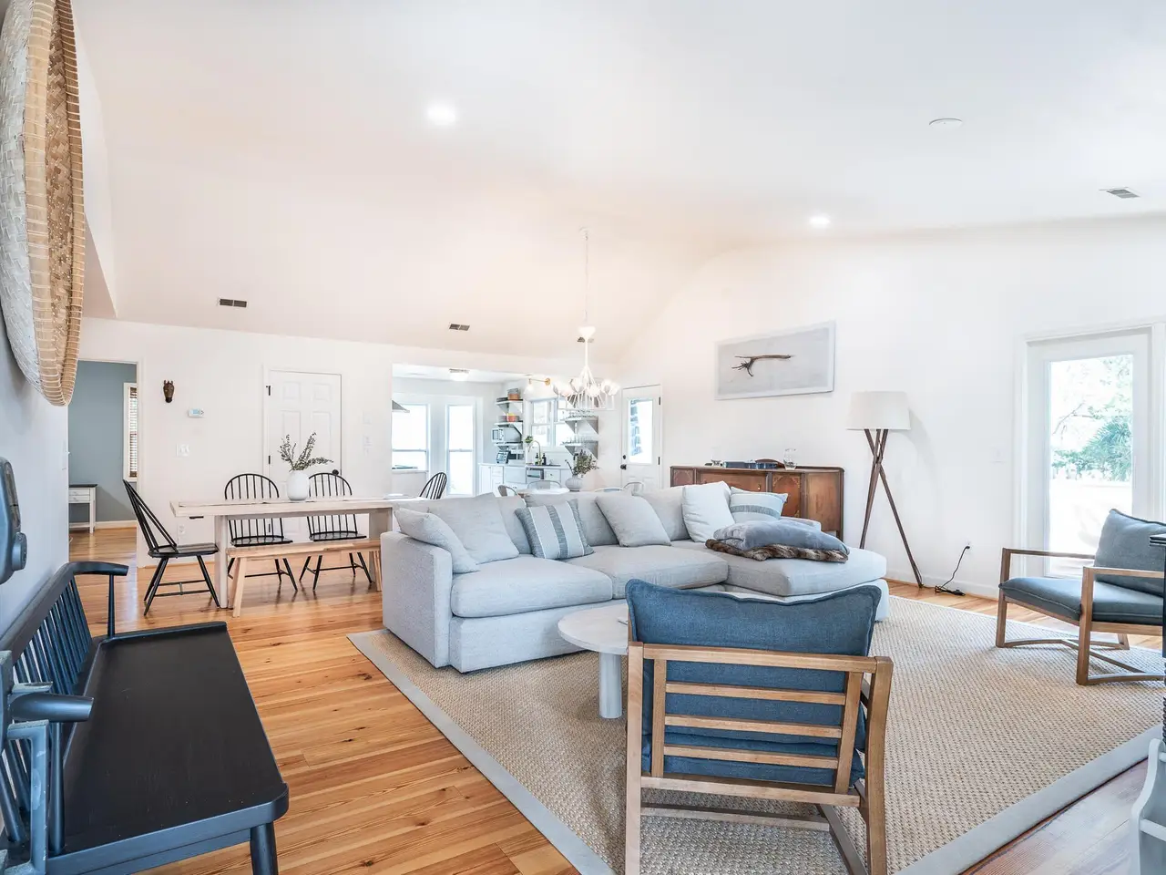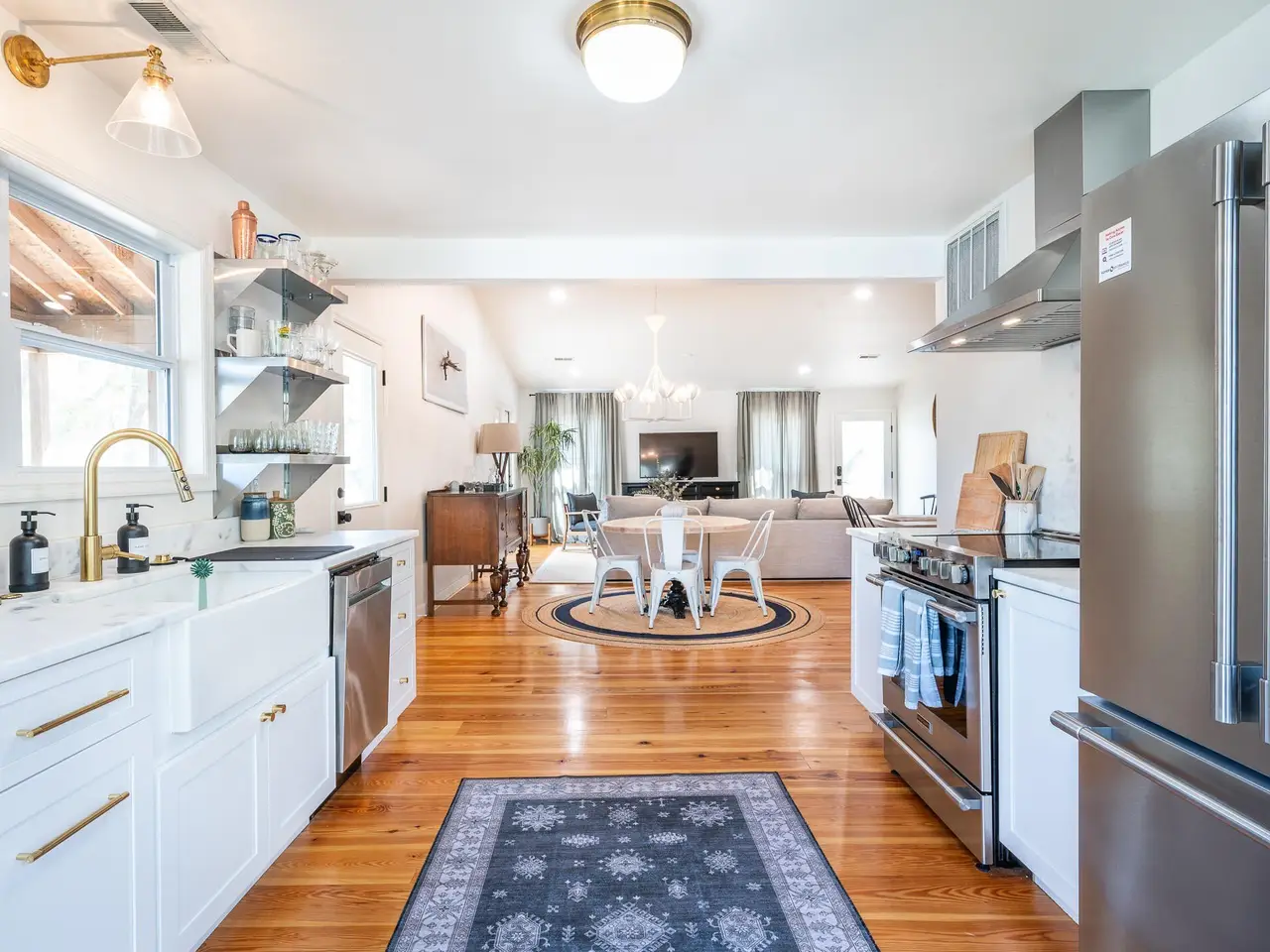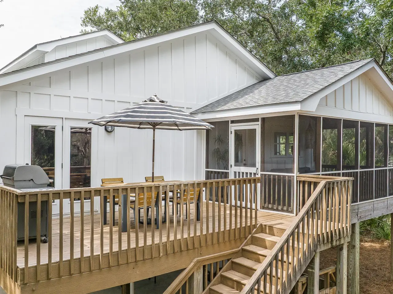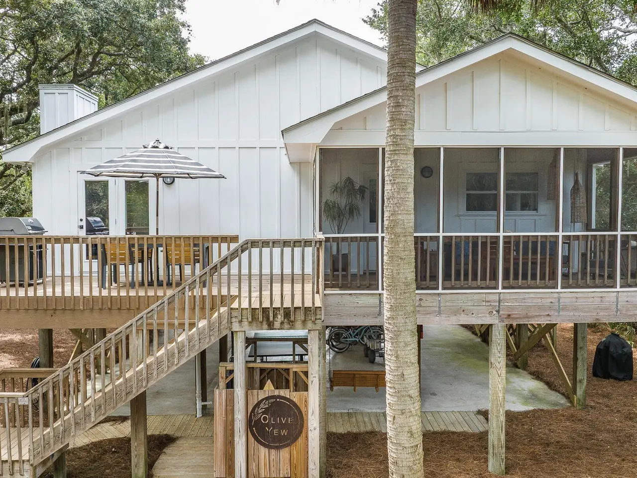 Completely renovated in 2023 with no expense spared, this retreat is truly turnkey, designed for comfort, style, and efficiency. Located in one of the island's most desirable areas and among the few properties in an X flood zone, this home is just a short walk to multiple beach accesses, Whaley's, summertime Bingo at the Lions Club, and the Marina. In its current configuration, the home comfortably sleeps 9, with 2 bedrooms and2 full baths on the main level plus an upstairs loft functioning as a third bedroom. The extensive renovation included replacing vinyl with Hardie board siding, spray foam insulation, all-new plumbing, site-finished heart pine flooring throughout, relocated kitchen (to create a larger living/entertainment space) with new stainless appliances, cabinets, natural honed counter tops, designer lighting, custom tiled bathrooms with seamless glass, and much more. Outdoor living is effortless with a full width rear porch with both open and screened areas, 2 front porches at each bedroom, and a spacious under-house retreat perfect for games and grilling. Sold furnished with high-end pieces and stocked linens, this property is truly turnkey. With just under $80k in gross rental income already booked YTD for 2025, along with its strong rental history, energy-efficient upgrades, and prime location, 3115 Myrtle St is ready to enjoy as a family retreat or immediate income-producing investment.