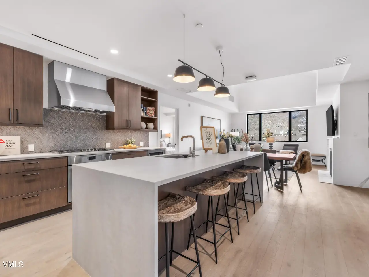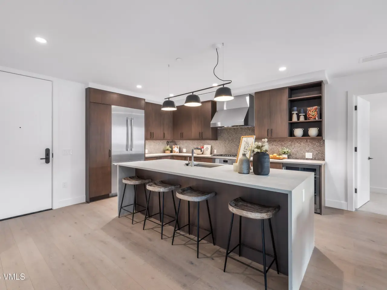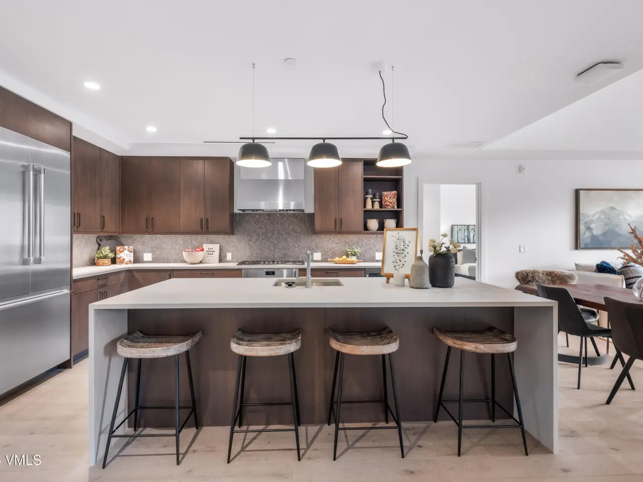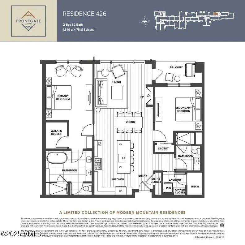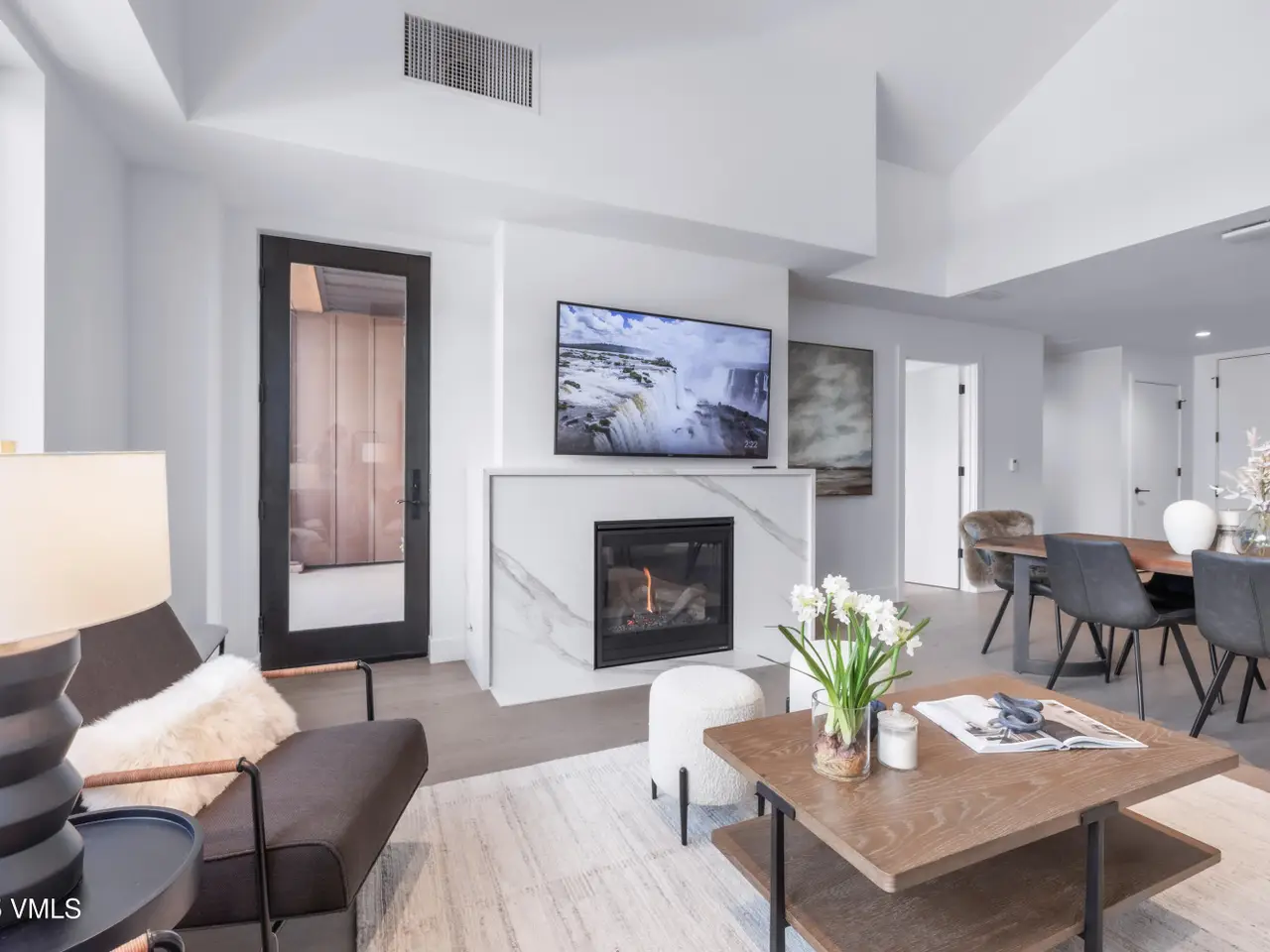 This desirable 2-bedroom, 2-bath residence boasts a coveted top-floor location with cathedral ceilings in the living room, abundant natural light from the north, and mountain views from its large balcony. The contemporary layout is designed for comfort, livability, and style, featuring a spacious open floor plan with 9-foot ceilings, Arrigoni hardwood floors, stainless steel kitchen appliances, a walk-in closet, owner's storage, and a cutting-edge finish package. Includes one unassigned parking space, plus access to numerous guest spaces. Frontgate | Avon is a new, astutely appointed, amenity-rich development featuring a masterfully designed four-story condominium building with 75 residences and 9 townhomes. Located adjacent to the entrance of Beaver Creek Resort, this limited collection of modern mountain properties is thoughtfully integrated into the natural environment. Envisioned to bring residents closer to nature, Frontgate | Avon offers The Springs Outdoor Oasis & Pioneer Plunge-a year-round outdoor bromine pool, water slide, and 15- and 35-person hot tubs-along with a Mountainside Courtyard with fire pits, outdoor grills, and gathering spaces. Additional amenities include community bikes and e-bikes, two sports simulators, a top-tier fitness center with an outdoor mountainside workout area, and a game room. On-site conveniences include dedicated shuttles to Beaver Creek and Vail, ski and boot lockers, underground heated parking, EV charging, a car wash, dog wash, property management services, and a grab-and-go market.