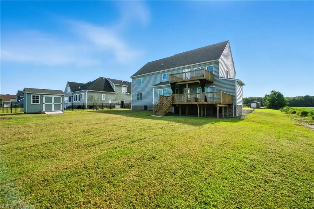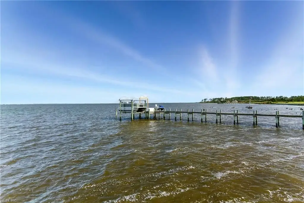 Here's your chance to own a beautiful home on the Currituck Sound. Built in 2021, the outside features a covered porch, deck, balcony from the primary suite, boat dock, 8000 lb. boat lift/remote, private pier, and 8 x 12 shed. The first floor of the home has a foyer, an office with french doors, a dining room, and open kitchen/family room. Kitchen has 42" cabinets, double wall ovens, and pantry. Also, on the first floor there's a laundry closet, full bath and bonus room. Upstairs, you'll find the primary bedroom with private bathroom/walk-in closet, and three bedrooms sharing the full bath in the hallway, a loft, laundry room with linen closet, and another bonus room. The home has a whole house water filtration system and a reverse osmosis system. There is also a generator switch and 30amp plug in the two-car garage. A large attic adds to the already ample storage. Crabbing, fishing, boating, and views all from your backyard make it a wonderful primary residence or vacation home.