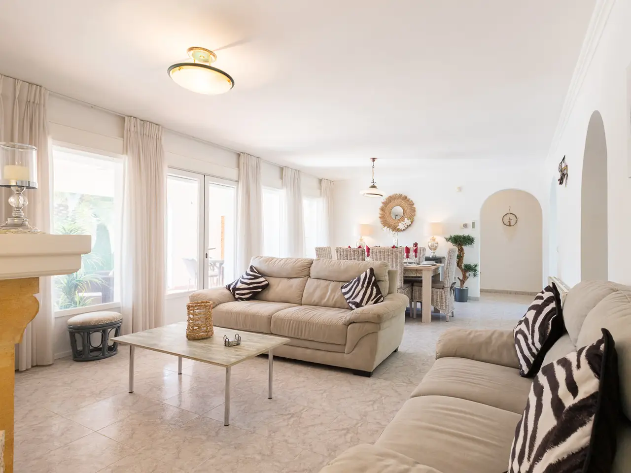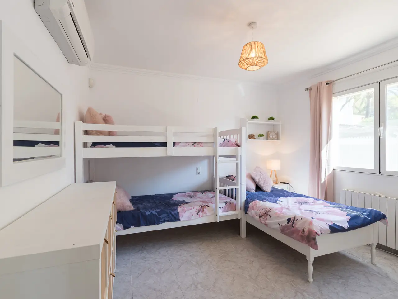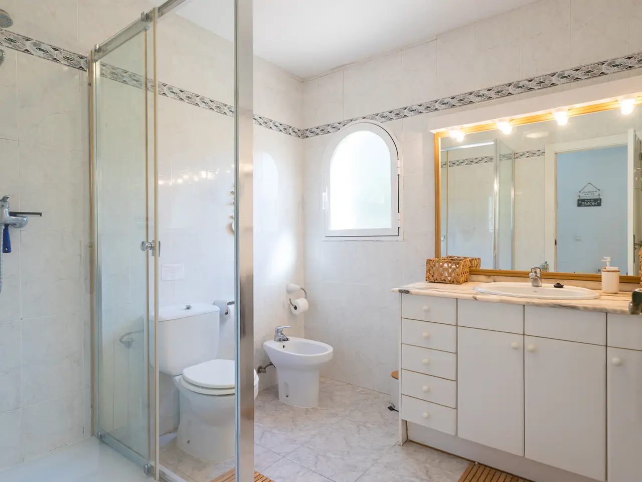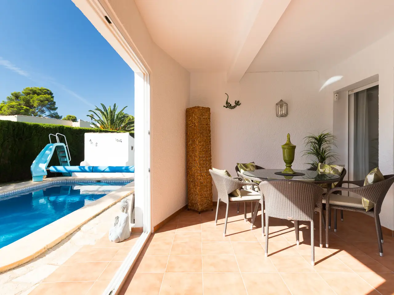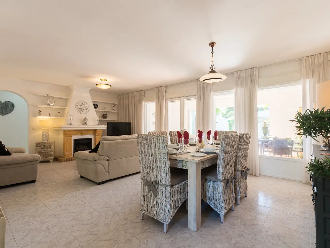 This charming villa, located in the prestigious Balcón al Mar area of Jávea, Alicante, presents itself as a unique opportunity. With a constructed area of 177.53 m² on a 1,206 m² plot, the property stands out for its location, flat and private plot, offering tranquility and partial sea views from the sun terrace. The house is distributed over one floor and has four double bedrooms, one with an en suite bathroom, and a total of two full bathrooms plus a guest toilet. The main living room features a fireplace, creating a cozy atmosphere, with access to the naya, which serves as a second living-dining room. The house is equipped with central heating and individual air conditioning in several rooms, ensuring year-round comfort. The fully equipped kitchen was renovated in 2018, and the house also has a laundry area. Outside, the villa offers a well-kept private garden with an automatic irrigation system and an 8 x 4 m heated pool, ideal for enjoying any season. The sun terrace allows you to take full advantage of the Mediterranean climate and the views. Parking is provided by a carport and a closed garage, providing protection for vehicles. The property is in good condition and features additional features such as a gazebo in the garden, a lawn ideal for enjoying outdoor living, a septic tank system, and easy access to nearby amenities such as restaurants and small supermarkets for basic shopping. This villa represents an excellent option both as a permanent residence or for enjoying holiday stays in one of the most exclusive areas of the Costa Blanca.
