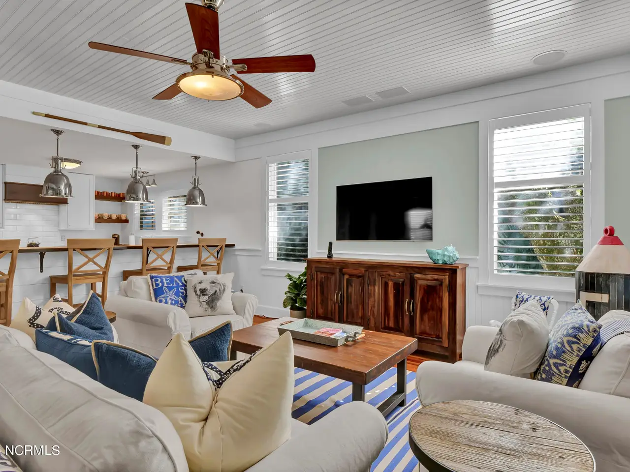 Welcome to 15 Surfboat Court, an exceptional home in the sought-after Keepers Landing neighborhood on Bald Head Island. Since 2015, this three bedroom, three full bath property has seen extensive upgrades, making it a true coastal retreat. The fully renovated kitchen, designed by Chris Lokey, includes a Thermador 6-burner stove, Bosch appliances with professional handles, a custom vent hood, and Restoration Hardware pendant lighting. A wine and beverage refrigerator, Sharp microwave drawer, and mini freezer in the pantry elevate convenience. The home's transformation continues with a brand-new roof installed in Spring 2024, new exterior siding, and fresh paint inside and out. All bathrooms have been fully updated with Kohler fixtures, designer lighting, and luxurious new towels. Thoughtful details include custom TV cabinets in each bedroom, a new king-size Pottery Barn bed, and surround sound in the living area with a Denon receiver for added entertainment. Enjoy peace of mind with a new tankless water heater, a recently replaced washer and dryer (2021), and a new upstairs HVAC system (2020). A 6-seater golf cart, new in 2020, offers convenient island transportation. Outside, a custom-built dining table invites you to enjoy meals in the coastal breeze. With a history of never being rented, this home has been carefully maintained for private enjoyment. Located in Keepers Landing, you're surrounded by Bald Head Island's tranquil beauty, with convenient access to all the island has to offer including the private saltwater marsh dock exclusive to Keepers Landing owners only. Experience the perfect blend of modern updates and island charm at 15 Surfboat Court. Shoals Club Membership available for separate purchase. Home conveys furnished (with noted exclusions) and with a 6 passenger golf cart.
