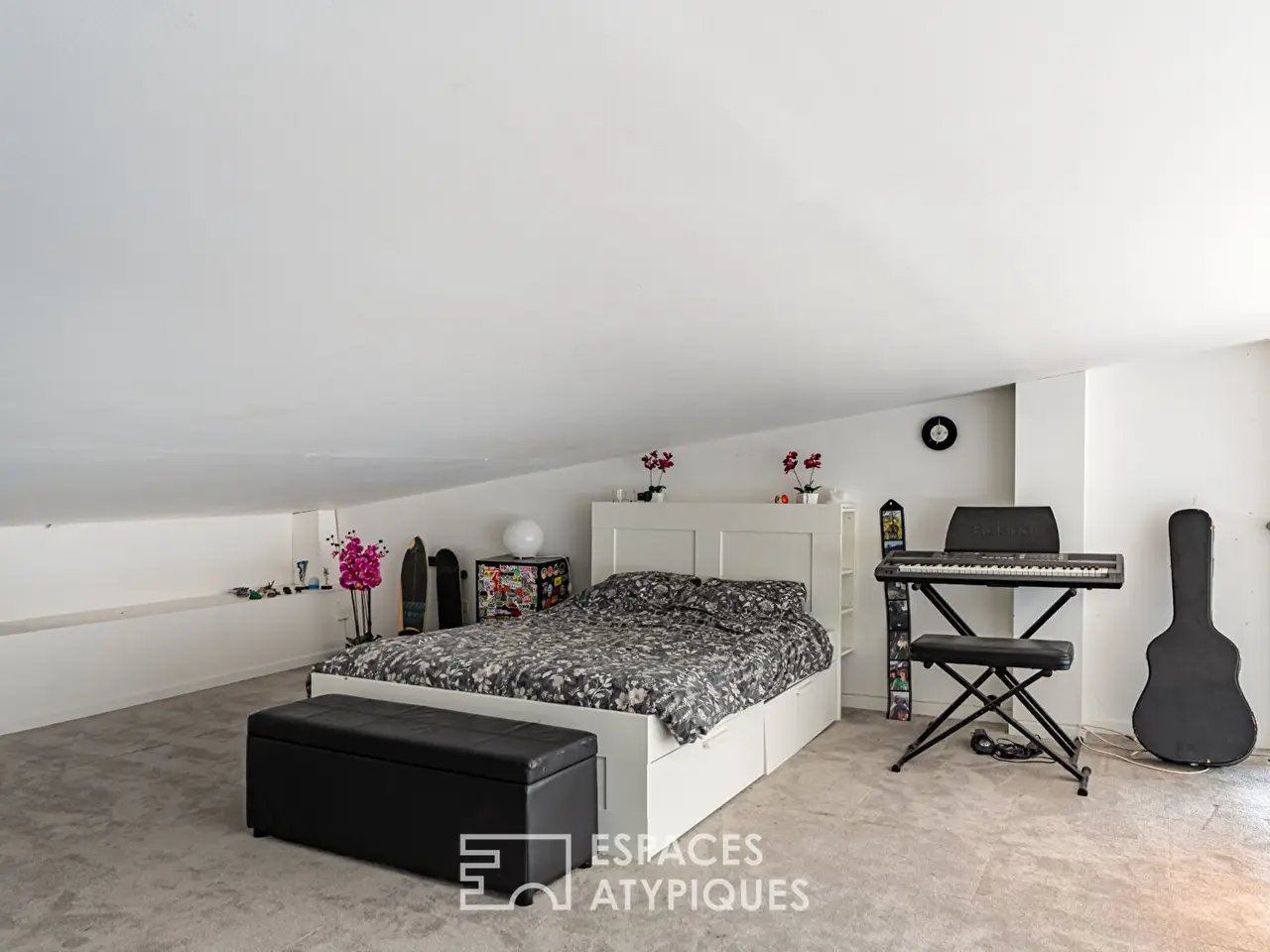 In Mesnil-le-Roi, this former workshop, built in 1920 and transformed into a loft by an architect in 2005, offers approximately 142 sqm of living space (215 sqm of floor space) on a 280 sqm plot. This rare property combines the original industrial character with a perfectly designed contemporary renovation, featuring solid oak parquet floors, exposed metal beams, and modern amenities.A unique opportunity to acquire a loft for sale in Yvelines, close to Maisons-Laffitte. The interior space is organized around a bright cathedral-style living room, opening onto a fitted kitchen. Two bedrooms (including a master suite), a bathroom, a shower room, a toilet, and a storage room complete the ground floor. A mezzanine, less than 1.80 m high, accommodates an additional bedroom and an office space. An independent 23 sqm studio with a shower room and WC is an additional asset, ideal for a teenager, a guest, or a professional activity. The property also includes a closed garage, an underground helical wine cellar, and several parking spaces. Outside, the landscaped paved courtyard provides an intimate and friendly atmosphere.The amenities enhance comfort: underfloor heating with a Viessmann boiler, a heat pump installed in 2022, home automation (roller shutters, automatic gate and garage door, alarm, videophone), fiber optics, and a Green'Up charging point for electric vehicles.The location is particularly attractive: a 2-minute walk from the bus stops leading to the RER A and the Maisons-Laffitte SNCF train station, the town center, its shops, schools, and services are easily accessible. A 2-minute walk from the bus stop to the Lycee International de St.Germain-en-Laye. Lycee International Ermitage is a 7-minute bus ride away. An atypical and modernized loft, designed to combine character, comfort and practicality in Mesnil-le-Roi. Available from 1/7/2026DPE: Energy Class E / Climate Class E. Average energy prices indexed for the years 2021, 2022, 2023 (subscriptions included): between 2440 euros and 3360 euros. Contact: Oliver 06 34 44 46 09 RSAC n°949 267 140 - VersaillesREF. 13642Additional information* 8 rooms* 4 bedrooms* 1 bathroom* 2 shower rooms* Outdoor space : 280 SQM* Property tax : 1 559 €Energy Performance CertificatePrimary energy consumptione : 254 kWh/m2.yearHigh performance housing*A*B*C*D*254kWh/m2.year52*kg CO2/m2.yearE*F*GExtremely poor housing performance* Of which greenhouse gas emissionse : 52 kg CO2/m2.yearLow CO2 emissions*A*B*C*D*52kg CO2/m2.yearE*F*GVery high CO2 emissionsEstimated average annual energy costs for standard use, indexed to specific years 2021, 2022, 2023 : between 2440 € and 3360 € Subscription IncludedAgency feesThe fees include VAT and are payable by the vendorMediatorMediation Franchise-Consommateurswww.mediation-franchise.com29 Boulevard de Courcelles 75008 ParisInformation on the risks to which this property is exposed is available on the Geohazards website : www.georisques.gouv.fr