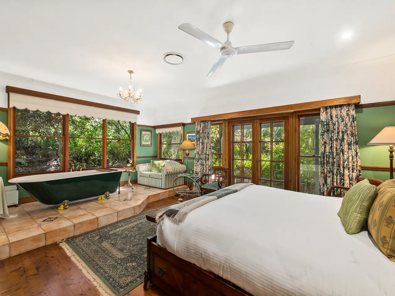 Built in 1919 by one of the region's pioneering dairy farmers, 'The Laurels' has long stood as a cherished chapter in Kangaroo Valley's pastoral story. Once part of a working dairy, the classic country homestead's original stone gateposts, post-and-rail fencing, and wraparound verandah still honour its rural roots. Set beneath towering camphor laurels planted over a century ago, this five-bedroom, five-ensuite residence now seamlessly blends timeless craftsmanship with modern comfort. Period features remain beautifully intact – from pressed metal ceilings and leadlight windows to timber-framed doors and original glasswork – while zoned ducted air conditioning, a 6kW solar system and full insulation ensure year-round comfort. A country-style timber kitchen with a gas cooktop connects to generous living spaces including a sitting room warmed by a combustion fireplace. Additional rooms include a library, a formal dining room, a breakfast room, and a family room that flows onto a large entertaining deck. Each bedroom opens onto the deep verandah that wraps around the home's romantic footprint, while a three-bay barn-style shed and five guest parking spaces provide practical amenities. Set on just under an acre of flourishing gardens and currently operating as a thriving B&B, 'The Laurels' invites new custodians to continue its storied legacy. • Built in 1919 by one of Kangaroo Valley's pioneering dairy farmers • Original stone gateposts, post-and-rail fencing, and deep wraparound verandah • Five bedrooms, each with its own ensuite, opening to the verandah • Pressed metal ceilings, leadlight windows and original timber doors • Country-style timber kitchen with gas cooktop adjoining a breakfast room • Sitting room with combustion fireplace, library, formal dining and family room • Zoned ducted AC, 6kW solar system and full insulation • Entertaining deck overlooking established, flourishing gardens • Three-bay barn-style shed and five additional guest parking spaces • Set on just under an acre and currently operating as a successful B&B
