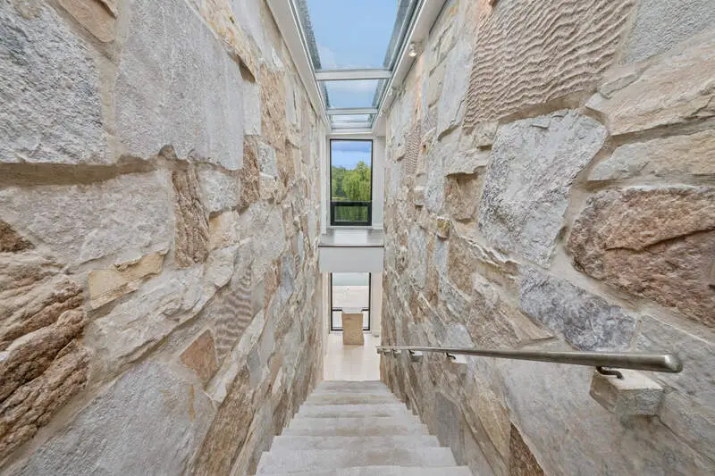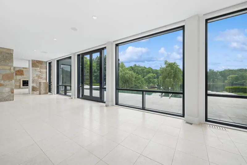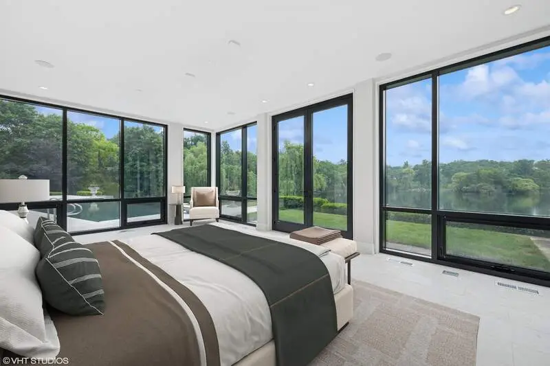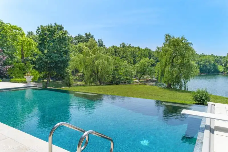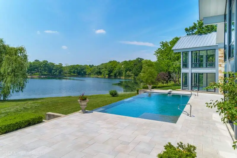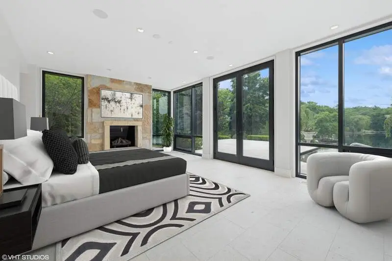 A true architectural triumph, this hillside ranch with walkout lower level is a visionary masterpiece, perfectly positioned on over 6.6 breathtaking lakefront acres in the heart of prestigious Barrington Hills. Seamlessly blending contemporary elegance with nature's beauty, this extraordinary estate has been completely reimagined through a meticulous, no-expense-spared renovation. Walls of glass and floor-to-ceiling windows flood the home with natural light and frame panoramic lake views at every turn, creating a harmonious indoor-outdoor living experience. A spectacular infinity-edge pool with waterfall feature appears to spill directly into the lake, offering the ultimate sanctuary for relaxation and reflection. An expansive Ipe hardwood deck is perfect for taking in the serene surroundings. With over 11,000 square feet of sophisticated living space, the main residence is a stunning composition of limestone walls, sleek finishes, dramatic architectural details and exceptional features including geothermal heating and cooling, rich hickory hardwood flooring, new custom windows and radiant heated floors. Soaring 20-ft ceilings in the great room anchors the home, showcasing captivating views and a striking stone fireplace. The chef's kitchen is a culinary showpiece with commercial-grade appliances, vaulted ceiling, stone fireplace, and a layout designed for both function and unforgettable entertaining. An elegant dining room with sweeping lake vistas elevates every gathering. The main home features six spacious bedrooms, 5.3 baths and five fireplaces, while an attached guest house provides additional privacy with a seventh bedroom, full bath, living room and kitchen, ideal for hosting extended family or guests in style. Equestrian enthusiasts will appreciate the custom barn with space for three stalls, wash station, tack room and hayloft. Gated entry leads to garage parking for five vehicles, plus additional space for all your toys and equipment. This is more than a home, it's a private, resort-style waterfront compound offering unmatched luxury, serenity, and a front-row seat to nature's splendor.