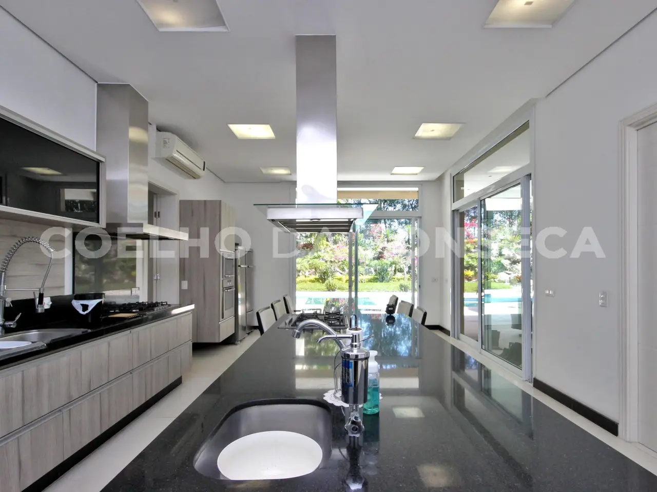 Magnificent house, living room with 7 meters of ceiling height. Spacious and bright rooms. Social area with Italian marble finishes and flooring, including the elevator. Air conditioning in all rooms. Privileged location, lush view, landscaping with waterfalls and a pond with carp. Leisure area with full gourmet space, dry and wet saunas, swimming pool, changing room, gym and a full games room, including an automated bowling alley. House in the TAMBORÉ I condominium, with 1880m² built area, 6 bedroom(s), 6 suite(s), 7 parking space(s), 9 bathroom(s), swimming pool, sauna, furnished, air conditioning, maid's room, balcony, elevator, solar heater.