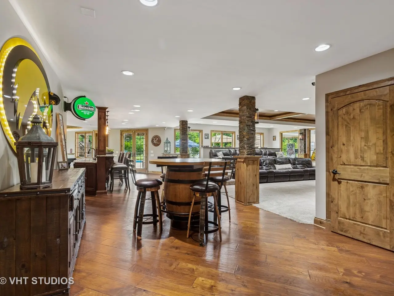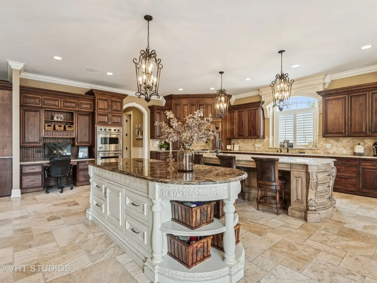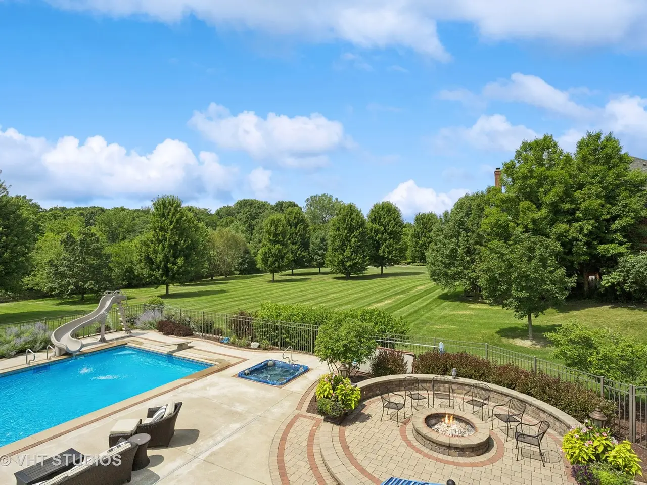 Welcome to 931 Lusted Lane - an extraordinary, custom-built estate in Batavia offering approx. 10,000 square feet of luxurious living and entertaining space on nearly an acre. This stunning seven bedroom, 6.2 bath home features a heated, oversized four-stall garage with built-in shelving, a Control 4 whole-house automation system, and a resort-style backyard complete with a 22 x 48-foot in-ground pool with slide, fountains, lighting, diving board, projection screen, hot tub, gas firepit, and built-in grill/bar. Inside, the chef's kitchen is a dream with Viking appliances, dual islands, granite countertops, natural travertine flooring, raised panel cabinetry with crown molding, a custom wet bar, and a butler's pantry. Elegance abounds throughout with five fireplaces (three gas, two wood-burning), a breathtaking two-story walnut staircase, walnut flooring and millwork, a formal dining room with deluxe wainscot and colonial embossed ceiling, and a family room with soaring ceilings, a gas fireplace with hand-crafted surround, and a built-in curio cabinet. The primary suite is a retreat with vaulted tray ceilings, a gas fireplace, built-in curved television, and a spa-like bath with a two-person shower with massage jets, a Jacuzzi tub, heated floors, dual vanities, stereo speakers, and a hidden TV behind the mirrors. The finished basement is a true showstopper with a custom granite bar, five-screen TV entertainment center with remote switching, a wine cellar, elevated TV room, cove ceiling over the pool table, wood-burning fireplace, surround sound theatre system, and storage room with shelving. Additional highlights include Anderson casement windows, Schlage locks, ADT security, mudroom, in-ground sprinkler system, cedar siding with Trex deck, and a new 40-year roof (2020). This exceptional home offers the ultimate in luxury, comfort, and entertaining-inside and out. Tanglewood Hills offers a spacious clubhouse with a commercial kitchen, large pool and a separate children's pool, in addition to basketball, pickleball, and tennis courts, playground, and scenic trails. Served by top-rated Batavia schools-with Grace McWayne elementary in the neighborhood. Minutes to Randall Road's dining and shopping, plus easy access to I-88 and Metra.