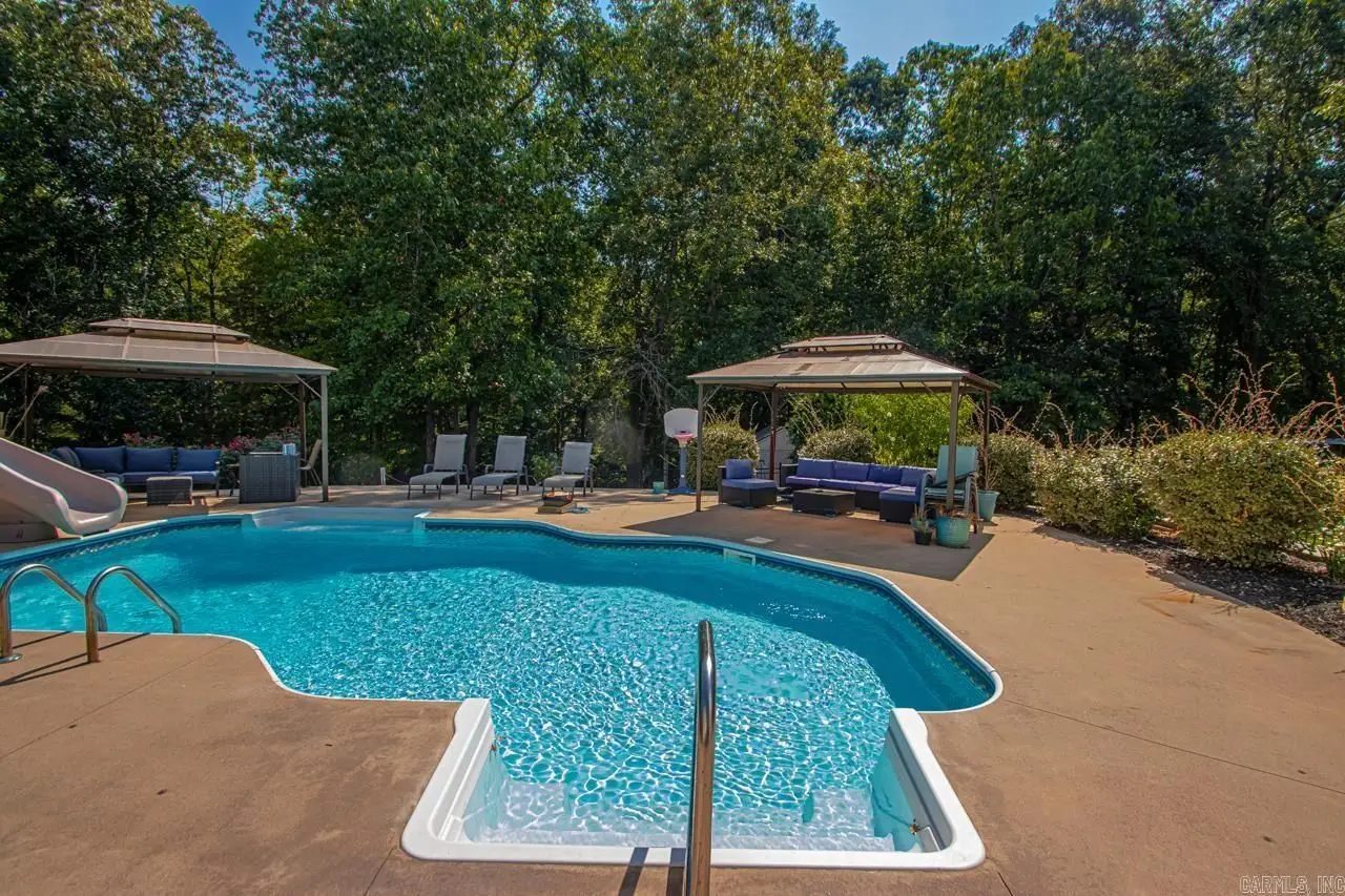 Located in Serenity Heights, this stunning custom home with 4 fireplaces on over 2 acres with extensive landscaping and upgrades galore. Beautiful kitchen with oversized pantry! Home offers tall ceilings, granite counter tops, stainless steel appliances, hardwood floors, oversized laundry room with a dog wash station, custom wood doors! Upstairs offers 3 bedrooms and 2 fully renovated bathrooms with a large bonus room! Additional detached building/two garage with living quarters upstairs, The possibilities are endless! Large covered patio that overlooks an inground pool in back. All new paint throughout. New roof 2020. Pool installation in 2015.
