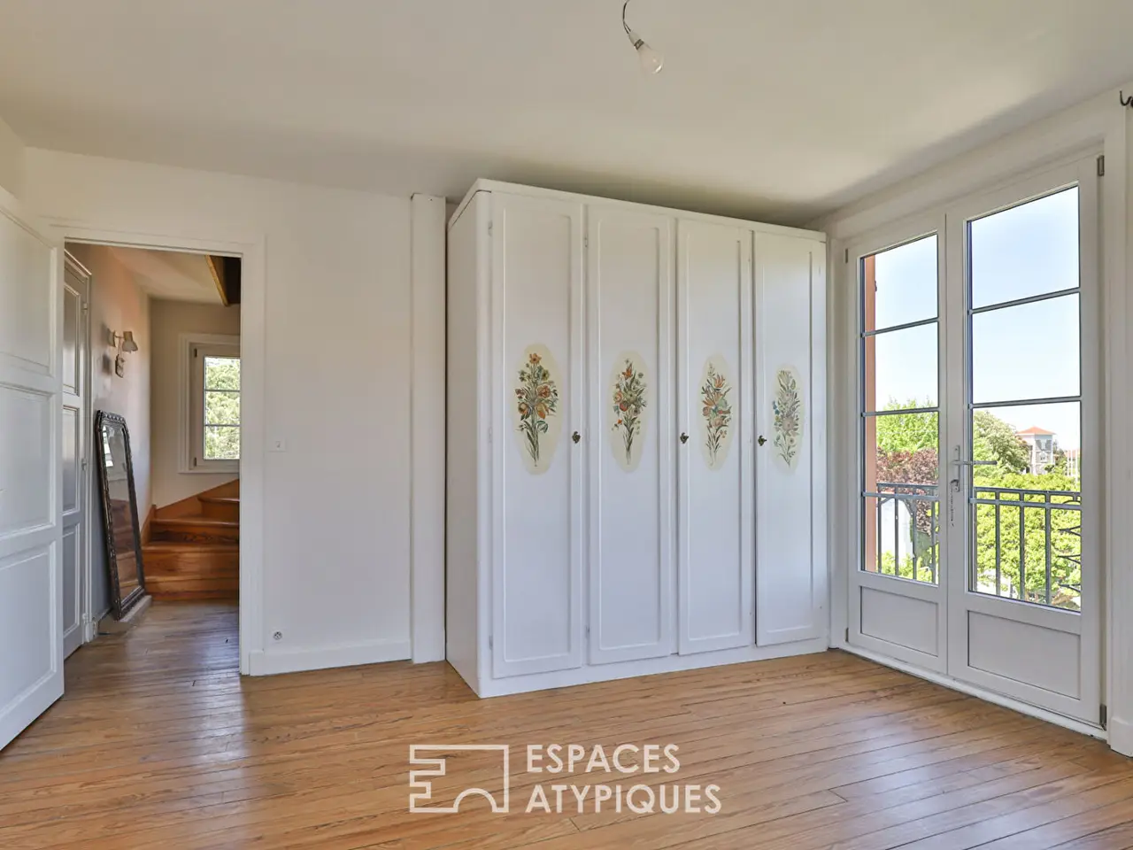 Located in the sought-after Arenes district of Bayonne, this 1950s villa with 150 sqm of living space is inspired by Italian architecture, with its elegant arcaded facade. Built on a 466 sqm plot, it benefits from a sought-after location, close to schools, shops, and transport, thus offering a pleasant living environment, ideal for a primary or secondary residence. Upon arrival, a vast hall opens onto an original elm staircase, enhanced by a beautiful high ceiling, and leads to a bright interior with preserved character. The 35 sqm living room, bathed in light, is centered around a wood-burning stove, creating a warm atmosphere. The wooden parquet flooring, present in the living areas and bedrooms, adds a touch of authenticity. A separate fitted kitchen, five bedrooms, a bathroom, and a shower room complete the generous volumes of this family home. The ground floor includes a garage, a laundry room, and a cellar. This level, as well as the attic, can be transformed according to your wishes. The exterior is a real asset, with a garden ideal for outdoor meals, moments of relaxation, and the pleasure of enjoying the beautiful days. Overall, the house offers great potential, giving free rein to your development and space optimization projects. Witness to an era imbued with elegance, you will be seduced by its noble materials, its airy volumes, and its rare location in Bayonne. A unique opportunity to acquire a property with timeless charm, in a sought-after neighborhood. ENERGY CLASS: D / CLIMATE CLASS: D Estimated annual energy costs (2021): between EUR2,674 and EUR3,618. Priscillia GARCIA 07 64 40 01 91 REF. 10711EAB Additional information * 8 rooms * 5 bedrooms * 1 bathroom * 1 bathroom * 1 floor in the building * Outdoor space : 466 SQM * Parking : 3 parking spaces * Property tax : 2 638 € Energy Performance Certificate Primary energy consumption d : 249 kWh/m2.year High performance housing