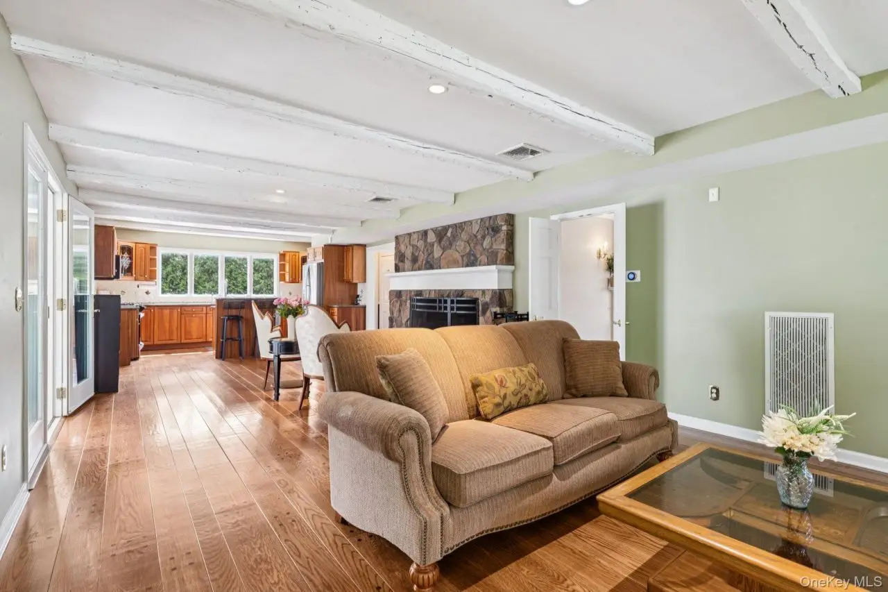 Welcome to 78 Oak Rd. which is located in the highly sought after South Bayport. This elevated beautifully maintained Colonial style home has over 3500 sq. ft and 3 levels of spacious living. Whether is be water views, sunrise or sunset views, you will discover the privacy and timeless living with this home which is nestled on a very spacious lot in a prime secluded location and will not disappoint. Entering through the front door you're immediately greeted by the welcoming foyer that sets the tone for the rest of the home. The rich gleaming wood floors with radiant in floor heat stretch out before you offering a perfect blend of warmth and sophistication. Bathed in natural light, the formal dining room features a large elegant bay window that adds charm and enhances the spacious feel of the space. The large inviting formal living room offers abundant natural light of its own through the numerous windows and includes a lovely gas fireplace, perfect for relaxing or entertaining. A stunning great room with exposed beams awaits you centering around the unforgettable, magnificent wood burning fireplace where lasting memories are made. The open concept layout includes the EIK with center island and granite countertops, and cozy den which offers the perfect blend of comfort and charm. Just off the kitchen you'll find a thoughtfully placed pantry and very stylish half bath, for added convenience. Flowing perfectly from the great room you will find a beautiful sun-filled 3 season room with vaulted ceilings, skylights and beautiful windows. The gas burning stove will take you into the cooler days as you over look your lush extensive private backyard. With trex decking and patio, this make for the perfect relaxing entertaining outdoor space. Ascending to the second floor you're welcomed by a spacious landing leading to your very private primary en-suite that offers a very generous walk-in closet and second floor laundry area. Sunlit and spacious this primary en-suite boasts expansive windows and thoughtfully designed storage. Spa like primary bath featuring a luxurious Jacuzzi tub, spacious walk in shower and serene lighting offers radiant in floor heat, perfect for those chilly mornings. There are two additional bedrooms on this floor with ample closet space, one with a huge walk-in closet or maybe small home office area. The generously sized second full bath provides both comfort and convenience for all. Heading up to the third floor where elevated living continues, enjoy the privacy and tranquility this sun-dre