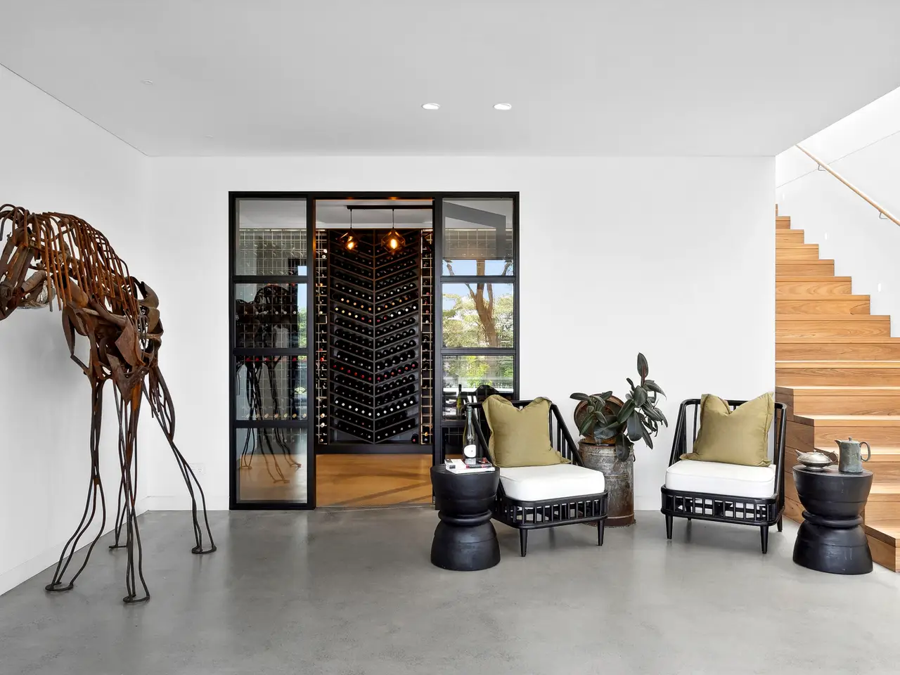 Spanning estate-like grounds on Bayview's premier street address, there are only two words for this architect designed residence: absolutely spectacular. Awarded top prize in 2022 from the Master Builders Association, the home merges striking forms with the artful play of light and dimension to create an environment of carefree sophistication and casual elegance. The design fully capitalises on the extraordinary landscape and ocean vistas, with three wings – one for children, another for parents and a third for guests, along with three distinct living zones. Extensive glazing creates a sun-trap from the north, while the luminous, free-flowing layout and skylit interiors add to the effortless livability of this phenomenal residence. The property covers a full level acre, blanketed with lush green lawns and dotted with soaring gum trees; the exquisite gardens are finished with reclaimed timber and sandstone, creating an extraordinarily private backdrop for the 12m saltwater pool and views that seem to stretch for miles on end. - Architect designed; awarded top prize by Master Builders Assoc. - Set on a level acre amid gardens, lush green lawns + towering gums - Premium quality design + build; three living zones across two levels - Stunning entertaining terrace on the main floor delivers ocean views - Fully self-contained guest suite at pool level + servery to the deck - Purpose-built home office plus separate study or fifth bedroom - Expansive alfresco deck, 12m resort-style pool, fabulous firepit area - Top-of-the-line kitchen, Siemens appliances, hidden butler's pantry - Master wing boasts superb views, luxe ensuite, walk-in robes + lounge - Elegant bedrooms; all bathrooms include heated floors + towel racks - Temp controlled wine cellar at pool level; holds up to 1,500 bottles - Ducted/zoned climate control, 13.2kW solar, main gas connection - Established garden and fruit trees edged with vintage sandstone borders - Four-car garage w/internal access; room for boats or campervans - Fully fenced property; electronically gated, 18,000ltr water tanks Disclaimer: Whilst all care has been taken to ensure accuracy in the preparation of the particulars herein, no warranty can be given, and interested parties must rely on their own enquiries.