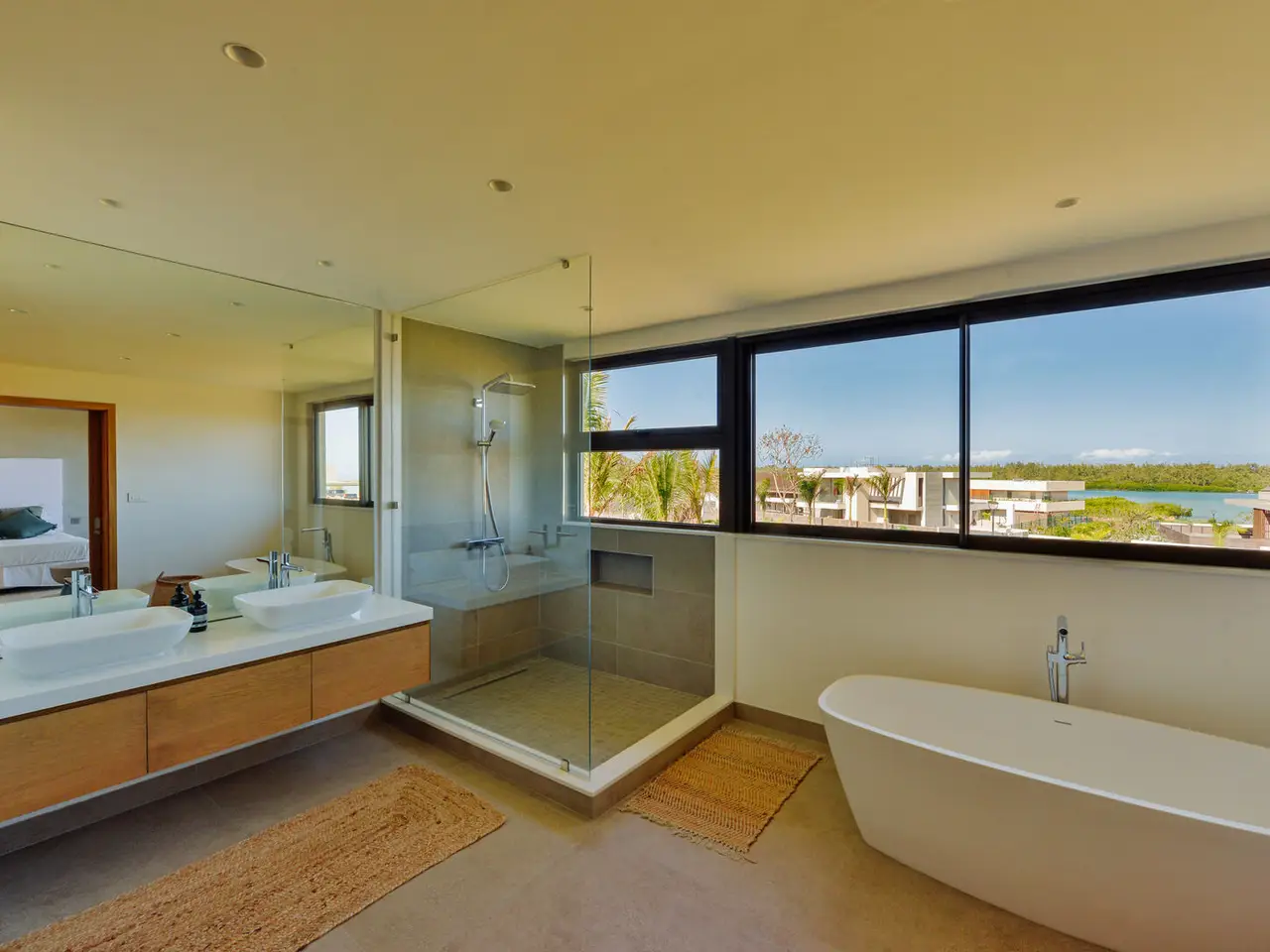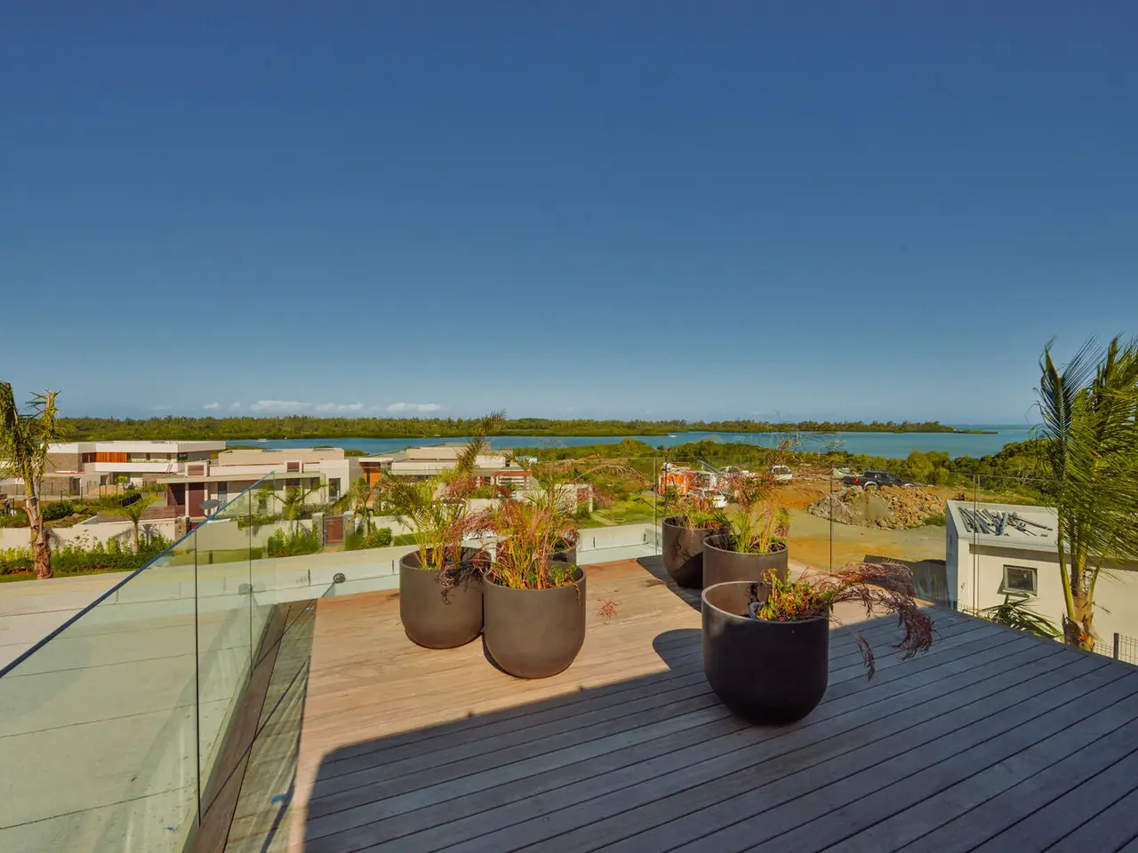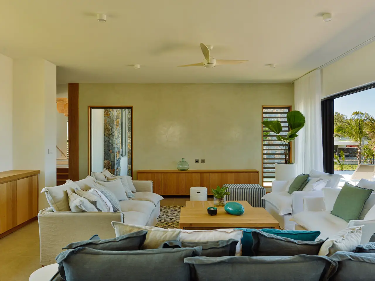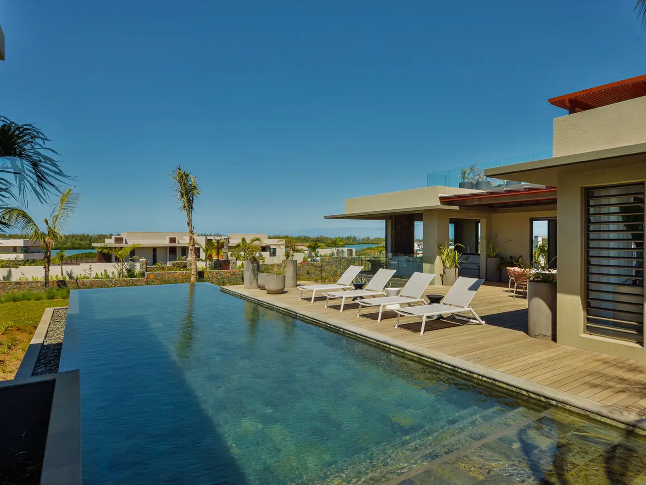 Experience luxury in the heart of Rive Est on the East Coast of Mauritius with this exquisite 4-bedroom villa. Spanning 492m² of sophisticated living space on a generous 2,252m² plot, the villa offers serene garden views and partial glimpses of the sea. Designed by the esteemed Mauritian architect JM Eynaud and crafted by Maison M, its simplistic yet tasteful design features elegant clean lines and an open layout where living spaces seamlessly extend onto the veranda and pool area. Nestled within a prestigious golf estate, the property provides easy ocean access, breathtaking mountain views, and a tranquil ambiance, complemented by exceptional service. Residents can enjoy exclusive amenities, including tennis courts, cafes, restaurants, and special excursions to Île aux Cerfs. Additionally, purchasers benefit from permanent Mauritian residency, enhancing the appeal of this luxurious retreat.