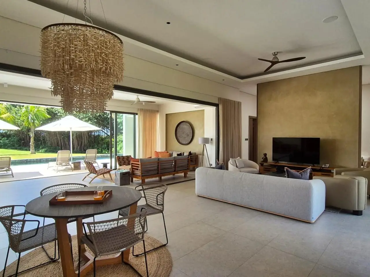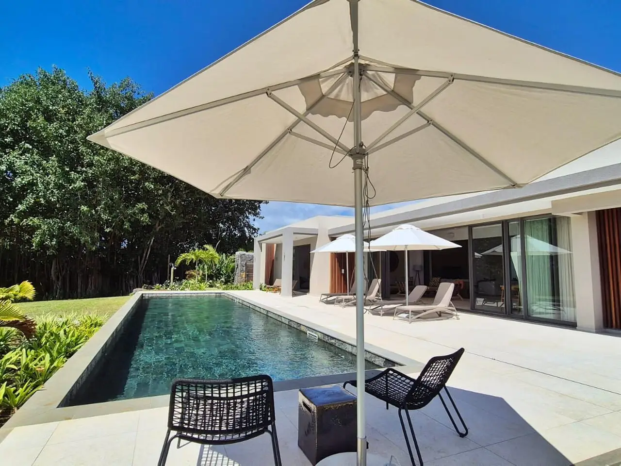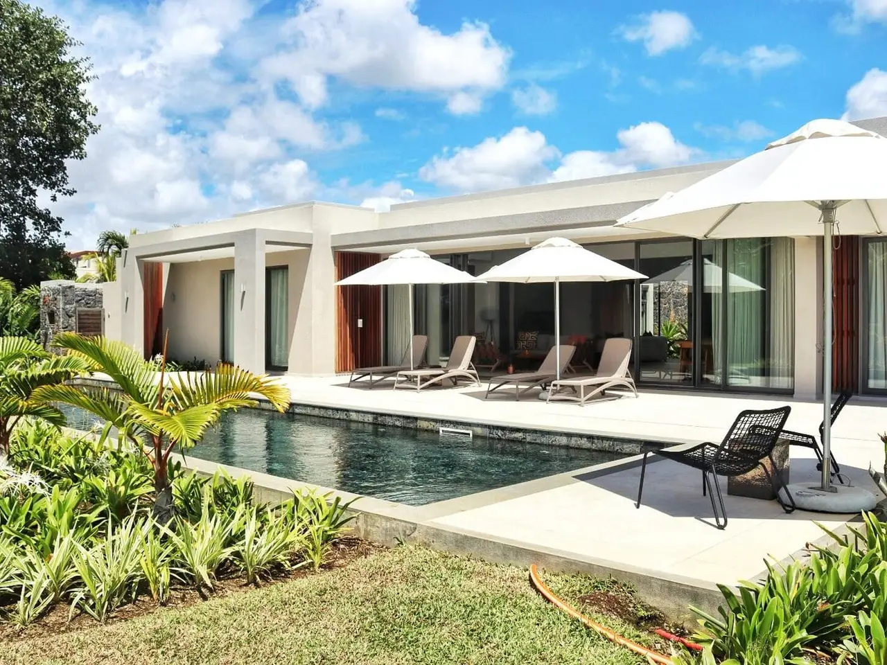 Located within the exclusive Anahita estate on Mauritius’s stunning east coast, this elegantly designed villa offers refined island living in a truly serene setting. Overlooking the lush fairways of the championship golf course and bordered by majestic banyan trees, the property enjoys both privacy and breathtaking natural beauty. The villa features four spacious bedrooms and five beautifully appointed bathrooms, all designed with a focus on comfort and understated luxury. Natural earthy tones and high-quality finishes create a warm, sophisticated atmosphere throughout. The open-plan living and dining areas flow effortlessly into a fully equipped modern kitchen, leading out to an expansive terrace and a private swimming pool – perfect for entertaining or simply unwinding in the tropical surroundings. As an owner, you’ll benefit from permanent residency in Mauritius and enjoy privileged access to Anahita’s five-star facilities and services, including gourmet restaurants, a luxurious spa, fitness centre, beach club, and the world-renowned Ernie Els-designed golf course. This villa is more than just a home – it’s a lifestyle, offering comfort, elegance, and the best of resort-style living in one of Mauritius’s most coveted addresses.