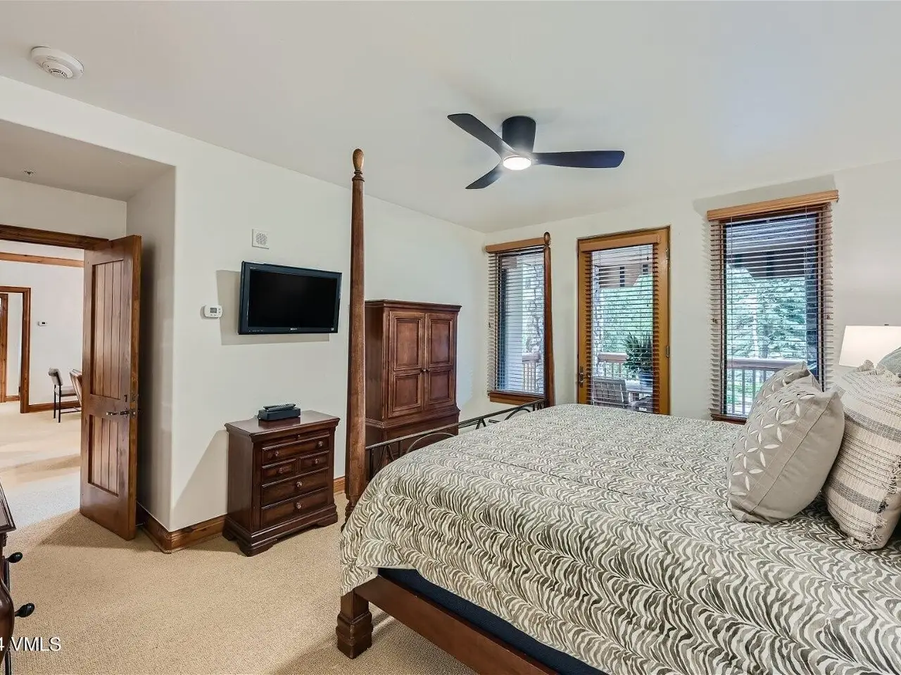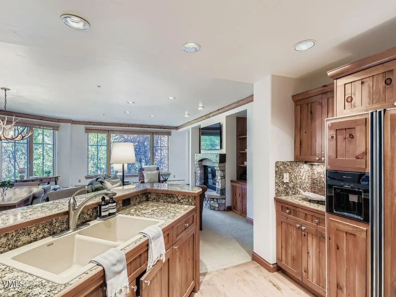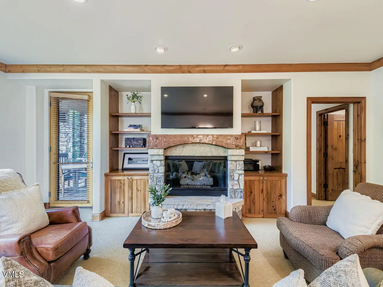 Ideal ski & golf condo. Elkhorn Lodge #202 offers a prime ski-in/ski-out location in the gated Beaver Creek Resort, perfectly positioned next to the Elkhorn chairlift for effortless access to the slopes and adjacent to the Beaver Creek Golf Club. This spacious 2-bedroom residence, each with ensuite bathrooms, also includes a third bathroom with a shower to accommodate overflow guests. After a day on the slopes, unwind by the elegant fireplace or enjoy après-ski moments on the oversized deck, surrounded by serene, snow-dusted aspen trees. Large windows flood the living spaces with natural light and offer picturesque winter views. Elkhorn Lodge, a boutique building of only 52 residences, is meticulously maintained and offers luxury amenities, including a ski locker room, fitness center, outdoor hot tubs, underground heated parking, and owner storage. A complimentary resort shuttle ensures seamless access throughout Beaver Creek and nearby Bachelor Gulch. Beaver Creek Village is home to fine dining, shops, art galleries, bars, and attractions such as the ice rink, ski school, and Vilar Performing Arts Center. Whether you prefer beginner slopes or advanced terrain, the resort offers something for every skier. The Beaver Creek Golf Clubhouse is next door, providing another wonderful amenity just steps away. This property is also a sought-after rental opportunity for owners looking to offset carrying costs with short-term rentals. Offered furnished and turn-key.
