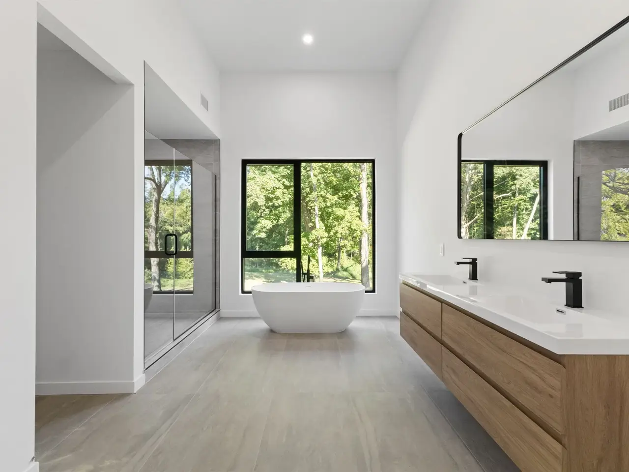 Welcome to 28 McLain, Bedford Corners NY - a modern villa set on over two acres of private, level land at the end of a serene cul de sac. Prestigious Bedford Corners community presents an exceptional lifestyle with access to renowned public and private schools, curated boutique shopping and a vibrant culinary scene unlike any other. Designed for both grand entertaining and intimate gatherings, this modern villa offers a seamless flow of open living spaces defined by soaring ceilings, walls of glass, and an effortless indoor-outdoor connection. Sun-drenched interiors create a vibrant yet sophisticated ambiance, while multiple lounge areas, a gourmet chef's kitchen and expansive terraces set the stage for unforgettable entertaining. Exquisite bedroom suites showcase soaring floor-to-ceiling windows, indulgent spa-like private baths and spacious walk in closets designed for the most discerning lifestyle. Every detail is curated to balance elegance with comfort, making the home equally suited for lively celebrations and serene everyday living. Creating an air tight thermal envelop around a home keeps the home high-performing and energy efficient. By paying close attention to ventilation and the flows of air, heat and moisture, this construction will keep the home free from mold, toxins and allergens. Conveniently just minutes from downtown Mt Kisco and Bedford Village, with its charming shops and restaurants, and offering an easy commute to New York City.
