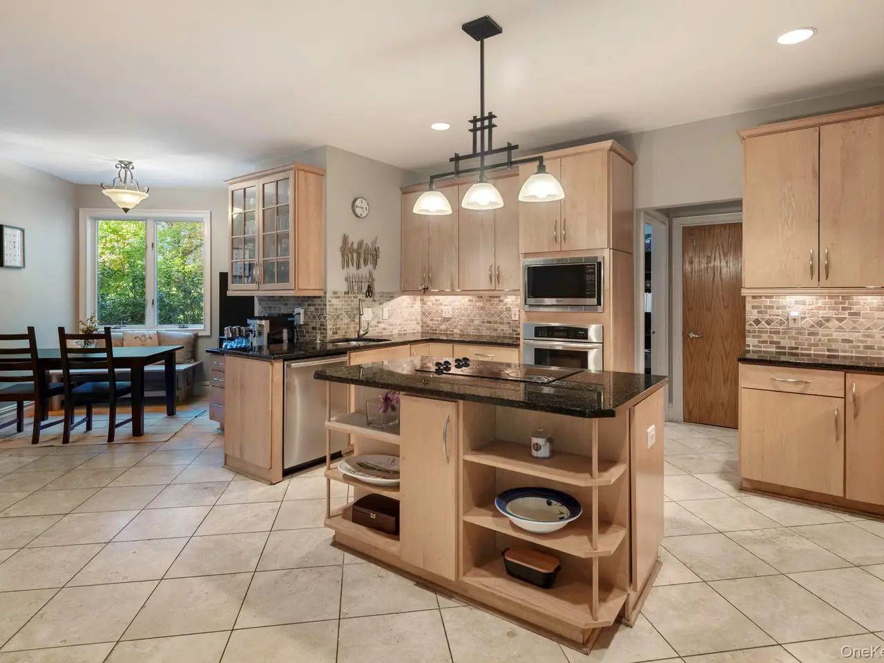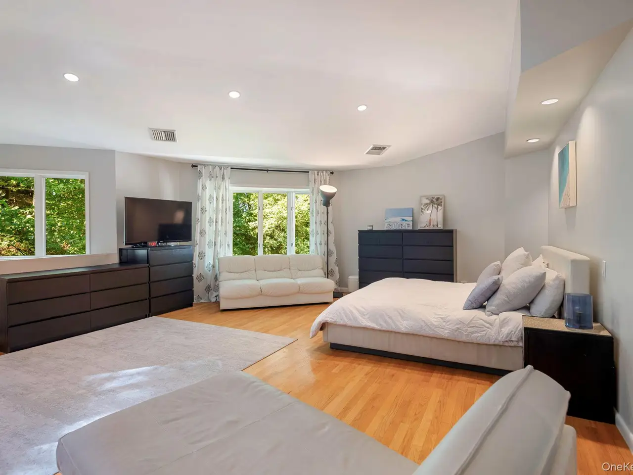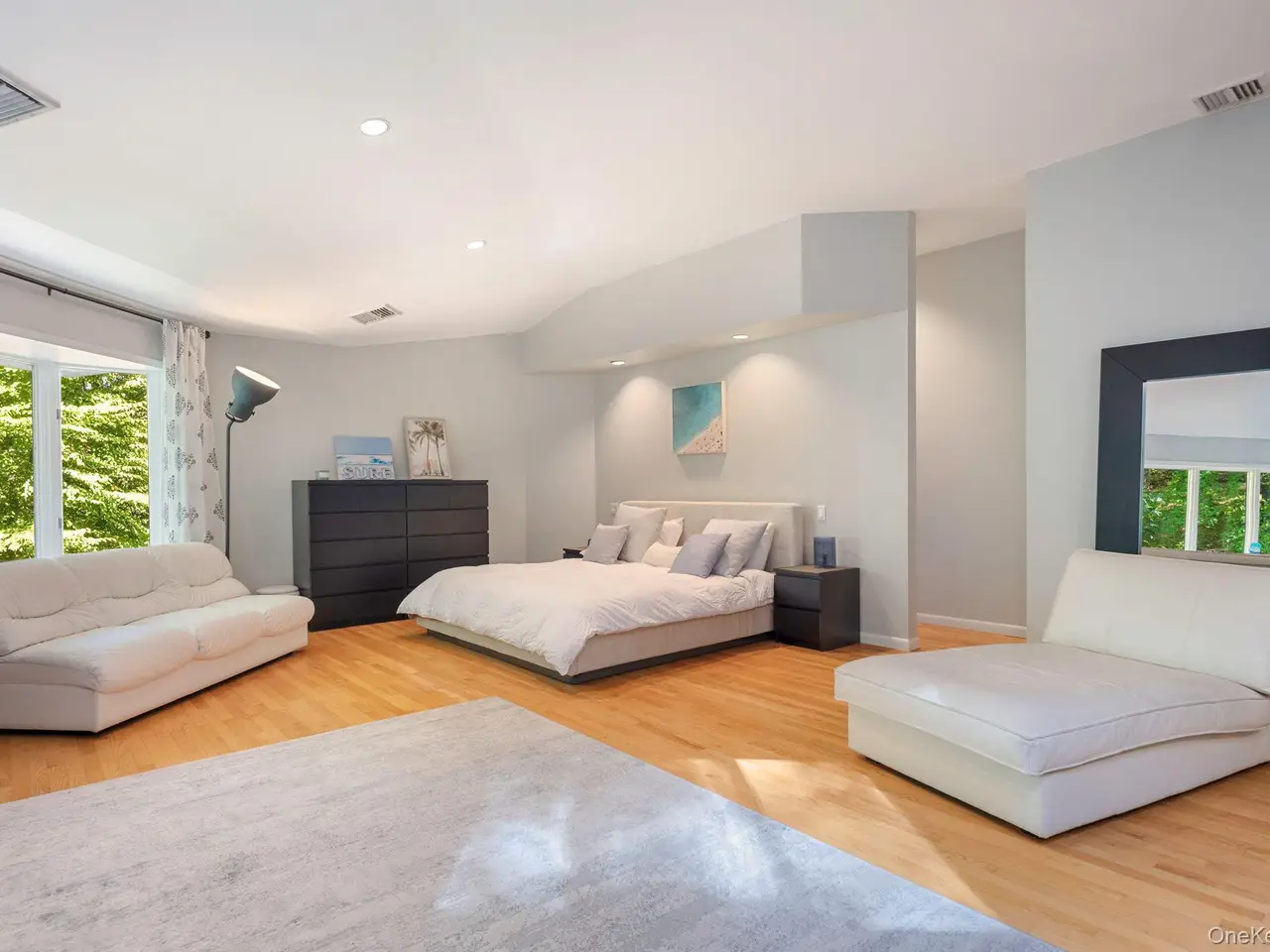 Move right into this bright and spacious 4 bedroom / 5.1 bath contemporary home in the award winning Byram Hills school district, privately set on 3.41 acres in a quiet cul-de-sac. Features include a dramatic 20'+ foyer, flexible layout with main-level guest suite (ideal for home office, au pair, or multigenerational living), eat-in kitchen with pantry, dining room, family and living rooms with fireplaces, and a 3-season sunroom with deck access. Upstairs offers a large primary suite with private deck, walk-in closet, and spa bath, plus one en-suite bedroom and two additional bedrooms with shared hall bath. The finished walk-out lower level includes a spacious rec room with movie screen, gym, office, full bath, and garage access. Special features include two decks, cathedral ceilings, whole-house generator, skylights, 3-car garage, fenced yard, built-ins, and abundant storage. Easy 38-minute Metro North express commute from North White Plains with ample parking. Byram Hills schools in Armonk offer busing, before/after care, activity bus, and excellent town recreation including Armonk town pool. Convenient to Armonk, Bedford Village & Greenwich. Taxes include trash pickup at curb but can pay extra for garage door pick up.