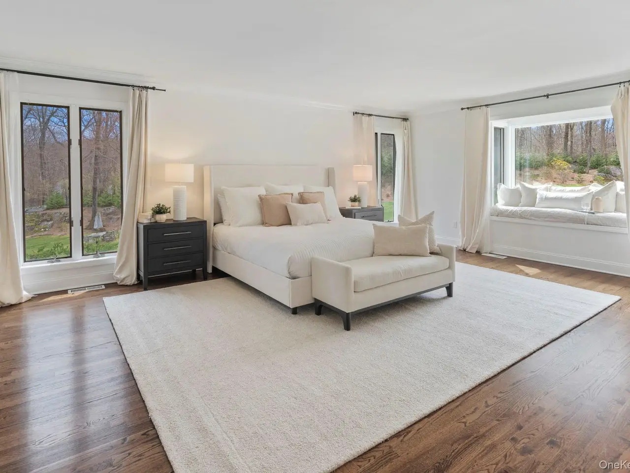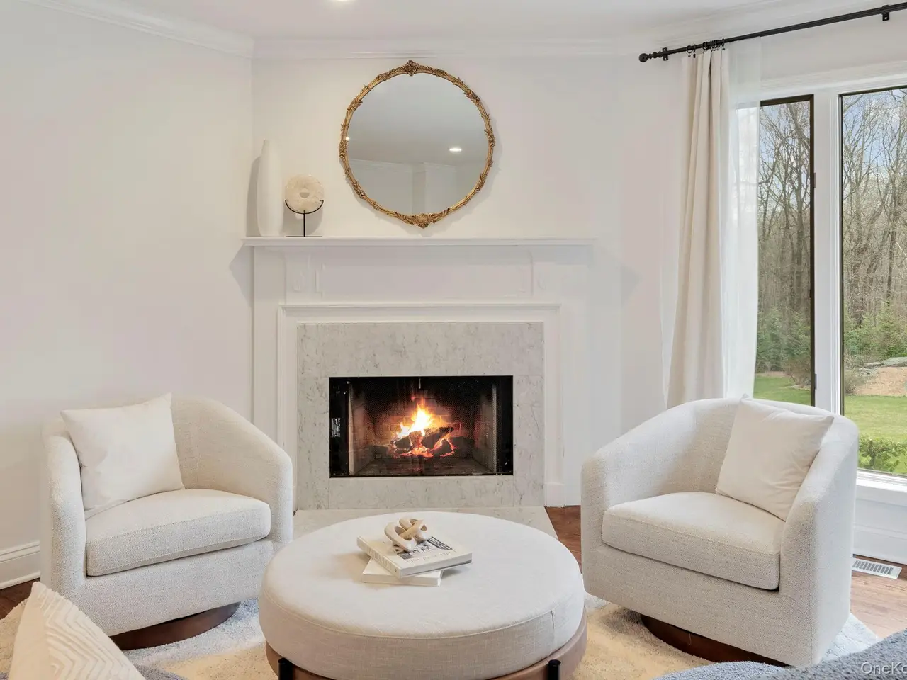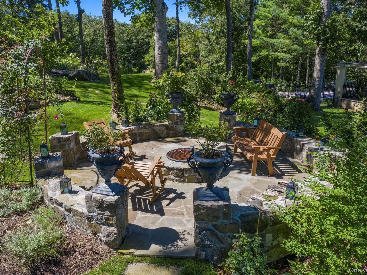 An incredible retreat for living, working and relaxing in complete privacy. Lives like a 5 bedroom home. Transitional style mini estate set on 4.7 serene acres with a pool and magnificent botanical gardens. Flexible floor plan great for hosting guests. Highlights include a new high-end chef's kitchen, marble rotunda entry, dramatic living room, limestone and marble baths, French doors, stone terraces, and Belgian block courtyard. Luxurious first level suite w/library, fireplace, spa bath and dressing room closet. The second level bedroom suite has a sitting room and bath. All bedrooms and bonus room are en-suite and open to a hall lounge. There are two laundry areas. Lower level provides abundant space for enjoying the game room with fireplace, kitchenette, fitness center, bath and sauna. Beautiful terrace patios surround a 20'x40' pool and overlook the private yard and spectacular gardens. Close to village, schools, trains, shops, restaurants, nature preserves and major highways.
