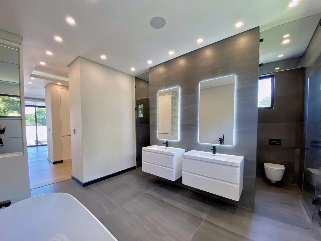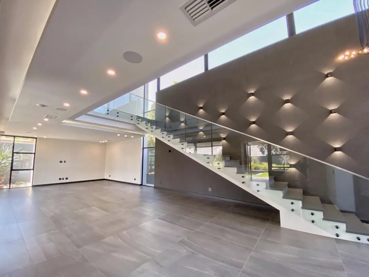 Coupled with the unsurpassed flow of light & space, this expansive contemporary family residence has accommodation to welcome the growing family! Boasting refined, modern finishes throughout with generous proportions, this residence is ideally located within a sought-after 24 hour secure boom in a prime position of Bedfordview. Featuring soaring ceilings in finely honed receptions leading onto a bright covered patio, sparkling pool and landscaped garden, this home is further enhanced by the upmarket kitchen fitted with Quartz tops, high-gloss finishes, separate scullery and walk-in freezer! With further features to entice including home automation system, piped sound, centralised air-conditioning and all rooms en suite this home is one for the sophisticated eye!