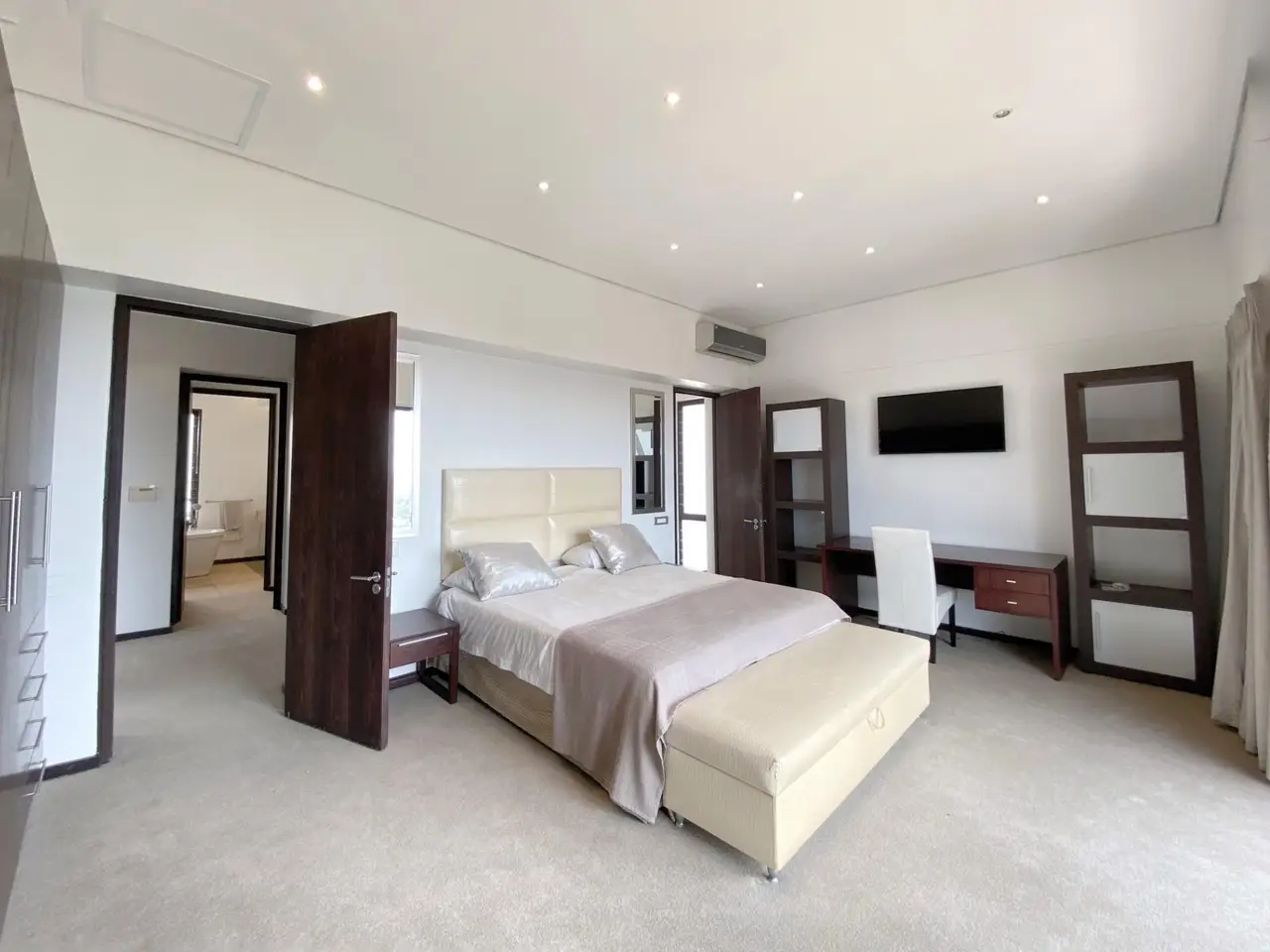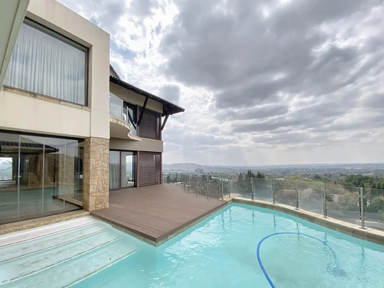 NO TRANSFER DUTY! This multi-level residence offers sumptuous receptions with windows and balconies presenting unparalleled views of the city! This distinct family residence epitomises graceful living with warm, natural finishes such as Sandstone surfaces, wooden accents and the surrounding landscape forming part of this architectural delight. Designed for the elite family seeking the address, this residence welcomes grand living and entertaining with a private suite ideal for a study as it's located on it's own level, making it ideal to work-from-home. The central, internal elevator allows one to access the multiple floor levels effortlessly with the back up generator providing piece-of-mind. The guest suite/4th bedroom offers it's own private access with a full en suite bathroom and sliding doors opening up onto the tranquil city/tree-top views. The other 3 bedrooms are located on the top floor - all en suite - with larger-than normal proportions and upmarket finishes including piped sound, gas fireplace, projector entertainment system in the main bedroom, air-conditioning and more!The reception areas are located on the middle level with a solid dark wood kitchen complimented with some built-in Miele appliances, such as a steamer, coffee machine and gas/electric stove. The separate scullery is private and offers space for other appliances. The dining area is open plan onto the kitchen with a separate balcony and leads onto the separate lounge with built-in entertainment features. The enclosed patio area with decked, sparkling pool offers spectacular city views. With excellent security, a 1 bedroom self-contained flatlet, automated garaging for 4 cars & moreGǪthis home will welcome family and friends from dusk GÇÿtil dawn!