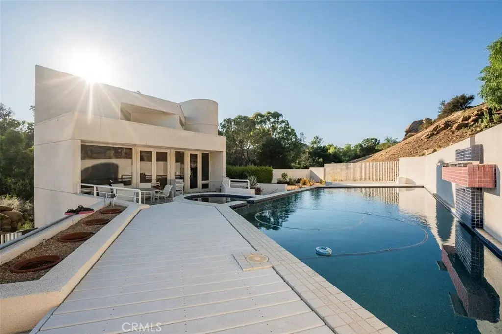 Renowned architect Louis Kahn once said, “Architecture is the thoughtful making of space.” Nowhere is that sentiment more perfectly realized than at 120 Stagecoach—a striking architectural residence nestled on over an acre of secluded, natural beauty in a prestigious guard-gated community Thoughtfully designed and masterfully executed, this 4-bedroom, 3-bathroom home offers 2,816 sq ft of living space on a 55,321 sq ft lot, showcasing extraordinary architectural detailing throughout. From the moment you arrive via a long private drive, you're enveloped in a tranquil atmosphere where the home harmonizes seamlessly with its natural surroundings. Inside, the dramatic great room impresses with soaring ceilings, a centerpiece fireplace, and walls of glass that frame serene outdoor views—blurring the lines between indoors and out. The chef’s kitchen is both stylish and efficient, featuring ample storage and a modern layout that opens to a semi-formal dining area overlooking the home’s unique pool and cascading water features. The primary suite occupies its own private upper level, complete with a separate study, walk-in closet, and a spacious viewing deck—ideal for morning coffee or sunset reflection. The three secondary bedrooms are located in a separate wing, each thoughtfully designed with built-ins and functional elegance. Outside, the expansive grounds are a natural sanctuary with incredible boulder formations, multiple viewing decks, water features, and a one-of-a-kind pool and spa—creating a resort-like ambiance perfect for relaxation or entertaining. A 3-car garage completes this exceptional offering. The Bell Canyon community amenities compliment this amazing home which include Twenty four hour guard gated entry, Residents-only park, Miles of maintained trails, A community Equestrian center, Direct trail access to the Santa Monica Nature preserve, Community tennis courts, Residents gym, Organized adult and children’s events throughout the year, Award winning Las Virgenes school district with school bus service to the community, and just minutes to freeways, beaches and some of LA’s best shopping and dining locations.