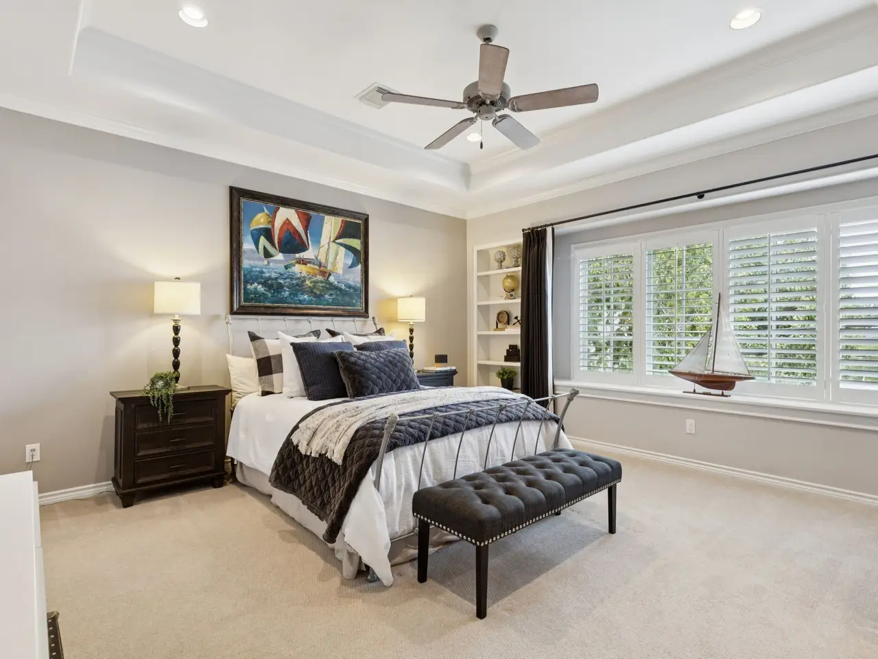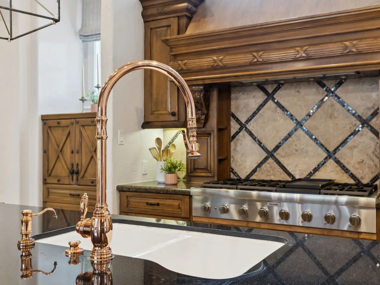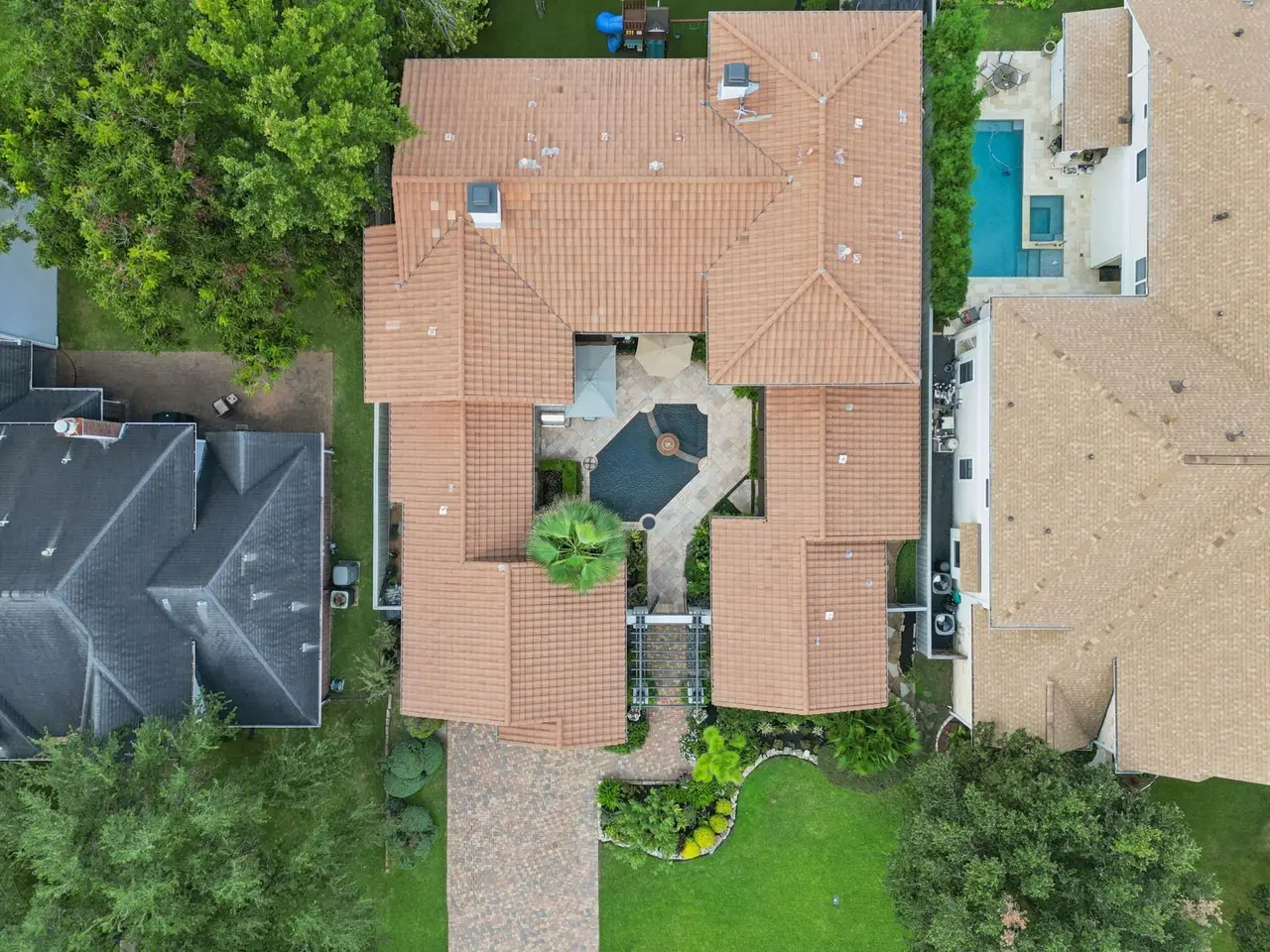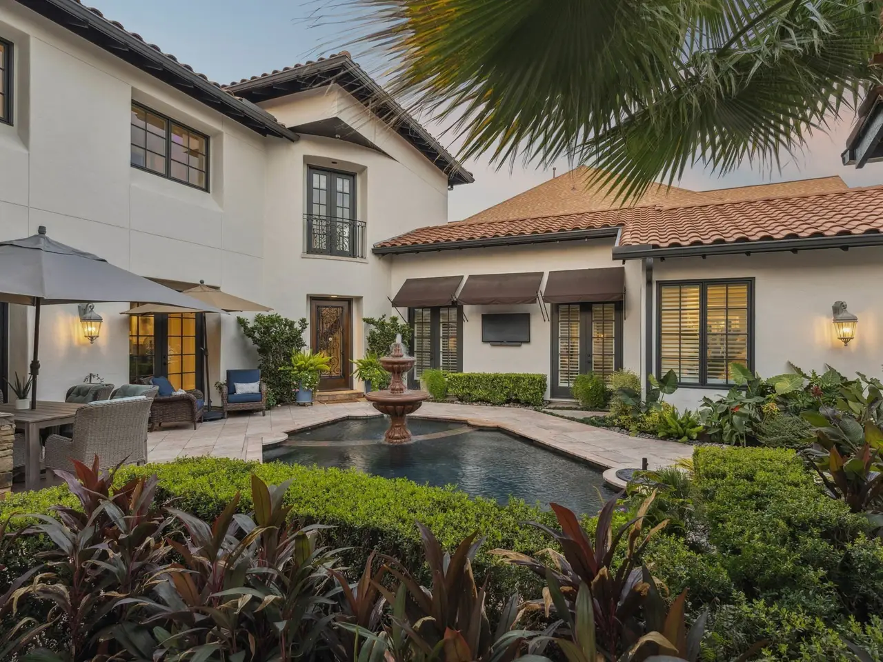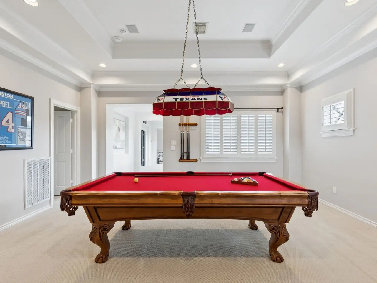 Designed and built in 2001 by acclaimed Richard Price, this home won GHBA 2003 award for design. Front, private courtyard with pool, fountain and spa wraps around the home and features a new outdoor kitchen. Stylish double height foyer welcomes you w/ designer lighting. Country style kitchen with Thermador appliances with seamless flow into family room. Water osmosis system. Private Primary Bedroom with spa style bathroom and generous closets. Sumptuous dining room with attached wine room and butler's pantry and further formal living room. 3 bedrooms up, all with ensuite - and large games room. Outside roomy back yard with new Astro Turf & Tuff Shed (both 2024). Shutters throughout the home, exposed beams, double garage and driveway parking. Outside fully painted (2025). This home is unique and has been beautifully maintained by current owners.