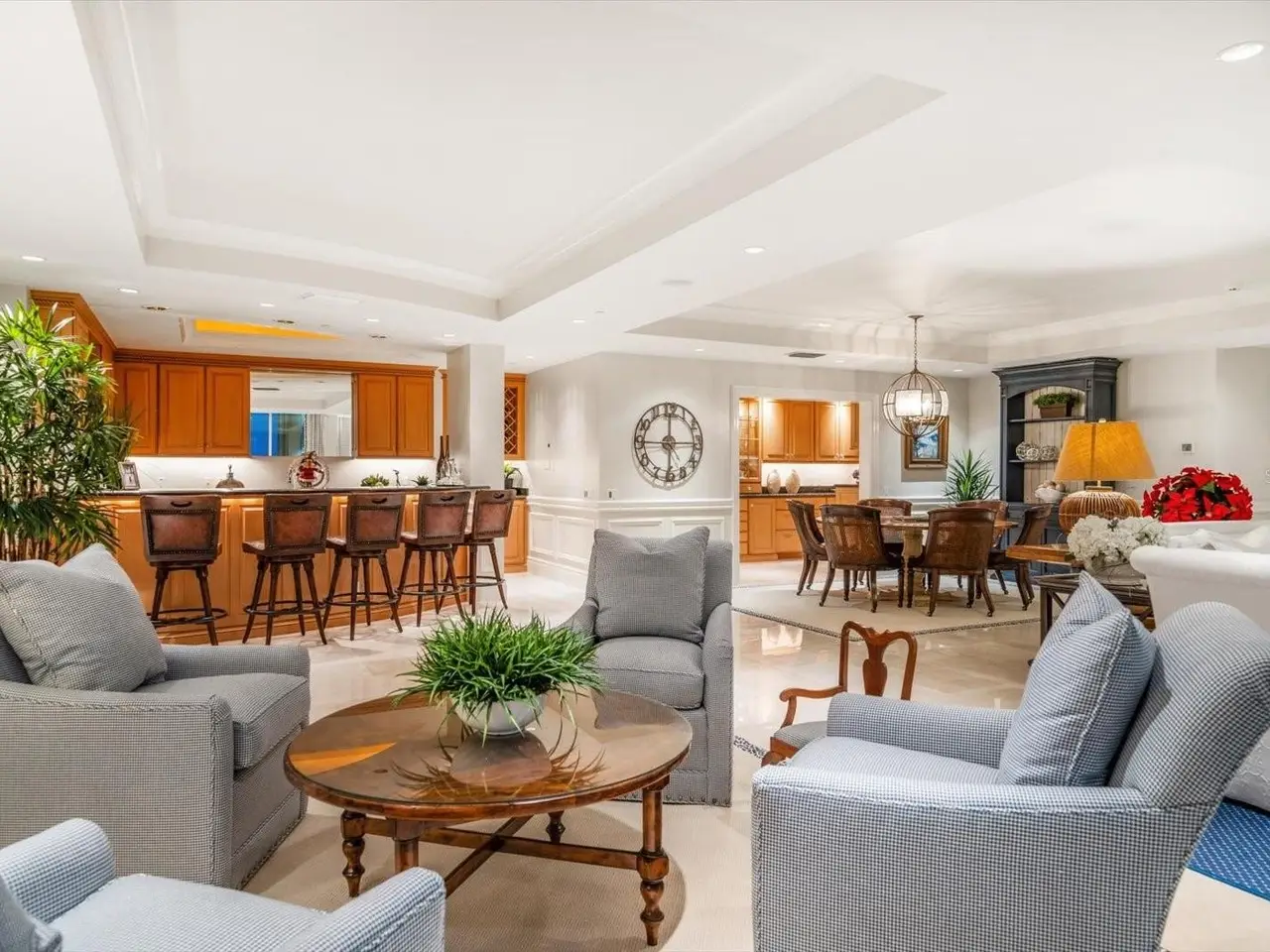 A rare FULL FLOOR DOMAIN! Sophisticated private condominium encompassing the entire sixth floor of Seaside III-this is the best of resort-style living, perfected, personalized and offering elevator to foyer exclusivity unlike any other property within the grounds of the very desirable Belleair Country Club. Discover the pinnacle of luxury living in this remarkable residence showcasing sweeping views from the Intracoastal Waterway to the Gulf waters. Exquisitely furnished and spanning over 6,000 square feet, the entire floor is a seamless combination of maximum space and minimal responsibility providing a superior quality of life without the burdens of homeownership. Designed with both elegance and comfort in mind, the floor plan features formal and informal living areas ideal for entertaining or quiet enjoyment. The chef's dream kitchen is equipped for high-level culinary experiences. With efficient organizational features, high end appliances, custom built-ins, impressive center island, butler’s pantry, and abundant storage, the area serves as a focal point for casual gatherings or creation of exceptional meals. The primary suite is secluded from the main living areas creating a peaceful welcoming retreat with its gracious sitting area. Enjoy the dressing areas and extensive customized closets. A luxurious bathroom complete with a spacious walk-in shower and separate soaking tub is inviting. On the opposite end of the primary suite, three guest suites, each with private baths and generous closets, provide refined accommodations for guests or extended family allowing for additional privacy. Throughout the home, custom millwork, coffered ceilings, signature lighting, artistically etched glass doors, marble flooring, and an impressive fully equipped bar area reflect fine craftsmanship. Floor-to-ceiling windows and doors, and wraparound balconies capture endless water views. This is an immaculately finished property where each item from furnishings to accessories has been selected by a top-tier interior designer-custom made and custom sized creating a refined and gracious retreat. Enjoy private, secure living with a 24-hour guarded gate, secured building entry, two under-building parking spaces, and additional storage. Located in a non-evacuation zone, this residence offers peace of mind and a truly carefree lifestyle—no worries with power failure or water intrusion during storm seasons. Residents of Belleair Country Club enjoy exclusive access to two championship 18-hole golf courses, pickleball and tennis courts, croquet, a fitness center, aquatic programs, boat slips, and fine dining—all within this premier coastal community. A rare offering that embodies the essence of refined living in a fabulous country club environment, this is a key departure from a single-family home-ideal for seasonal residents or frequent travelers.