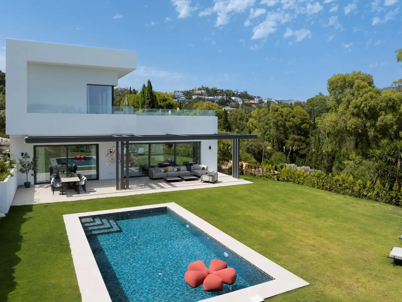 Located in Camino del Higueral, we present this newly built detached villa with south-facing orientation. A unique property that combines contemporary design within an ideal location. Surrounded by nature and just five minutes away from San Pedro de Alcántara and ten minutes away from Marbella and Puerto Banús, this property offers space and style in a peaceful, well-connected setting. Built with top-quality materials and excellent finishes, this villa is sold as a turnkey project. The entire interior design and furnishings have been carried out by Bonaldo, a renowned Italian brand with over eight decades of history, known for blending aesthetics, innovation, and functionality in every piece. The result is an elegant, welcoming, and fully functional home. The property is distributed across three floors and features a bright living room with an open-plan kitchen and direct access to the terrace, garden, and private pool. It offers six bedrooms, all with en-suite bathrooms spread across all floors, as well as two guest toilets. The master bedroom is located on the first floor and includes a large walk-in closet. There is also a spacious open-plan basement, a versatile blank canvas ideal for creating a gym, cinema room, or entertainment area, tailored to the future owner's needs. The villa is equipped with the latest home technology, including a full domotics system and aerothermal climate control, ensuring year-round energy efficiency and comfort. Additionally, it features a covered carport for two vehicles. This property represents an excellent opportunity for those seeking a modern and spacious residence, where every detail has been carefully considered to enjoy the Mediterranean lifestyle with maximum comfort.