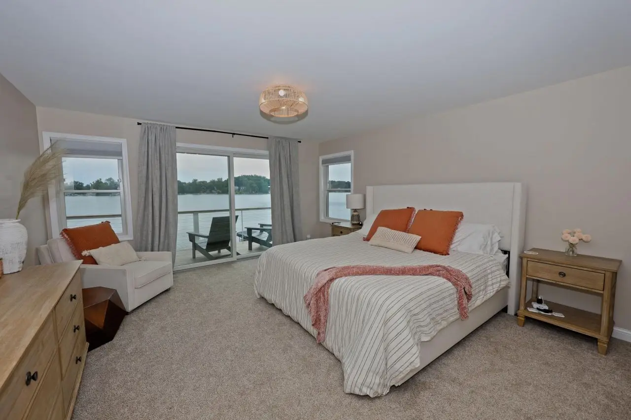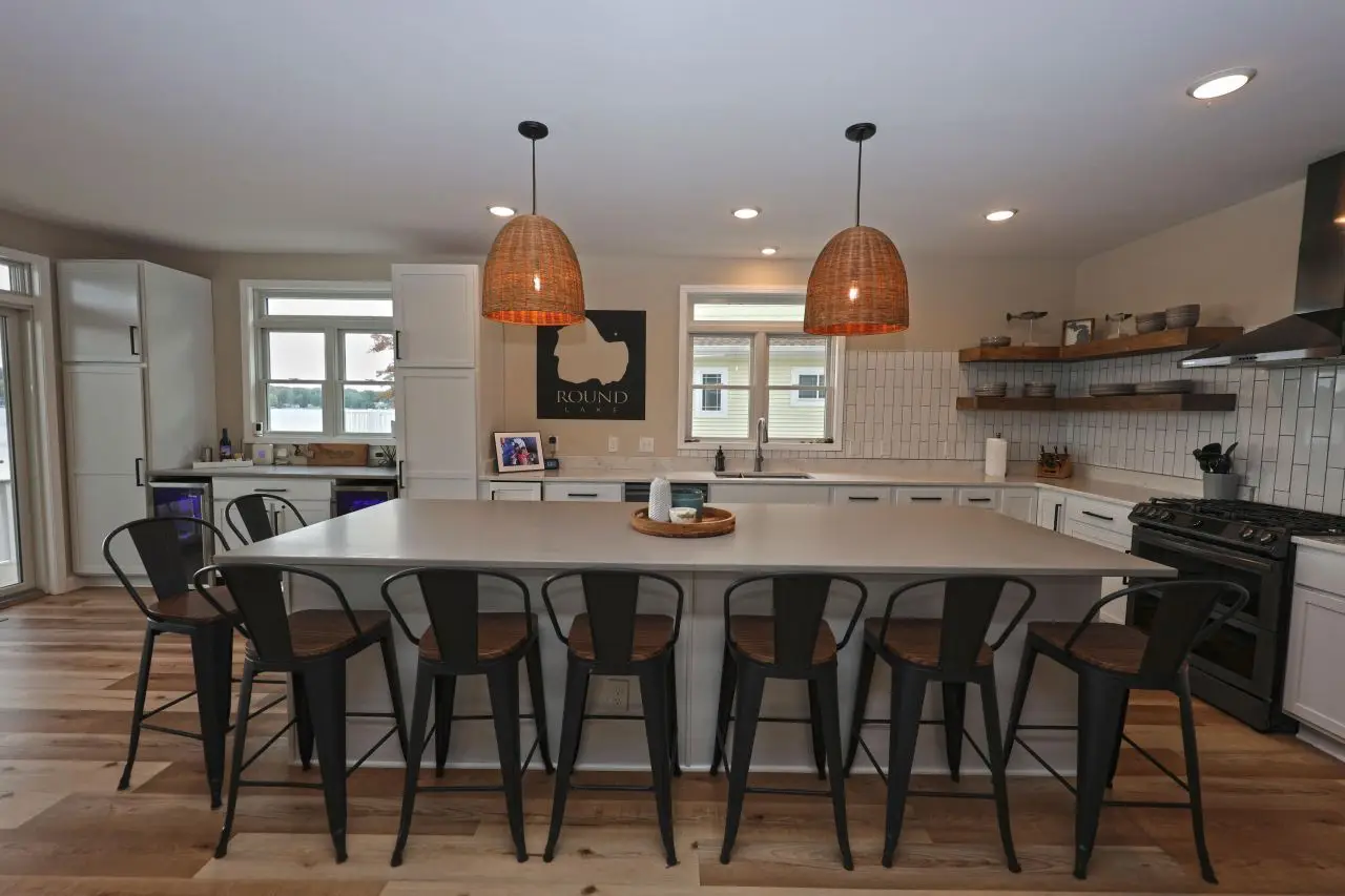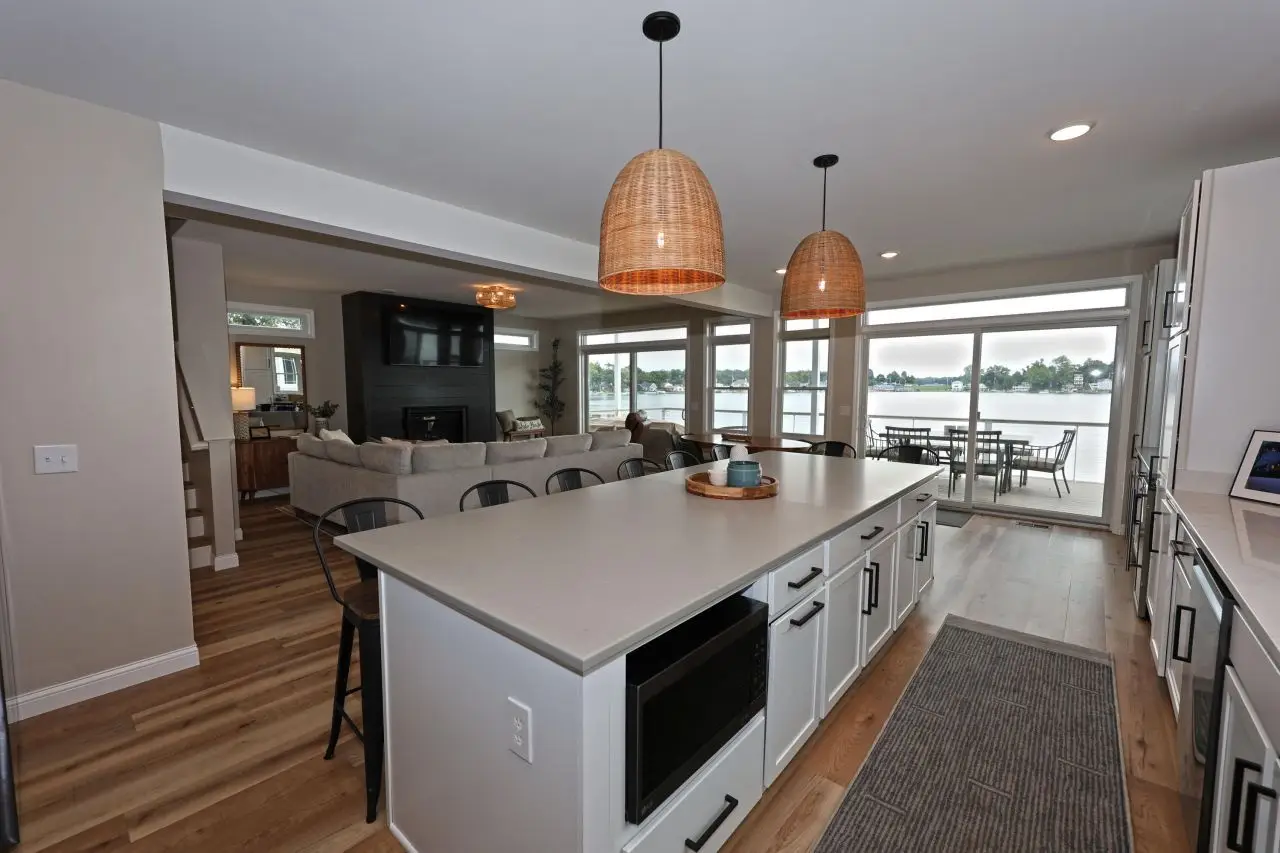 This stunning contemporary home on Round Lake was newly constructed in 2023 with three spacious levels, and a thoughtfully designed floor plan. The open kitchen and living space serve as the heart of the home. The kitchen features an island with seating for eight, an ideal space for entertaining or casual family meals. Stylish tiled backsplash and floating shelves add a modern touch. A beverage bar with dual refrigerators. The kitchen is complete with a walk-in pantry. The living room features a gas fireplace, a cozy focal point, perfect for relaxing. Dual sliding doors open directly onto the deck with spectacular views of Round Lake. This home offers a total of six bedrooms, five with private baths. Two with sliding doors to the upper deck. The walkout includes a family room, bar kitchenette, a bunk room, full bath, and laundry. Its fantastic outdoors as well, with an outdoor fire pit, shower, built in deck kitchenette, storage, and a sandy beachfront. This home is simply amazing! Round Lake is an all sport lake in the resort area of Sister Lakes, Michigan. Round Lake is unique because it has a social sand bar for visiting and you can boat to restaurants. The Lake Life is fabulous, but Sister Lakes has much more to offer. Taste the freshest produce from the local produce stands. Sample beers at our new breweries. Take a wine tour. SW Michigan offers 30 different venues. Great golf courses are just around the corner. Winter enjoyment, too, with miles of snowmobile trails and ice fishing. Sister Lakes is less than two hours from Chicago and just over 30 minutes from Notre Dame.