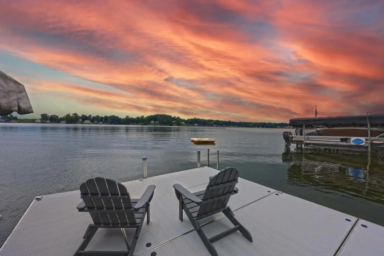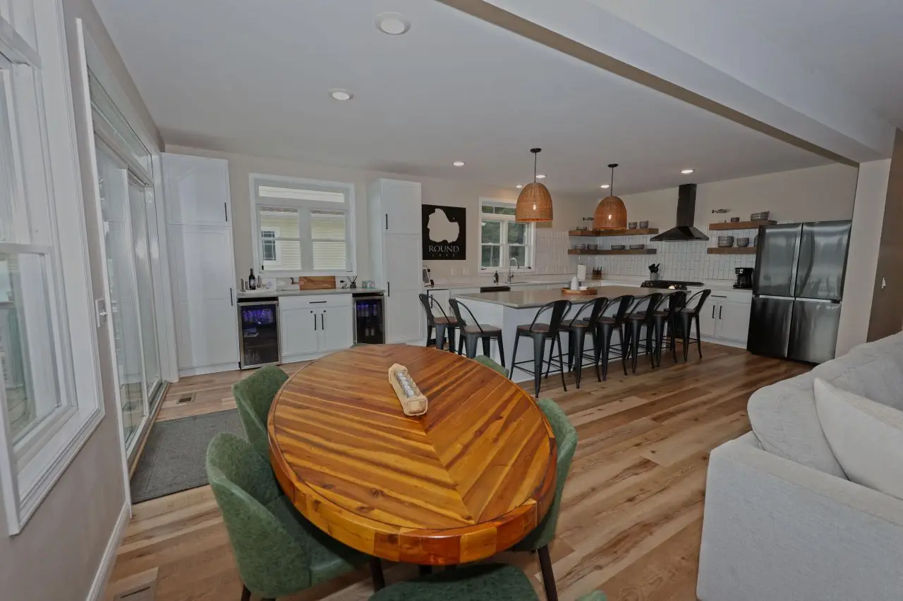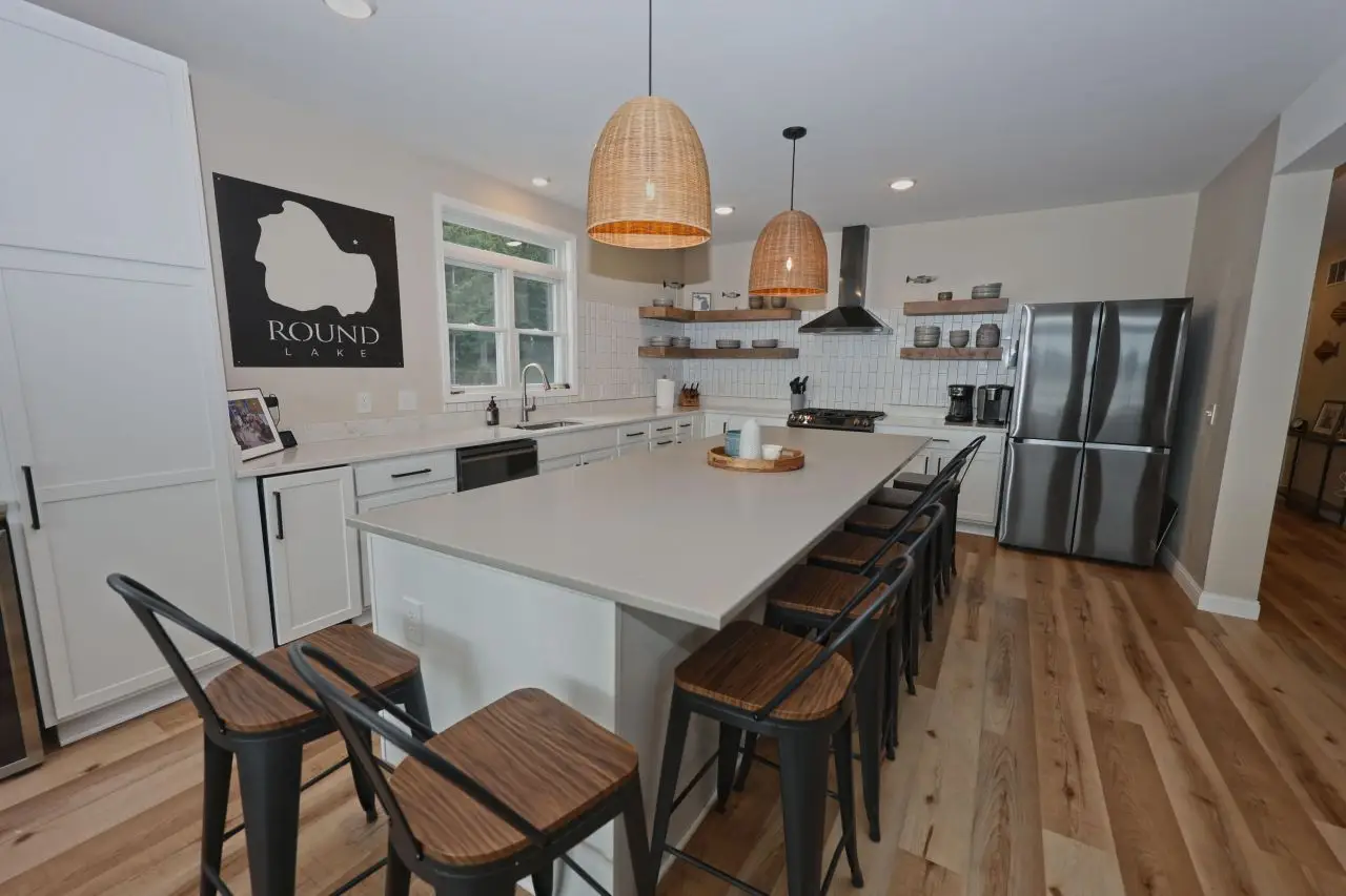 This stunning contemporary home on Round Lake was newly constructed in 2023 with three spacious levels, and a thoughtfully designed floor plan. The open kitchen and living space serve as the heart of the home. The kitchen features an island with seating for eight, an ideal space for entertaining or casual family meals. Stylish tiled backsplash and floating shelves add a modern touch. A beverage bar with dual refrigerators. The kitchen is complete with a walk-in pantry. The living room features a gas fireplace, a cozy focal point, perfect for relaxing. Dual sliding doors open directly onto the deck with spectacular views of Round Lake. This home offers a total of six bedrooms, five with private baths. Two with sliding doors to the upper deck. The walkout includes a family room, bar kitchenette, a bunk room, full bath, and laundry. Its fantastic outdoors as well, with an outdoor fire pit, shower, built in deck kitchenette, storage, and a sandy beachfront. This home is simply amazing! Round Lake is an all sport lake in the resort area of Sister Lakes, Michigan. Round Lake is unique because it has a social sand bar for visiting and you can boat to restaurants. The Lake Life is fabulous, but Sister Lakes has much more to offer. Taste the freshest produce from the local produce stands. Sample beers at our new breweries. Take a wine tour. SW Michigan offers 30 different venues. Great golf courses are just around the corner. Winter enjoyment, too, with miles of snowmobile trails and ice fishing. Sister Lakes is less than two hours from Chicago and just over 30 minutes from Notre Dame.