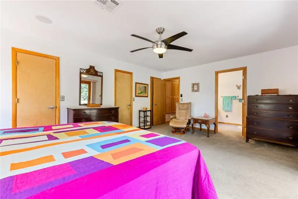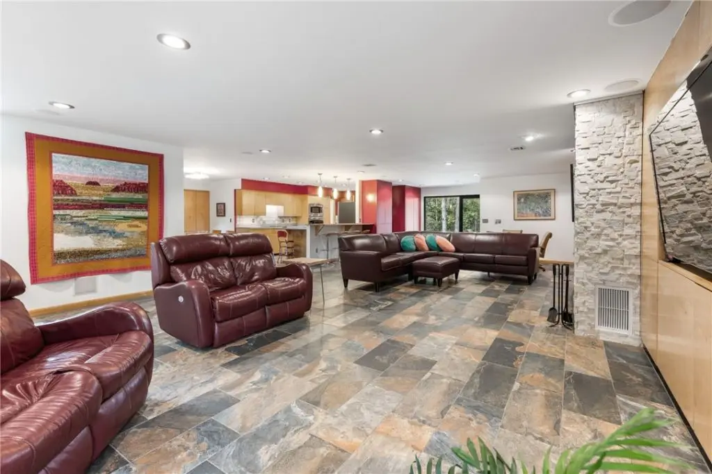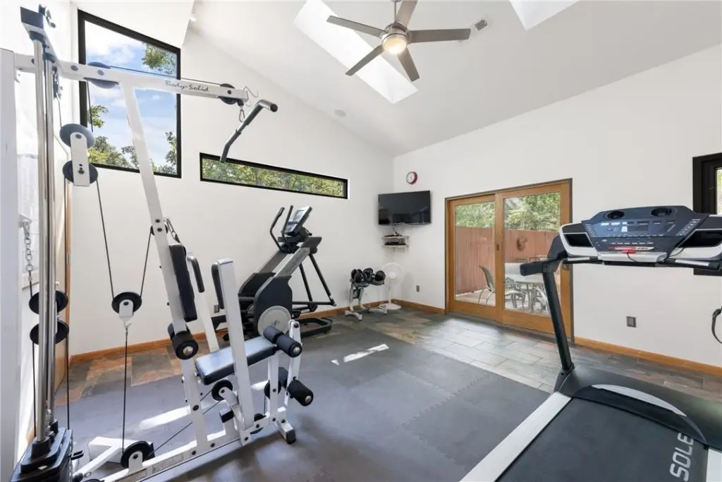 Less than mile from Coler Mountain Bike Preserve. The acres have open space, lots of trees, firepits, decks, patios; property feels like a retreat; peaceful setting. From indoors, nature is appreciated because of large windows & skylights. Main living space is large/open; allows versatility to furnish for a preferred lifestyle; whether to use the space for large sofas & chairs, dining areas, game tables, piano, or other furnishings. There is a lot of minimalist style cabinetry throughout the home with clean lines and a focus on simplicity & functionality that creates a calm and uncluttered environment. A safe room (565 sq.ft.) is in the lower level. Home also has a sauna. The location adds much value to this property. It is a rural setting where homes have large lots, yet just a few minutes to Bentonville Square, Museums, Walmart Home Office, and many trails. There is a 1500 sq.ft. heated/cooled 2-level shop with car lift & other equipment. There's a generator for the full house & shop with 1000 gallon propane tank