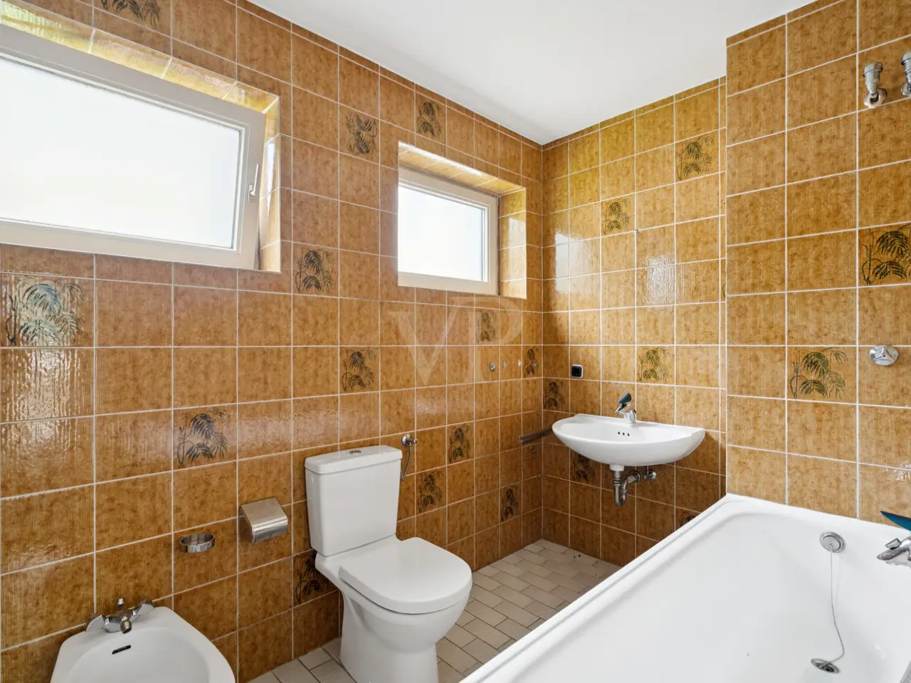 Detached house with great potential and sunny garden terrace A charming mid-terraced house is for sale, ideal for families or couples looking for a new home with great design potential. The house is located in a quiet side street in a sought-after area of Schmargendorf, surrounded by green gardens and dense vegetation. The location offers pleasant privacy, ideal for families and anyone who appreciates peace and quiet. The property was built in 1977 and has a living space of approximately 102 m². It is situated on a plot of around 241 m². The house, which is in need of renovation, offers an excellent basis for individual design and modernization. On the first floor of the house there is a bright living and dining area with parquet flooring, which receives plenty of natural light through large window fronts and conveys an amazing feeling of space thanks to its room height of approx. 3.01 m. From here, you have direct access to the spacious south-west-facing garden terrace, which is equipped with an awning and invites you to spend relaxing hours outdoors without being too much in your neighbor's field of vision! The garden is densely overgrown and still offers several design options! The well-maintained fitted kitchen is equipped with high-quality Siemens electrical appliances and allows you to enjoy a pleasant cooking experience. Blinds on the first floor ensure a pleasant indoor climate and security. The upper floor houses three bedrooms, one of which offers direct access to an inviting balcony with impressive garden views. The other two rooms can be used as a children's room, study or guest room. There is also a bathroom with a bathtub and bidet. The house has a full basement and therefore has plenty of storage space and potential uses. The hobby room (not included in the living space) is particularly noteworthy in this context with a ceiling height of approx. 2.28 m and is ideal for accommodating your guests! The oil central heating was renewed in 2015 and has a 5000-liter tank, which ensures an efficient heat supply. The property is part of a homeowners' association (WEG) with a total of eight owners, with the monthly rent amounting to €330.23. The house also has a garage with enough space for a vehicle. Please note that the property is in need of renovation, but this gives you the opportunity to design it according to your personal ideas. With its great potential, this property offers an excellent opportunity to create a home entirely according to your own wishes. It is suitable for both handy buyers and families looking for a customizable home in an appealing neighborhood. Feel free to arrange a viewing to see the possibilities of this property for yourself.