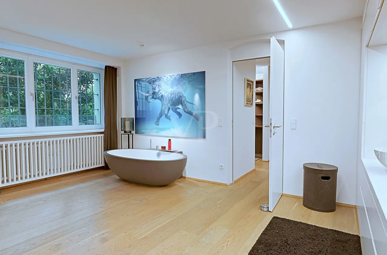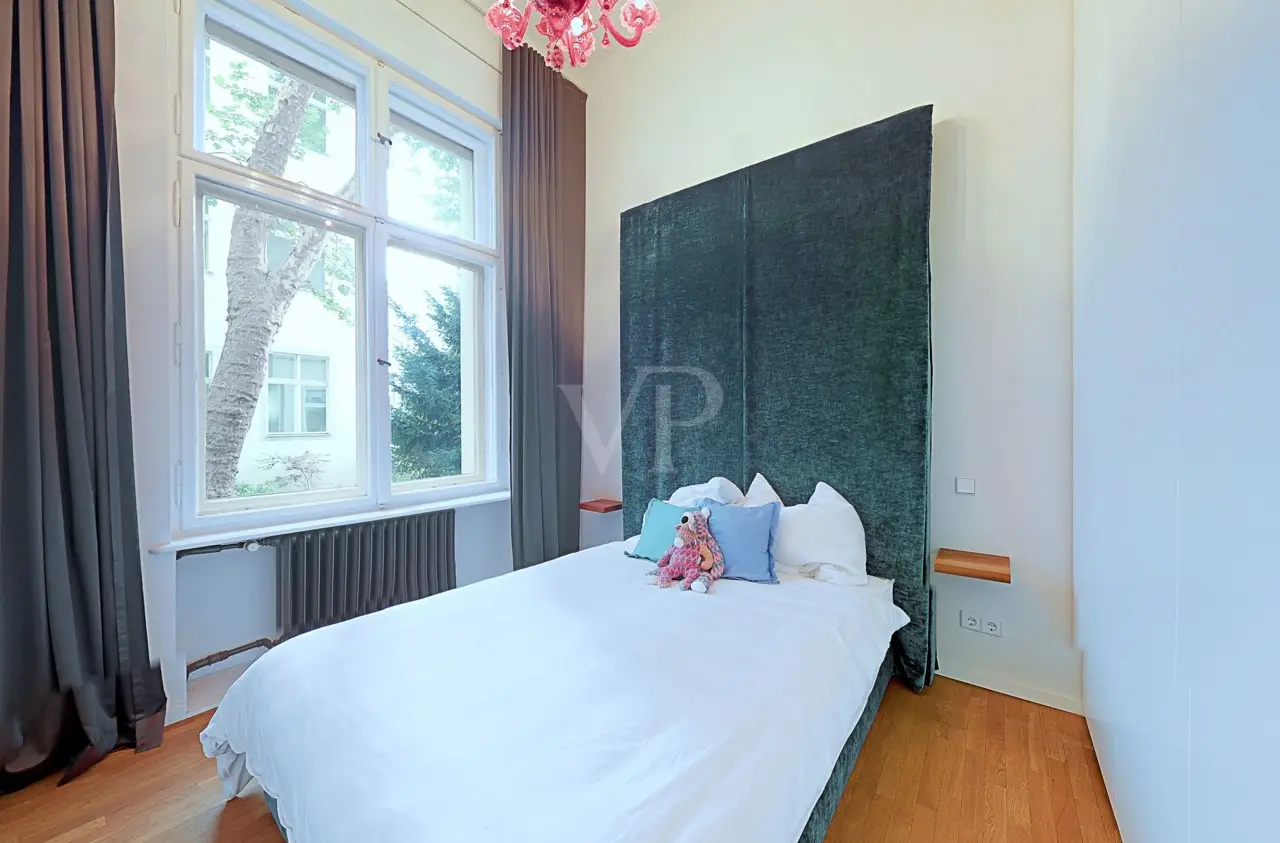 This exclusive bel étage with basement and private front garden, located in a historic old building from 1898, offers a comfortable and elegant living experience with a generous living space of approx. 250 m². The well-kept property was last modernized in 2018 and impresses with high-quality furnishings that leave nothing to be desired. The apartment extends over two floors - a kind of maisonette - and offers a total of five rooms, two of which can be used as cozy bedrooms. The two modern bathrooms are fitted with high-quality materials and offer a high level of comfort. The room layout ensures a clear separation of living and sleeping areas, guaranteeing privacy and functionality. The property is characterized by its extravagant interior design, which harmoniously combines the historic charm of the old building with modern elements. High-quality parquet flooring runs throughout the apartment, underlining the exclusive furnishings and giving the rooms a warm and inviting atmosphere. The materials used and the quality of workmanship meet the highest standards. A particular highlight is the front garden, which invites you to relax and linger and offers a welcome change from the urban environment. The apartment also has two separate entrances, one of which leads directly to the basement. This separate entrance offers additional flexibility in the use and layout of the living space. The property is heated by a central heating system, which ensures a pleasant living atmosphere even in colder months. The modernization work carried out in 2018 not only included visual and technical renovations, but also energy-related improvements that further increase living comfort. This exclusive property is in a sought-after location that offers both excellent connections to the urban infrastructure and proximity to recreational areas. Shopping facilities, schools and public transport are just a few minutes away, making everyday life much easier. This property is aimed at buyers who value a stylish living ambience in a historic setting and at the same time appreciate the convenience of modern facilities. A viewing is well worthwhile to get to know the numerous advantages and the special atmosphere of this apartment in person.
