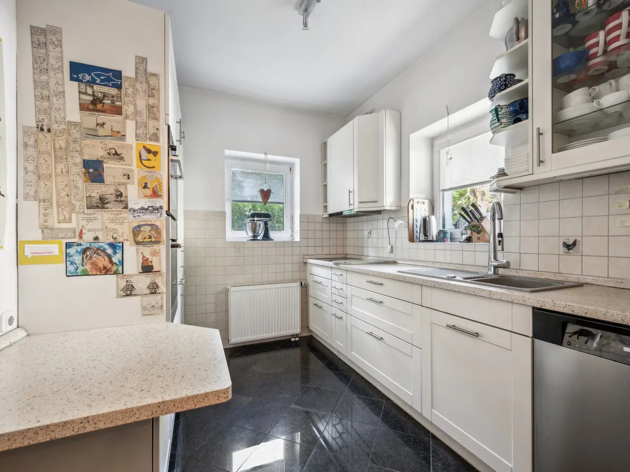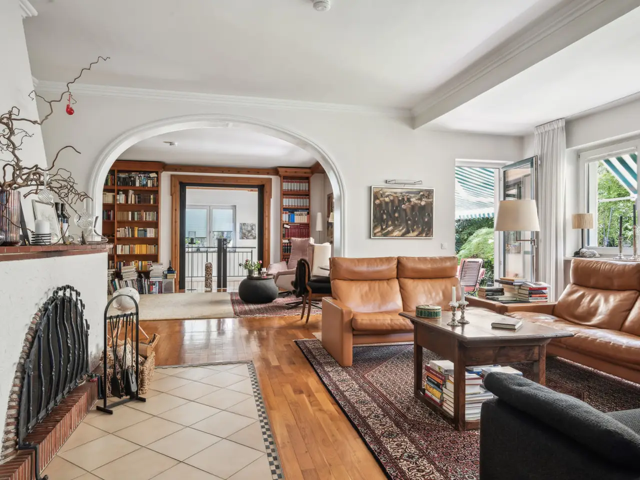 This exceptionally spacious and luxurious detached house from around 1936 with a lot of charm and the highest living comfort awaits you in the middle of the green and prestigious Berlin district of Schmargendorf. The beautiful property is situated on a plot of approx. 750 m² in a quiet street and impresses with its classic elegance, high-quality furnishings and a fantastic garden. Upon entering the house, you arrive directly in the entrance area. From here you can enter one of the three representative living areas, the kitchen or access the basement or the upper floor. Four bright rooms, some with floor-to-ceiling windows, a fireplace and stylish passageways, create an immediate feeling of well-being. This is where classic architecture meets modern living comfort. Two entrances lead directly into the beautiful garden. This impresses with its diverse, old plants and invites you to relax on the large terrace. Three children's rooms are possible on the upper floor. One of them has access to a balcony. There is also a large master bedroom, a hallway and two bathrooms. The basement boasts a hobby room, a utility room and a laundry room, among other things. There is also an office, a boiler room and a bathroom with shower. There is also a convenient side entrance. A wallbox for electric vehicles is available. The two parking spaces offer room for one large and one normal-sized vehicle. This exclusive property not only offers space and comfort, but also a home with character. The high-quality interior, charming garden and sought-after location make this house a rare opportunity in the Berlin real estate market. It serves as an ideal family home and stylish retreat and also offers plenty of privacy.