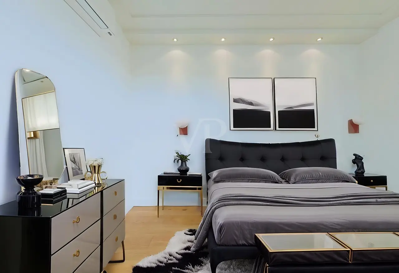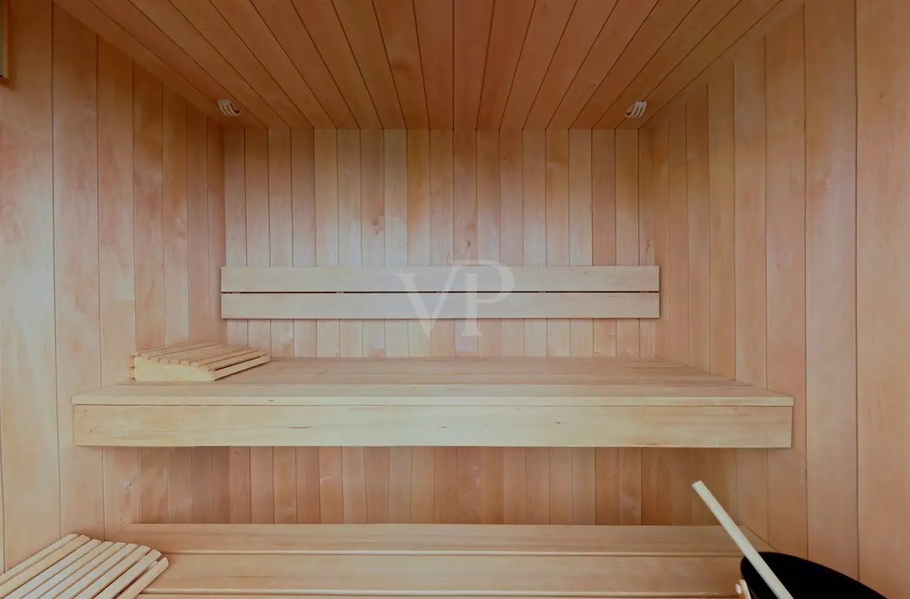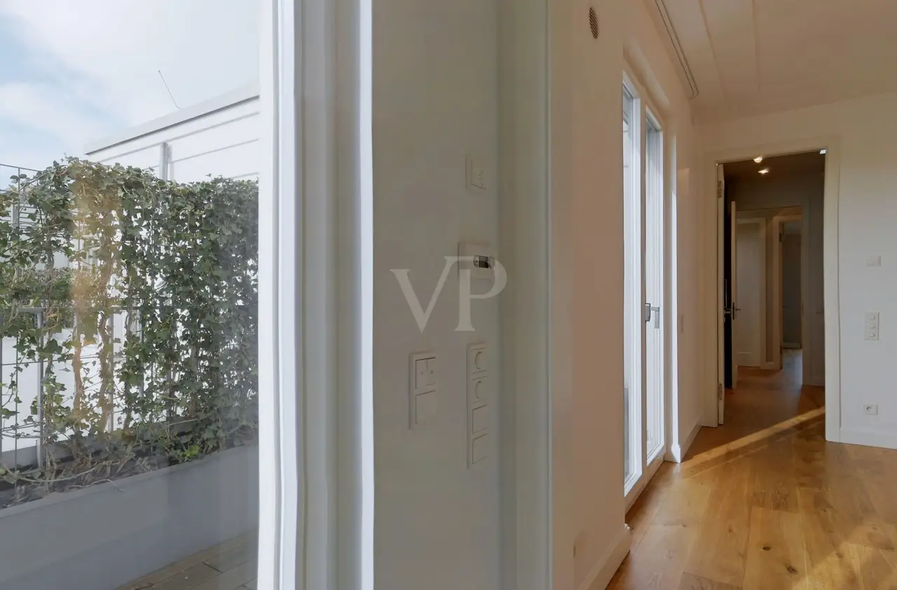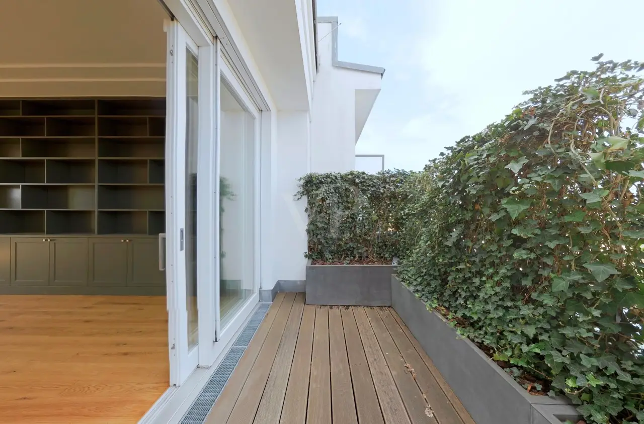 This exclusive penthouse apartment offers a generous living space of approx. 224.56 m² and combines stylish design with luxurious furnishings. The property is finished to a high standard and offers an impressive room layout with a total of five rooms, including three spacious bedrooms, which provide ample space for individual living concepts. It is particularly worth mentioning that you enjoy special privacy here - the two upper floors of the building are used exclusively by you. There are also no direct neighbors on the roof terrace level. The living area has a high-quality parquet floor, which gives the rooms an elegant atmosphere. The walls are plastered, creating a modern and clean look. Built-in wardrobes provide additional storage space and underline the practical design of the apartment. The apartment's two bathrooms are exclusively equipped and offer a place for rest and relaxation. High-quality materials and modern fittings characterize the picture and raise living comfort to a new level. A particular highlight of the penthouse apartment are the secluded, wrap-around terraces, which not only offer plenty of additional outdoor space, but also open up flexible usage options. An outdoor kitchen on the terrace allows you to prepare meals in the open air, ideal for social gatherings with friends and family. Another plus point is the sauna on the terrace, which offers you the opportunity to recover from the stresses of everyday life and relax in a private atmosphere all year round. This property is ideal for those looking for a combination of stylish interiors and practical outdoor spaces. The spatial layout and high-quality fittings make this penthouse apartment a special offer on the market. It offers ample space and design options for families as well as couples or individuals looking for a special living experience. A parking space in the underground garage and separate bicycle parking spaces in the garden area complete the offer. Please contact us for further information or to arrange a viewing.