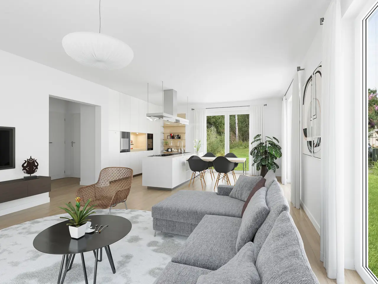 Open-plan kitchen with garden terraces