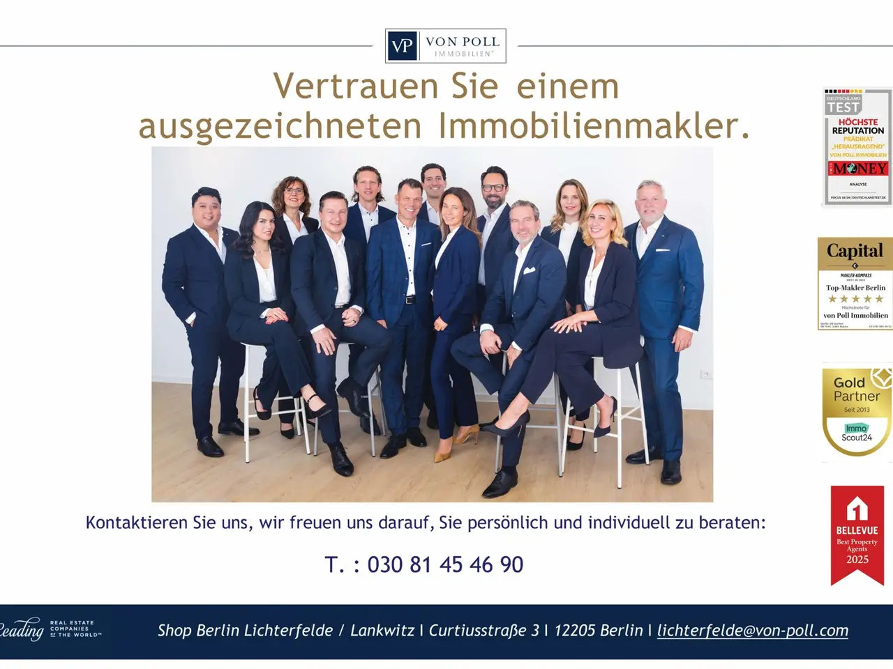 This well-maintained villa, built in 1935, offers plenty of space for comfortable living and individual design options on approx. 205 m² of living space and a plot of approx. 1,404 m². With 6 rooms, 2 bathrooms and 2 balcony/terrace areas, this property is ideal for families who value spacious living. The attractive house from the 1930s has been continuously maintained and is therefore in an extremely well-maintained condition. Important modernizations include, for example, the re-roofing of the roof (2005), the thermal insulation of the roof area (2006), the renovation of the balcony support beams (2006) and the extensive renovation of the bathroom (2004). Most recently, in 2018, the gutter was replaced and the roof box was repainted. These ongoing measures ensure an attractive appearance and a reliable building structure. The property impresses with well-maintained furnishings and a carefully thought-out room layout. On the ground floor there is the spacious living and dining area, which can be separated from each other by an elegant wooden sliding door. A large panoramic window offers a view of the spacious garden and ensures a bright, friendly atmosphere. The external blinds on the ground floor - some of which are electrically operated - offer additional comfort. The well-preserved fitted kitchen completes the offer on the ground floor. 4 rooms await you on the upper floor! There is also the master bathroom, which is equipped with a bathtub and separate shower. The access to the balcony, which leads directly from the master bedroom, offers a pleasant retreat with a view over the garden area. The other bedrooms also offer a variety of possible uses, for example as a children's room, home office or guest room. The house has a full basement and allows direct access to the garden. There is also enough space for storage or hobby areas. It should be mentioned that all rooms in the basement have natural light! A garage and a repaired car driveway (2012) complement the entire infrastructure of the house. The oil central heating was installed in 1996, the oil tank with a capacity of 5,000 liters dates from 1999. Thanks to continuous maintenance, such as replacing the silicone seals on the windows (2015) or the basement waterproofing (2014), the house is ready to move into immediately. In addition, the attic offers potential for future expansion if additional living space is required. The property not only impresses with its generous living space and diverse amenities, but also with its extensive grounds. The well-kept garden offers plenty of space for individual garden ideas or leisure activities. Overall, it is a villa with a successful mix of tradition and modernity, which offers a high level of living comfort in a stylish ambience. Do not hesitate to contact us for further information or to arrange a viewing appointment. Position This 1930s house is located in a very sought-after residential area in the heart of the Zehlendorf district, a harmoniously grown suburb with old villas. It offers quiet living combined with the pleasant benefits of an urban infrastructure. In just a few minutes you can reach the center of Zehlendorf with numerous shops, doctor's offices, a swimming pool, an exclusive large fitness club and restaurants. The nearby Krumme Lanke and Schlachtensee lakes and the Grunewald forest provide excellent recreational opportunities all year round. Many popular kindergartens and schools, including the well-known John F. Kennedy School, are in the immediate vicinity. The closest connection to the Berlin city motorway is the Steglitz feeder road, which can be reached in just a few minutes. Zehlendorf is connected to the city center by bus (X10 to Bahnhof Zoo, M48 towards Alexanderplatz), S-Bahn and U-Bahn (S 1, U 3). The long-distance train stations Südkreuz and Potsdam Hauptbahnhof can each be reached in about half an hour by S-Bahn or car. BER Airport can be reached via the city motorway in about 30 minutes. equipment - spacious, very well-maintained single-family house in a classic style with great design potential - large panoramic window to the garden in the living area - living and dining areas are separated by a wooden sliding door - external blinds on the ground floor, partly electric - blackout on the upper floor using folding shutters - 1 garage - full basement, access to the garden - master bathroom with tub and shower - well-maintained "Miele" - fitted kitchen with electrical appliances - VIESSMANN - oil central heating from 1996 with 5000 l tank - large garden terrace facing east - balcony from the bedroom with a unique view of the garden - possibility of expanding the attic parking space 1 x Garage, 1 x Other Other Information An energy requirement certificate is available. This is valid until January 29, 2035. Final energy requirement is 702.58 kWh/(m²*a). The main energy source for heating is oil. The year the property was built according to the energy certificate is 1935. The energy efficiency class is H. MONEY LAUNDERING: As a real estate agency, von Poll Immobilien GmbH is obliged according to Section 2 Paragraph 1 No. 14 and Section 11 Paragraphs 1 and 2 of the Money Laundering Act (GwG) to establish and verify the identity of the contractual partner when establishing a business relationship, or as soon as there is a serious interest in executing the property purchase contract. For this purpose, it is necessary that we record the relevant data from your ID card (if you are acting as a natural person) - for example by means of a copy. For a legal entity, we require a copy of the commercial register extract from which the beneficial owner can be identified. The Money Laundering Act stipulates that the broker must keep the copies or documents for five years. As our contractual partner, you also have a duty to cooperate in accordance with Section 11 Paragraph 6 of the GwG. LIABILITY: We would like to point out that the property information, documents, plans, e