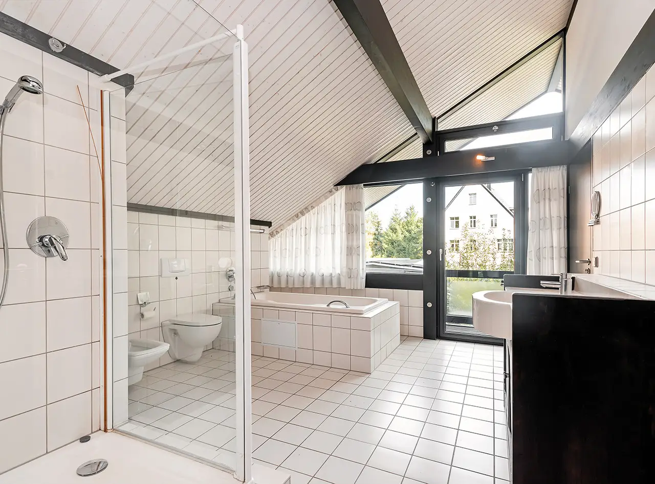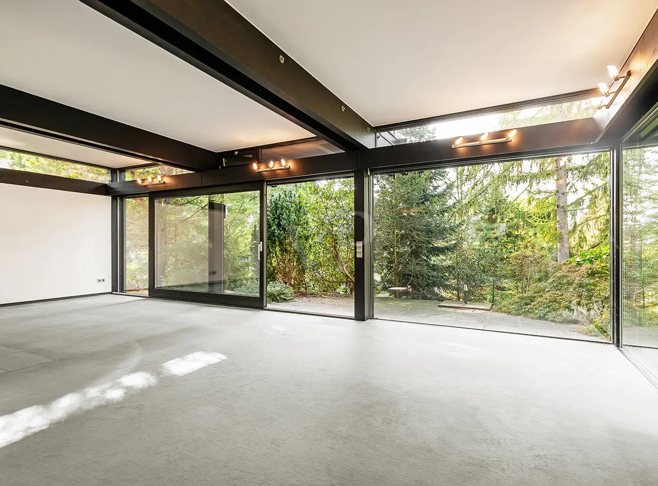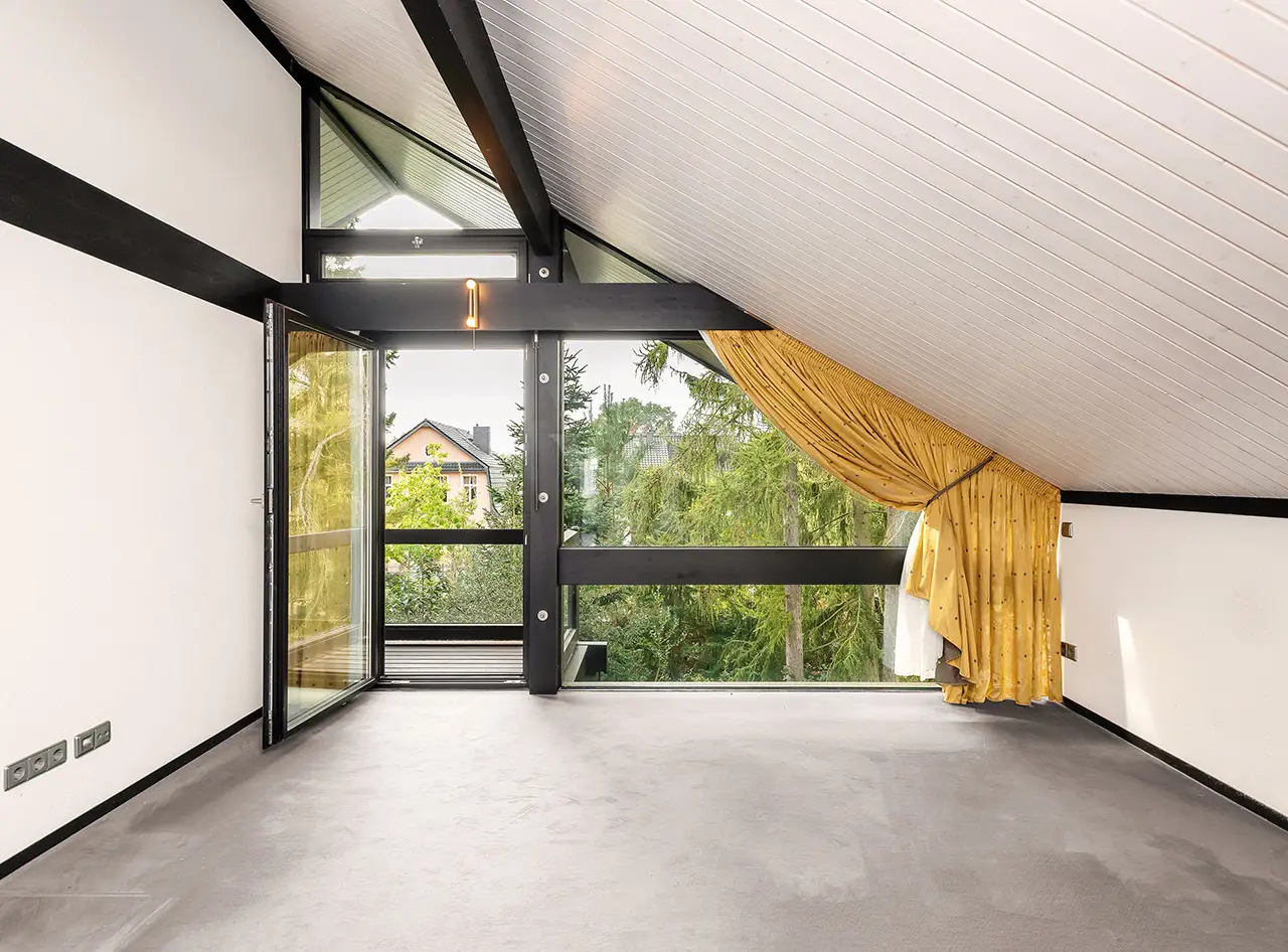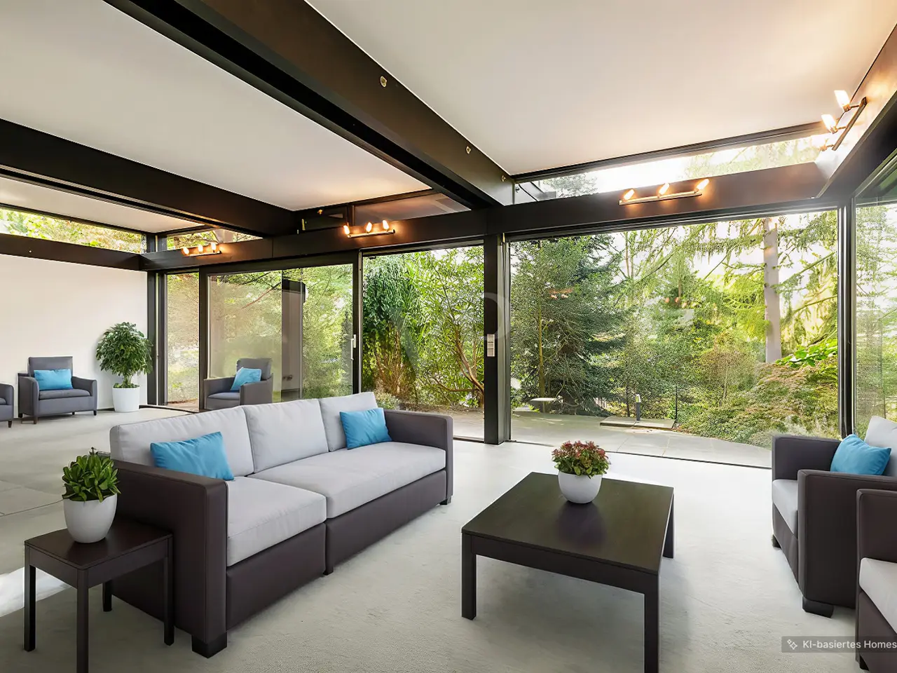 This property on offer here is a HUF HAUS, an impressive post-and-beam construction that impresses with its characteristic timber-and-glass design. This modern timber frame construction impresses with its large glass surfaces, which not only provide a bright and friendly atmosphere, but also create a close connection to the surrounding nature. A spacious hallway leads to the bright first floor of the property. The spacious dining and living area with access to two generous terraces forms the heart of this floor. A wood-burning stove from 2005 provides a cozy warmth on cool evenings and underlines the living comfort. Adjacent is a modern branded fitted kitchen that leaves nothing to be desired. A study or guest room and a shower room complete the first floor. An open gallery awaits us on the upper floor and invites us to linger. Two spacious rooms offer space for rest and relaxation. Particularly noteworthy are the two balconies, which offer you a variety of opportunities to enjoy the sun or relax outdoors. A stylishly designed bathroom, which perfectly combines functionality and design and is accessible from two sides, completes this floor perfectly. The spacious full basement is partially heated and offers additional storage space as well as versatile usage options. The house is also technically state of the art. A modern condensing boiler from 2020 ensures efficient heating performance. Electric shutters on the first floor offer additional comfort and security. The property has a solid garage with an electric door, which offers plenty of space for your vehicle, and there is also a separate parking space. The entrance to the property is secured by an electric gate, which harmoniously rounds off the overall appearance of the property. The spacious garden with mature trees offers plenty of space for relaxation and leisure activities. Both a well and a rainwater cistern are available for cost-saving irrigation and ensure a sustainable water supply. This HUF HAUS combines stylish architecture with modern technology and high-quality fittings. It offers a unique quality of living in a sought-after location, ideal for people who are looking for something special.