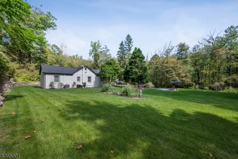 This exquisitely updated cottage combines elegance with understated sophistication. Thoughtfully reimagined for today's lifestyle, the home features an expansive open layout anchored by a designer kitchen with custom cabinetry, granite countertops, a large center island with seating, and top-quality finishes throughout. The adjacent living area includes a stone fireplace, perfect for cozy evenings. With three bedrooms, three full bathrooms, and an office, the interior spaces are both functional and beautifully appointed. Choose from two en-suite primary bedrooms, each offering comfort and privacy. Enjoy an oversized gunite pool set beside a gently flowing brook (no flood insurance required), surrounded by multi-level patios ideal for outdoor entertaining. The landscaped, fenced property provides both privacy and serenity, complemented by a crushed-stone, lighted driveway, a custom-designed bridge leading to the home, and a detached two-car garage. Additional highlights include solid hickory flooring throughout, newer mechanical systems, a recently installed six-bedroom septic system, a newer well pump, and a newer roof. The property benefits from low taxes and is located within one of the region's most sought-after school districts. Close to town, train, and acclaimed restaurants, this is a rare, turnkey opportunity to enjoy luxury living as-is, with the option to expand. A truly special property rarely available and not to be missed.