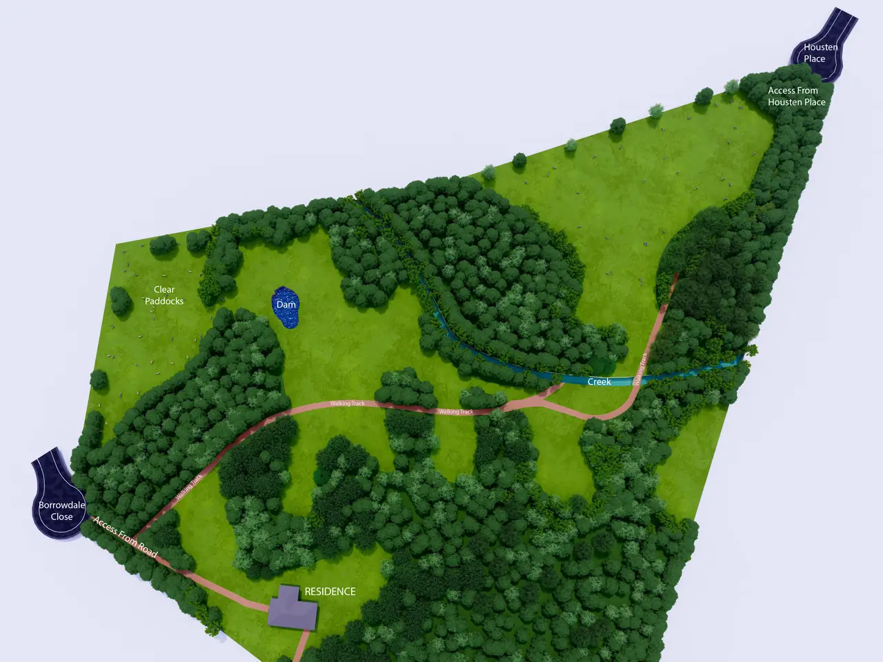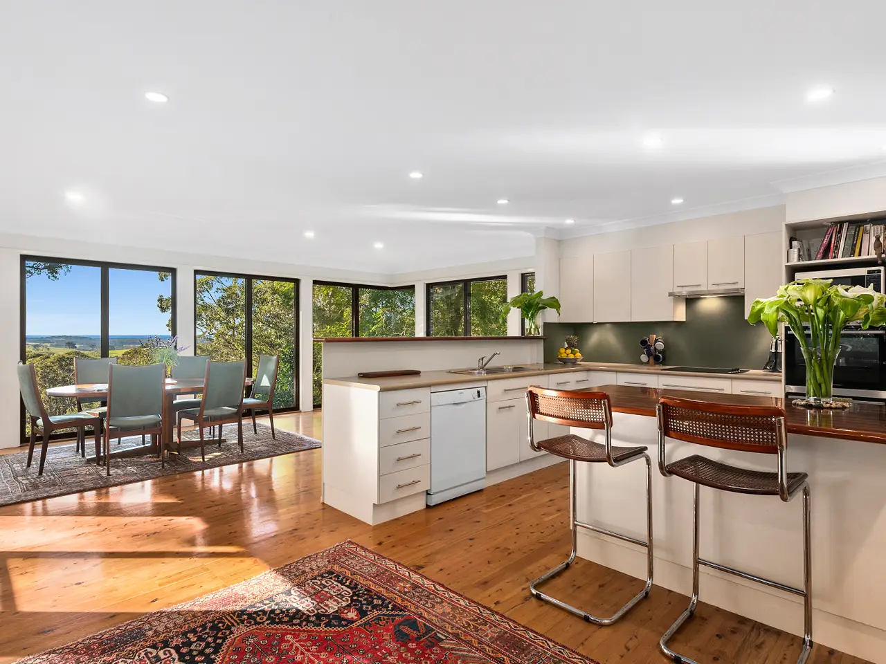 A private position on a picturesque rolling 21-acres conveniently located between Berry and the beach, complete with ocean views. This inviting homestead zoned RU2 holds an abundance of opportunity. There are 2 large cleared paddocks with several other smaller open areas, dam, a small creek running through and an abundance of walking and riding tracks throughout the property. The entry level of the home is inviting and warm, instantly opening up to the open planned lounge with slow combustion fireplace. The lounge, kitchen and dining all share in beautiful vistas of the ocean and grounds. There is timber flooring throughout the living spaces. The level also has 3 carpeted bedrooms with built-in wardrobes, a bathroom and separate toilet, plus laundry/mudroom providing easy access and convenience. Downstairs is perfect for teenagers and visitors, with a good-sized bedroom with beautiful views and separate bathroom. The rumpus/games room is a great feature on this level. A fun adventure playground, the grounds have been beautifully maintained, with a lovely mix of forest and acreage, with driving access throughout the whole property. Those interested will see the large, cleared block with entry from Housten Place (approx. 5 acres) as an exciting prospect. A dam services the gardens and is a good water source for cattle or horses. With these features combined, this property has much to give. It is hard to find such a whisper quiet, nature filled enclave just minutes to town and surrounded by prestige properties. Neighboring the property is Moeyan Hill Reserve, a haven for dog walking, mountain biking with trails galore • Large cleared and flat paddocks • Rain forest walks • Slow Combustion Fireplace • Split System Airconditioning • Rumpus/Games Room • Dam and running creek • Ocean and escarpment views • 100,000-liter underground tank water • Septic system • Town power • Sealed driveway
