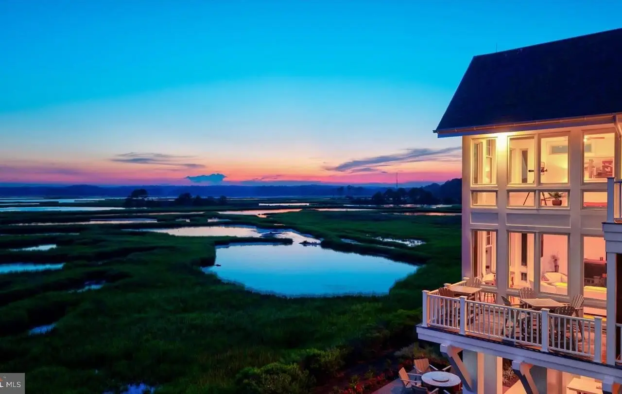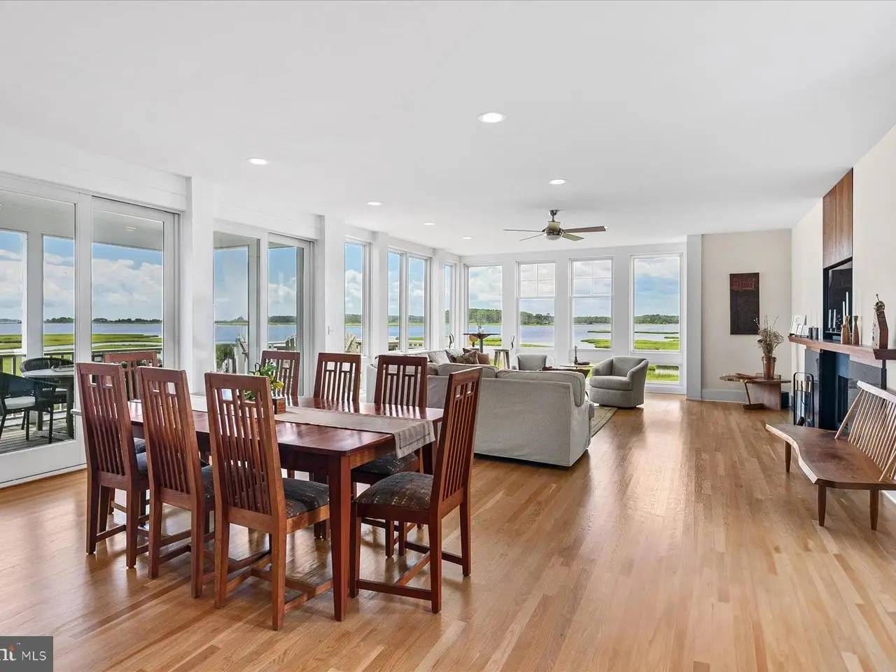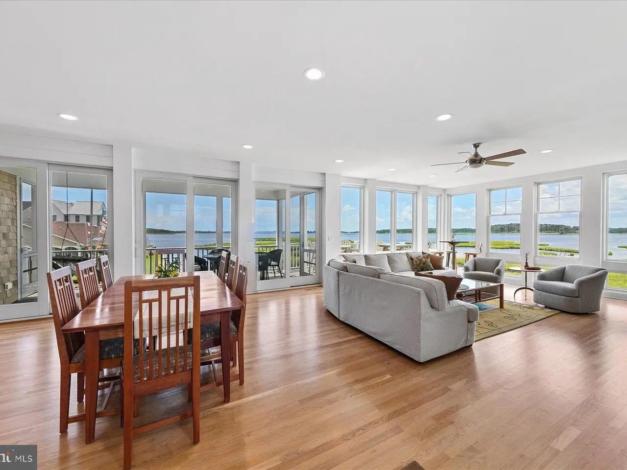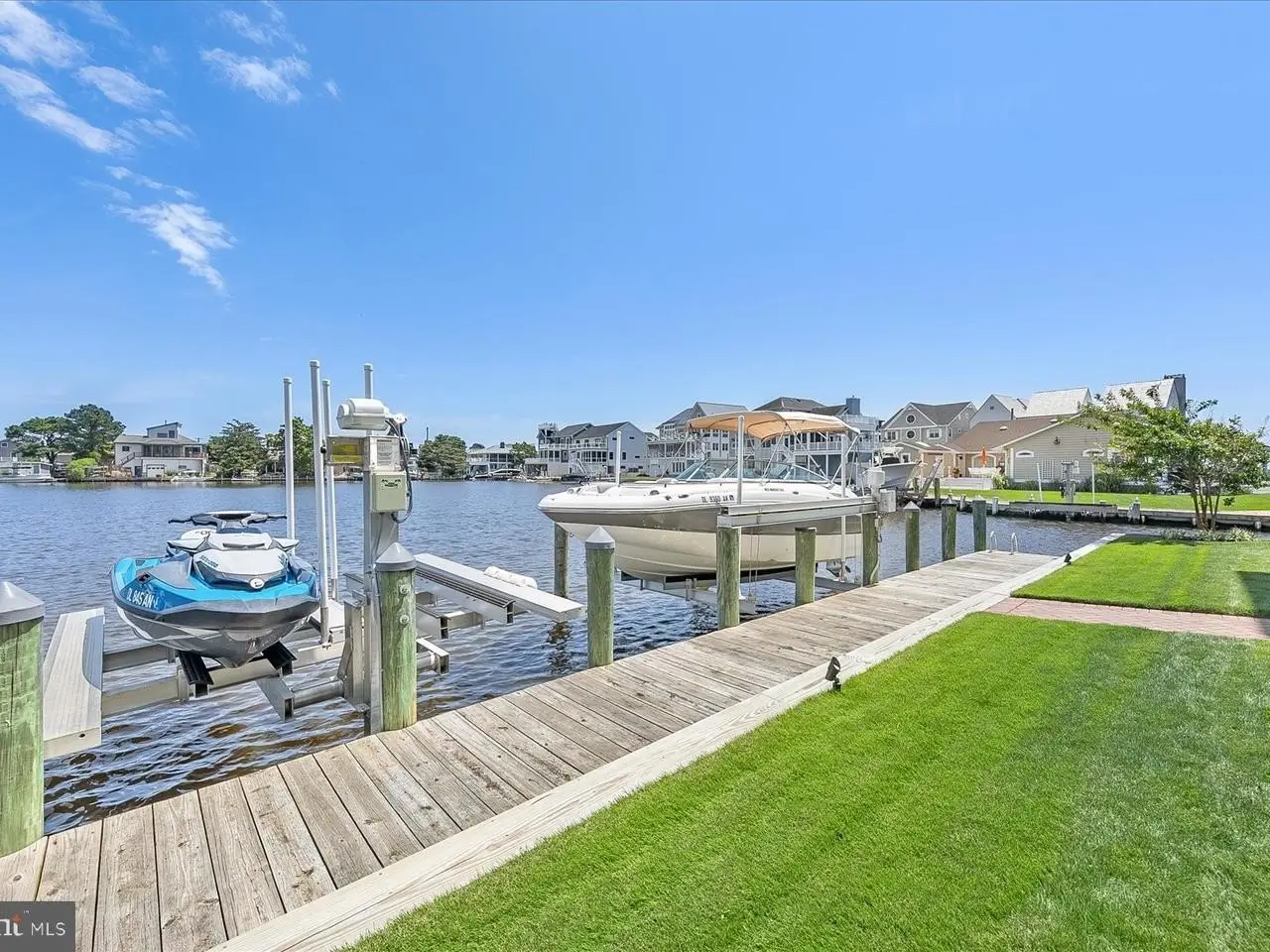 Take in unparalleled panoramic bay views from every room of this sophisticated modern beach home, ideally located on one of the most sought-after bayfront properties with water on three sides of the home. Complete with a private 50-foot dock, boat lift, and double jet ski lift, this exceptional residence was impressively designed, featuring high-end finishes and craftsmanship throughout. The expansive great room, with floor-to-ceiling windows on two sides, effortlessly frames sweeping views of the water and seamlessly blends the living, dining, and gourmet kitchen spaces. A large work island, bar with seating, and premium appliances elevate this culinary and entertaining space with easy access to a screened porch and open deck with views that are unable to be duplicated. The main level also offers a cozy family room, two guest bedrooms, and a full bathroom, along with a convenient powder room for guests. Upstairs, the bayfront primary suite is a tranquil retreat with its own private waterfront deck. Three generously-sized guest rooms each feature en-suite bathrooms, ensuring ample space and privacy for visitors. On the ground level, a spacious workshop and covered patio provide the perfect setting for crab feasts and relaxation, while the brick paver patio offers an ideal spot for evening bonfires by the water. The outdoor shower with a changing area makes clean-ups after a day on the beach or boat a breeze, and a two-car garage plus second one-car garage provide ample storage and convenience for all your vehicles, beach gear, kayaks, canoes, boating accessories, and bikes. Additional highlights include an elevator shaft for future conversion, geothermal hvac, and a location that's impossible to duplicate-situated on a peninsula with sweeping views of the bay and wetlands, yet just moments from the beach. Homes of this caliber, in such a prime location, are a rare offering.