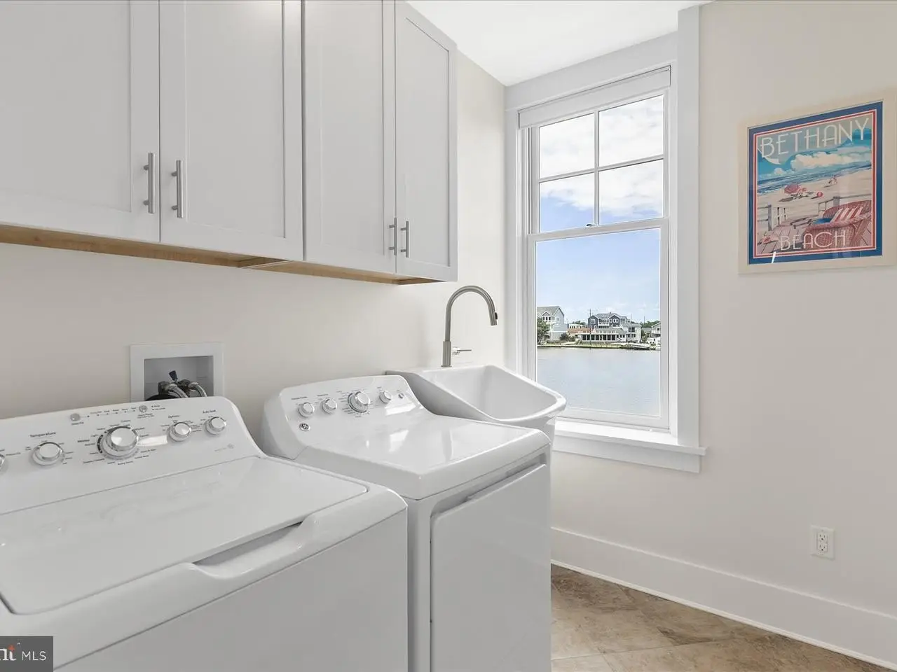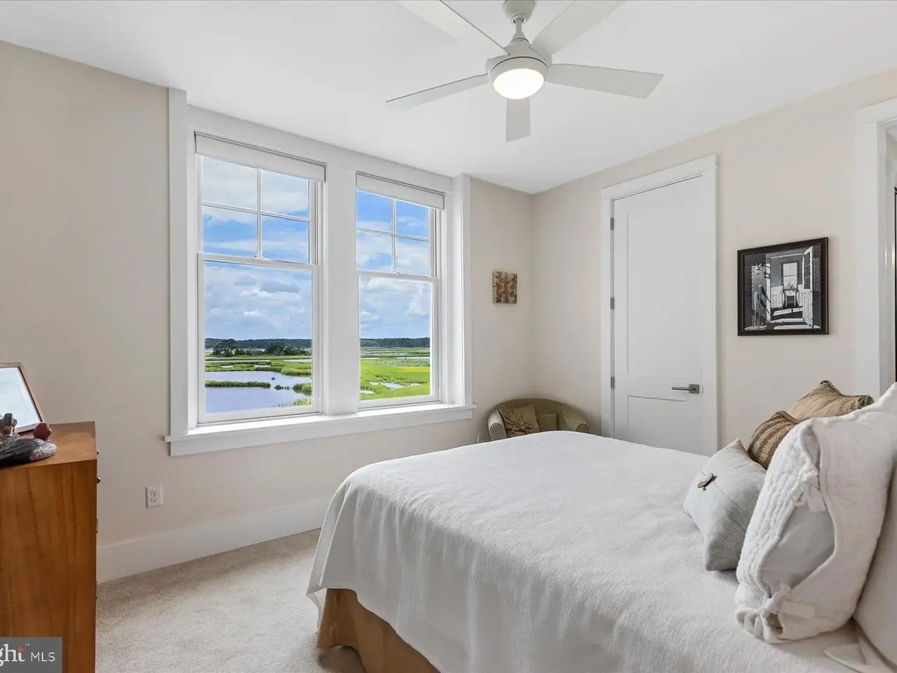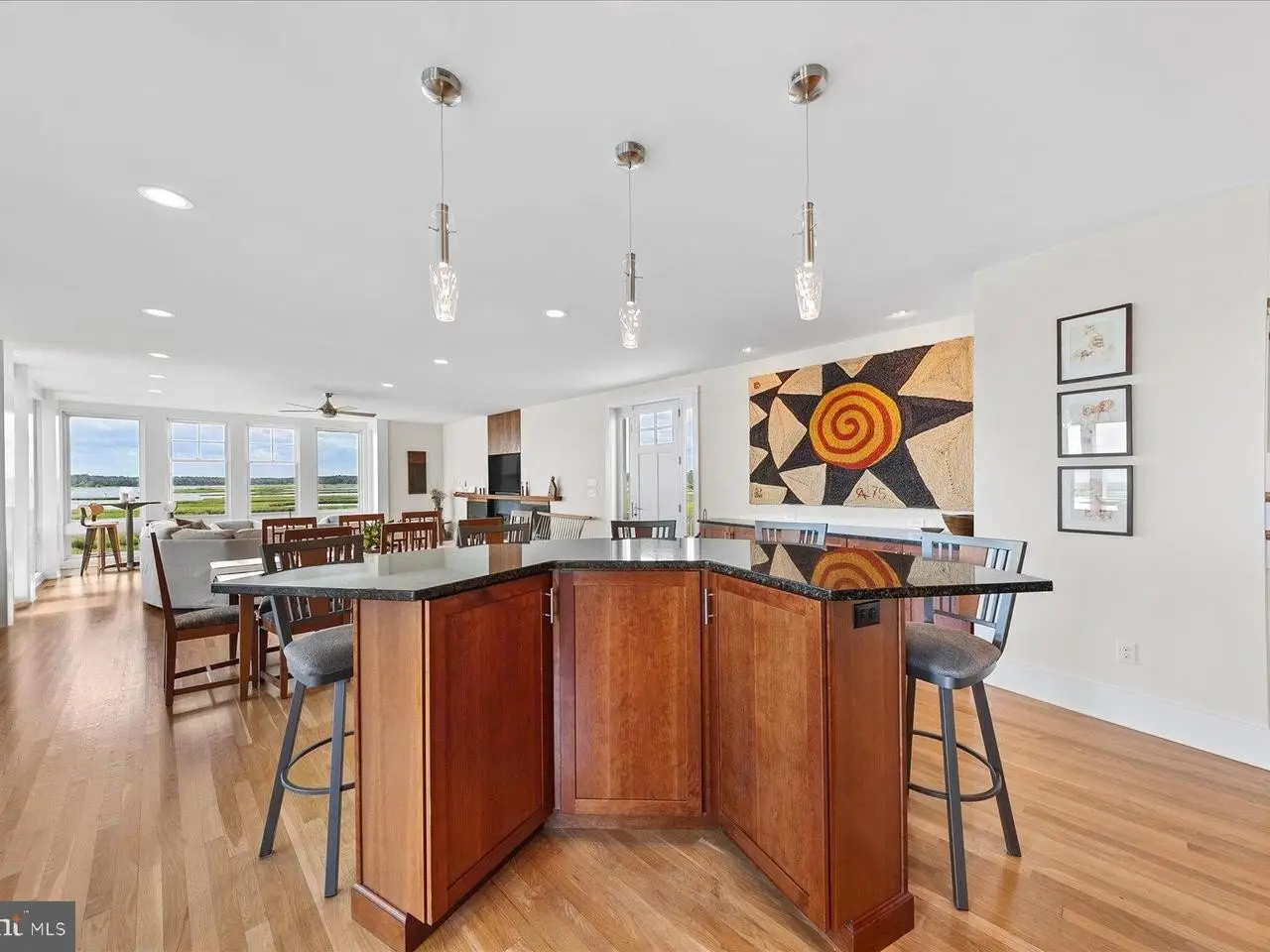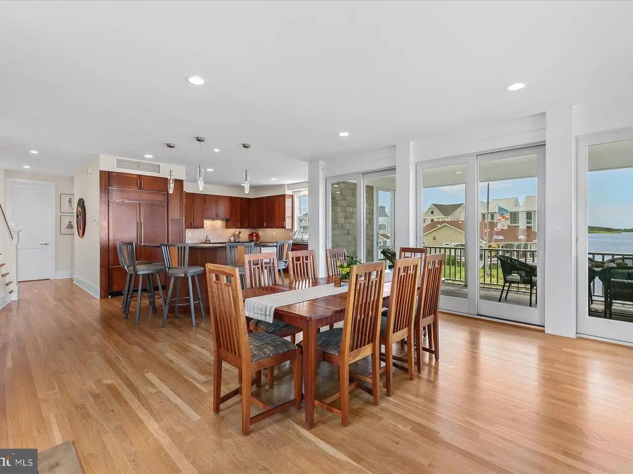 Take in unparalleled panoramic bay views from every room of this sophisticated modern beach home, ideally located on one of the most sought-after bayfront properties with water on three sides of the home. Complete with a private 50-foot dock, boat lift, and double jet ski lift, this exceptional residence was impressively designed, featuring high-end finishes and craftsmanship throughout. The expansive great room, with floor-to-ceiling windows on two sides, effortlessly frames sweeping views of the water and seamlessly blends the living, dining, and gourmet kitchen spaces. A large work island, bar with seating, and premium appliances elevate this culinary and entertaining space with easy access to a screened porch and open deck with views that are unable to be duplicated. The main level also offers a cozy family room, two guest bedrooms, and a full bathroom, along with a convenient powder room for guests. Upstairs, the bayfront primary suite is a tranquil retreat with its own private waterfront deck. Three generously-sized guest rooms each feature en-suite bathrooms, ensuring ample space and privacy for visitors. On the ground level, a spacious workshop and covered patio provide the perfect setting for crab feasts and relaxation, while the brick paver patio offers an ideal spot for evening bonfires by the water. The outdoor shower with a changing area makes clean-ups after a day on the beach or boat a breeze, and a two-car garage plus second one-car garage provide ample storage and convenience for all your vehicles, beach gear, kayaks, canoes, boating accessories, and bikes. Additional highlights include an elevator shaft for future conversion, geothermal hvac, and a location that's impossible to duplicate-situated on a peninsula with sweeping views of the bay and wetlands, yet just moments from the beach. Homes of this caliber, in such a prime location, are a rare offering.