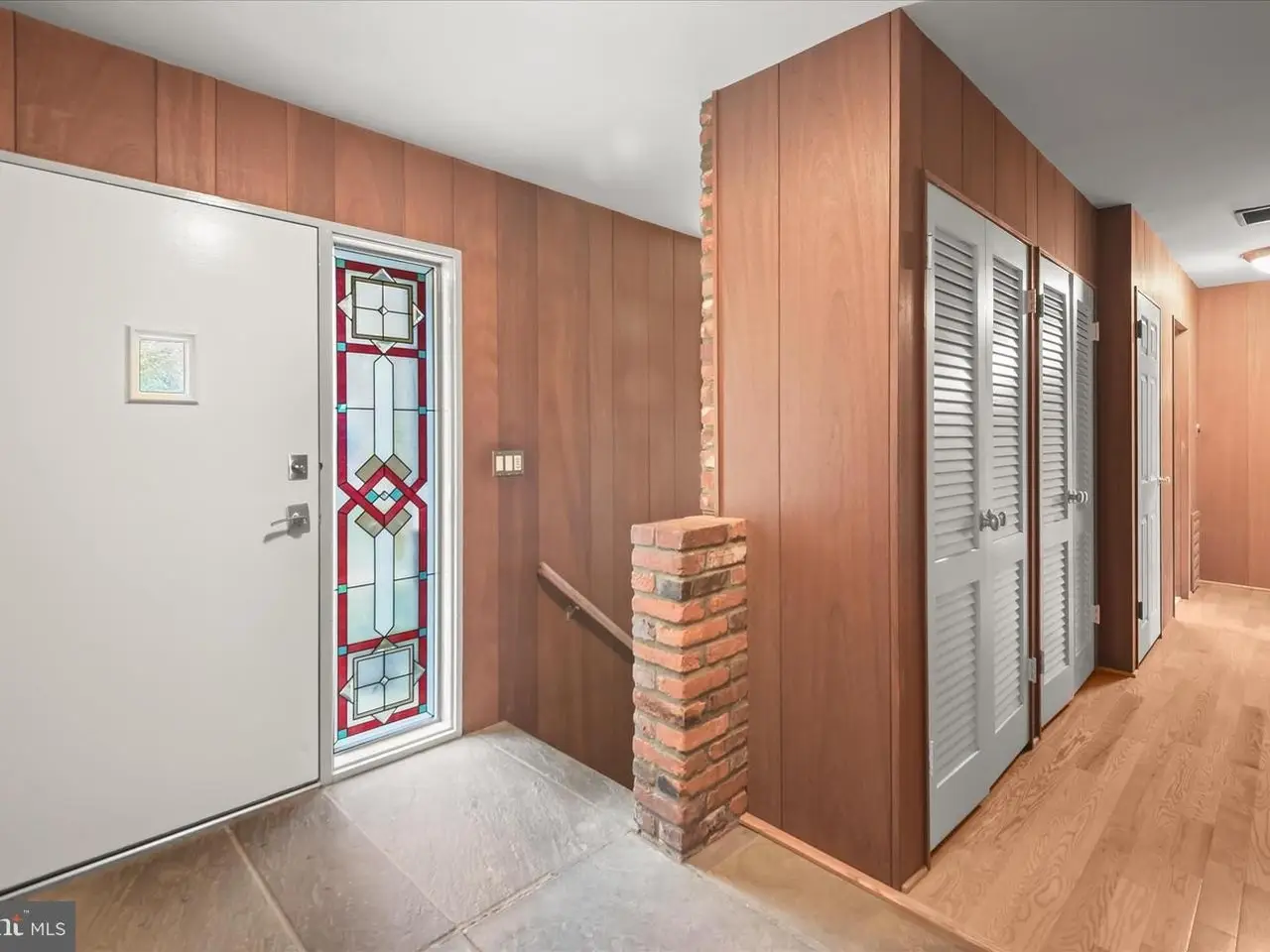 Tucked away on nearly an acre of lush land in the heart of Bethesda's sought-after Green Acres neighborhood, 5311 Allandale Road offers a rare blend of mid-century modern character, privacy, and convenience. Whether you choose to move right in and enjoy this one-of-a-kind home or expand and bring your vision to life, the possibilities are endless. Surrounded by mature trees and tranquil landscaping, this distinctive four-bedroom, two-and-a-half-bath residence provides a true retreat just minutes from downtown Bethesda and Washington, D.C. Step inside to discover a warm and inviting interior filled with natural light, where hardwood floors, hand-laid brick walls, and wood accents highlight the home's authentic 1950s craftsmanship. The main level features a large family room with a wood-burning fireplace and a built-in desk. The primary bedroom suite boasts two closets and a private bathroom with a walk-in shower. Two additional bedrooms and a second full bathroom complete this level, all enjoying serene wooded views from oversized windows. Downstairs, the finished lower level is designed for flexible living. It includes a fourth bedroom, half bath, and a spacious open-concept living and dining area anchored by a striking stone fireplace wall. The kitchen features granite countertops and backsplash, lighted cabinetry, a pantry, and direct access to the stone terrace that is ideal for outdoor dining or quiet relaxation. A large laundry room and a versatile bonus room, perfect for a workshop, studio, or greenhouse, add even more functionality to this level. Outside, winding stone walkways and mature landscaping create a peaceful backdrop for everyday living, with an expansive backyard ideal for outdoor activities. Enjoy easy access to trails, shops, restaurants, Metro, and top-rated schools. Explore the best of Bethesda living in the coveted Green Acres community, moments from Little Falls Swimming Club, the Capital Crescent Trail, and neighborhood parks. Ideally located near Friendship Heights Metro, shops, restaurants, and major commuter routes, this is a wonderful opportunity to make this peaceful retreat your own. Some images have been virtually staged.