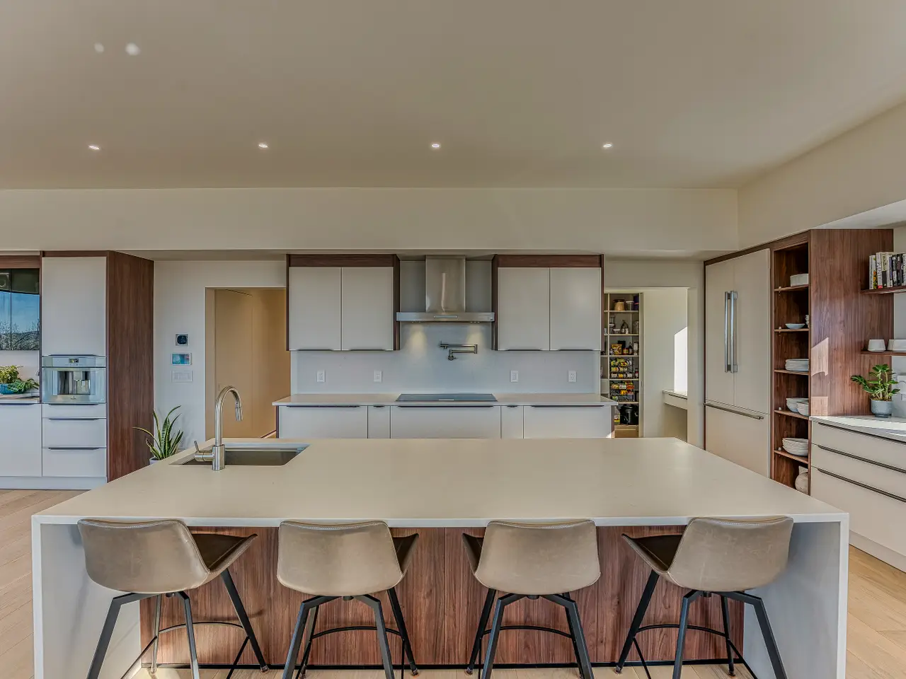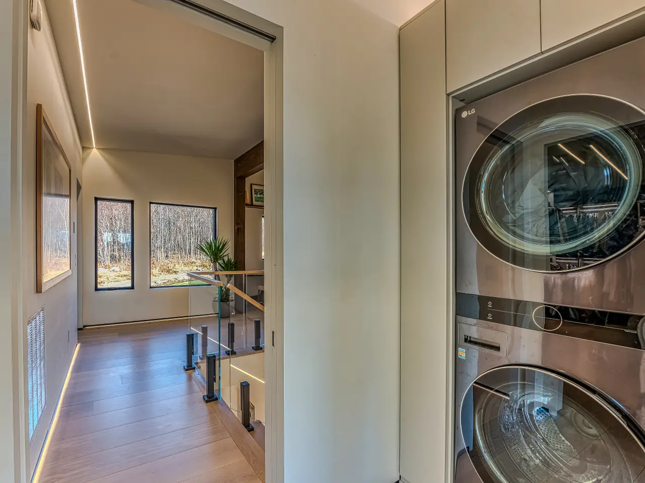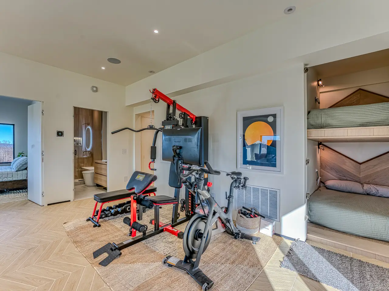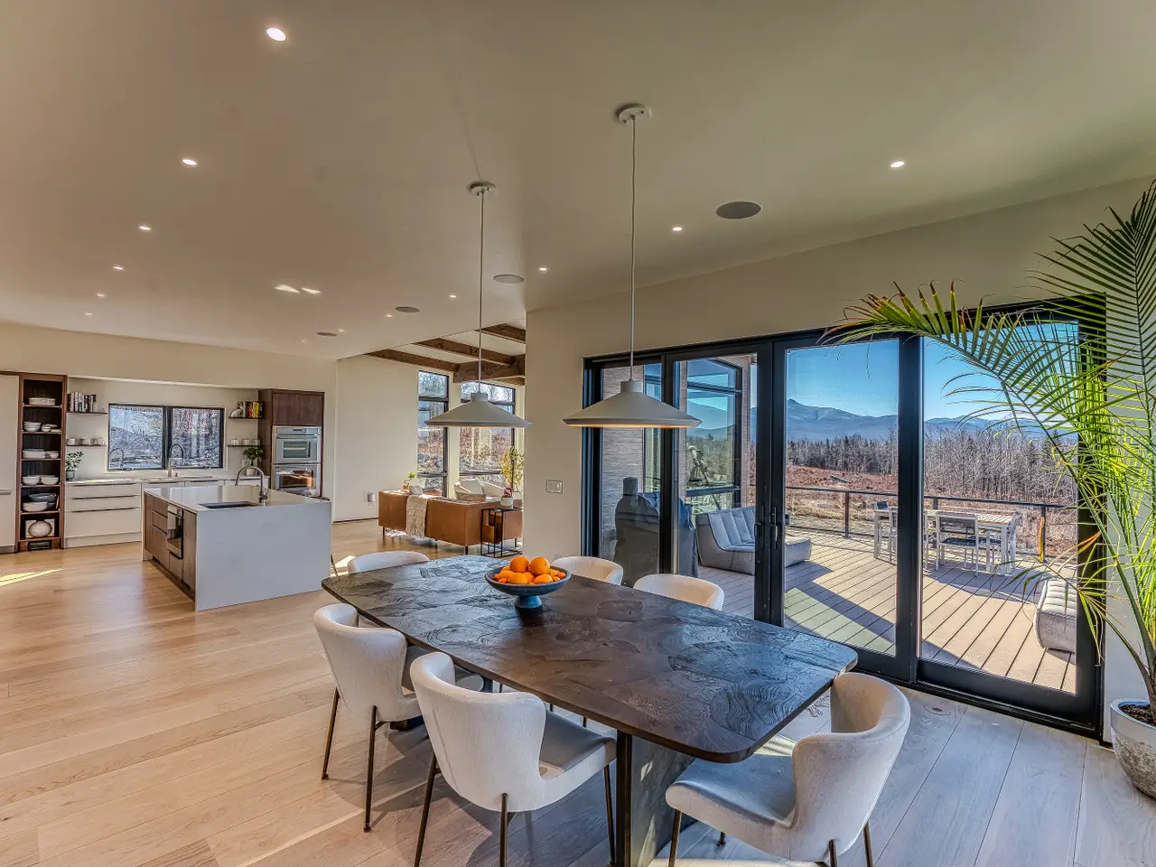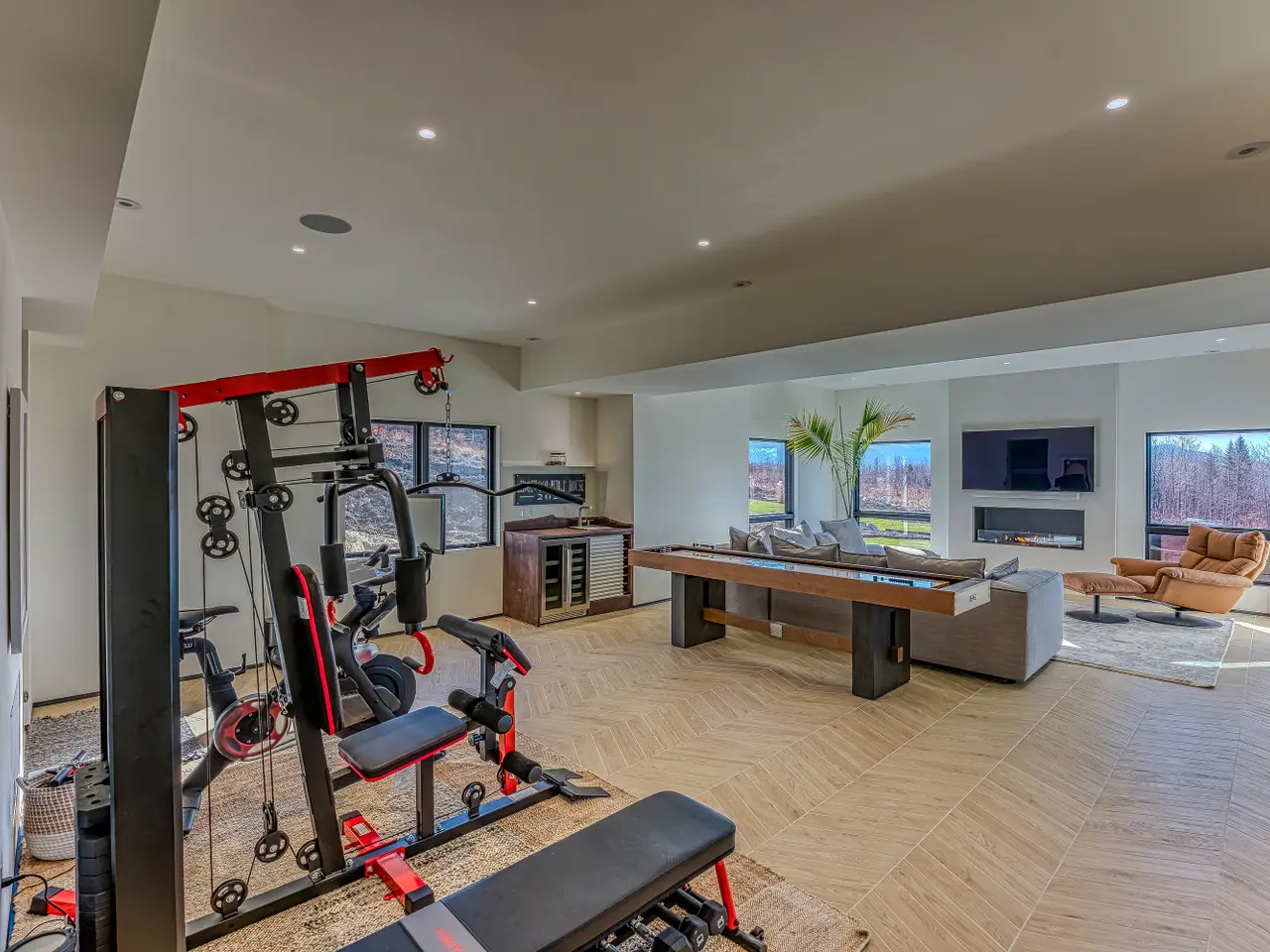 Located in the famed Ledgewood Subdivision, this modern Yankee Barn Home is both architecturally inspired and technologically innovative. Experience some of the finest sunsets in the north country, painted amongst a backdrop of Cannon and Lafayette Mountains into the rolling hills of Vermont. Every detail has been thoughtfully considered, from the finest materials to cutting-edge smart home technology. The use of materials such as tadelakt, lime plasters, clay, wood, quartz, and ceramic seamlessly blends the indoors with the outdoors, while being illuminated by in-wall linear LED lighting. Custom cabinetry from Germany and a Thermador appliance suite form the foundation of the open-concept, luxurious chef's kitchen. The primary bedroom and bath were expertly designed to accommodate the southwesterly-facing view, with large picture windows that give the sense of being perched among nature. Two additional bedrooms and a full bath are featured on the second level, as well as a built-in walnut desk. All the closets in the home were designed by California Closets, showcasing efficiency and luxury. The lower level features an exercise area and living room, as well as a bedroom with a walk-in closet, a Balinese-inspired steam shower in the bathroom and built-in full over full bunk beds. The home has been given an EnergyStar certification, features geothermal heating/cooling and has two bioethanol fireplaces for ambiance and warmth. Broker-owned.
