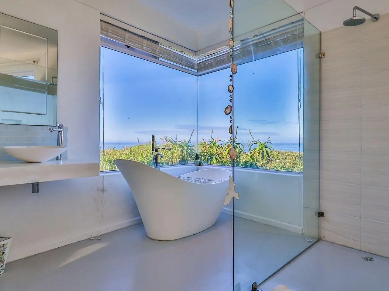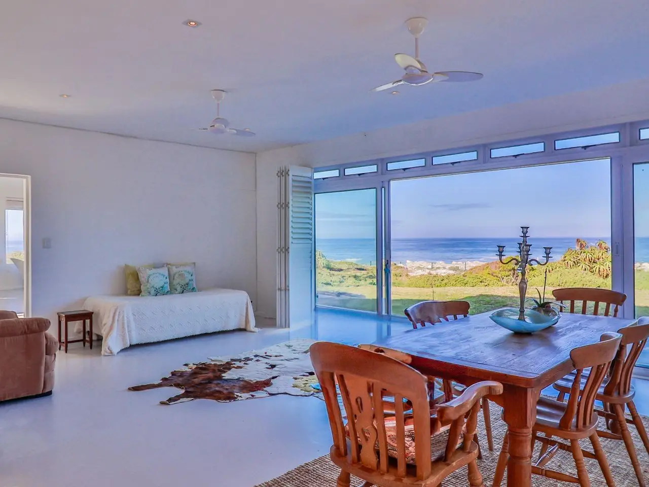Call back the past with the original foundations being 80 years old aka WW11 and more pertinent this property housed the radar station monitoring room at the time. This heritage property was owned by one of the founding families of Betty's Bay from 1947 - 2014 who undertook in 1970 to carry out major renovations and then brought into the 21 st century to be what it is today in 2015. Being a desirable split level home with 360* sea views from the main suite upstairs, this home offers a laid back lifestyle with 3/4 south-facing en suite bedrooms opening onto their own private patios each with sea views - these all enjoy the west sun/summer sunsets. The fourth en suite bedroom faces north and is bathed in morning light with distant sea views and the occasional penguin waddling by. A north facing study which too, is embraced in morning sunlight offers an invigorating/peaceful spot to spend time at one's desk. The open-plan living/dining area with woodburning stove/kitchen with laundry and wine cellar are sunny, bright and inviting. There is additional storage/mud room which allows the family to 'hide' toys/swimming cum surf gear. The main suite upstairs has views across the ocean to Danger Point/Hangklip lighthouse to the west incl the cape of Sea Farm. The free-standing bath has sizable corner windows making bathing in the light of the Full Moon a new experience. The outside braai spot gives the family an ideal setting to enjoy the outdoors, not forgetting those sunsets. Screeded flooring throughout allows for easy laid back living. A water tank for those eventualities. Fenced on all sides. Security is in place together with American shutters on pertinent sliders. This is a golden opportunity to own a piece of history in 2025 and weave your own patchwork of memories as time plays out.