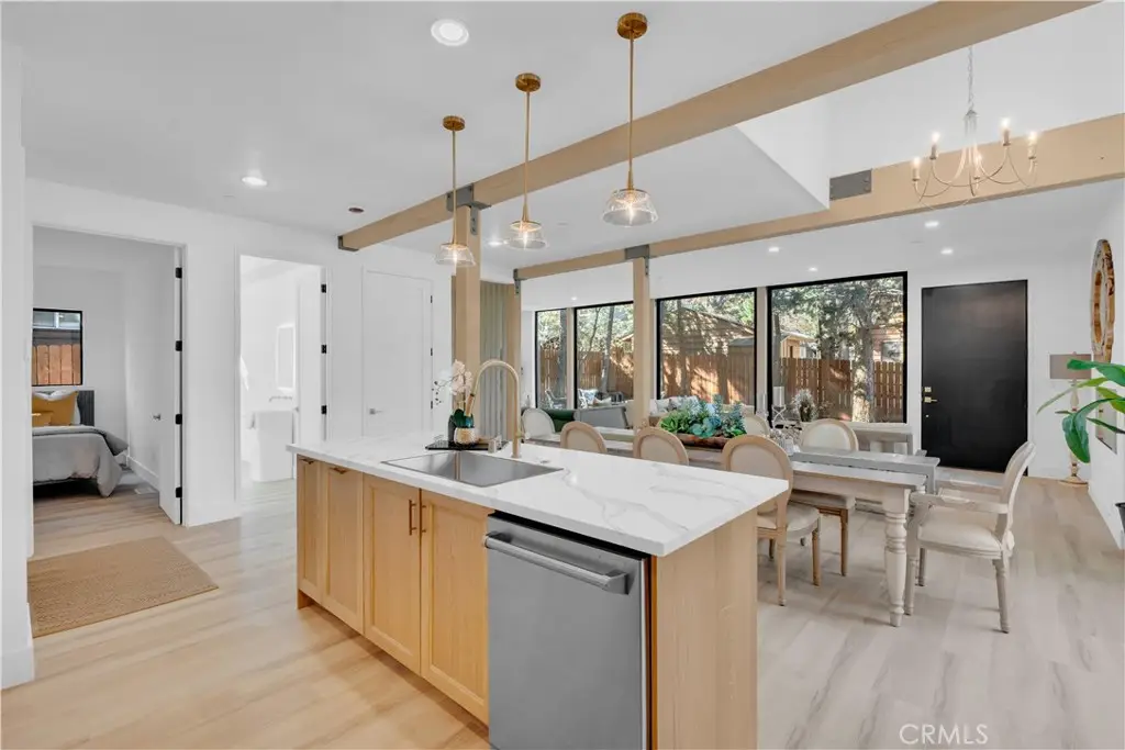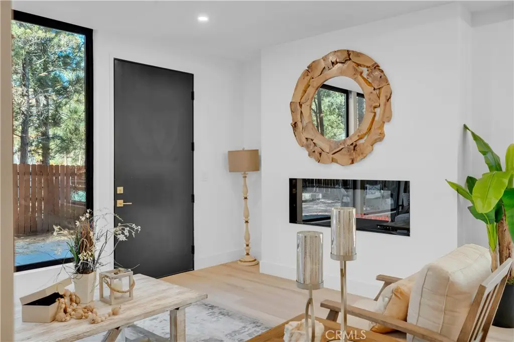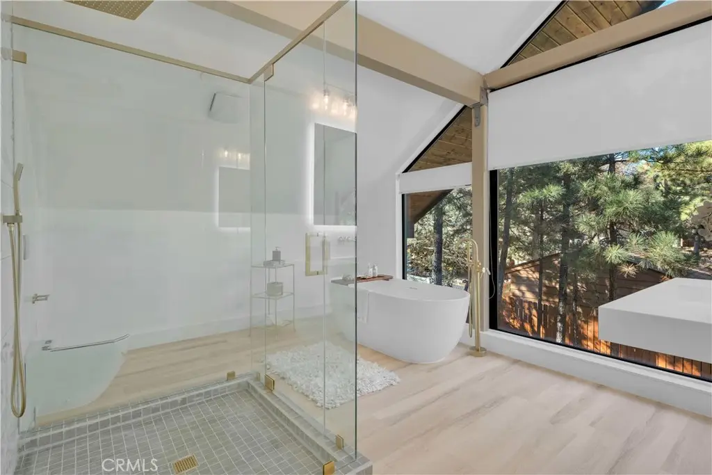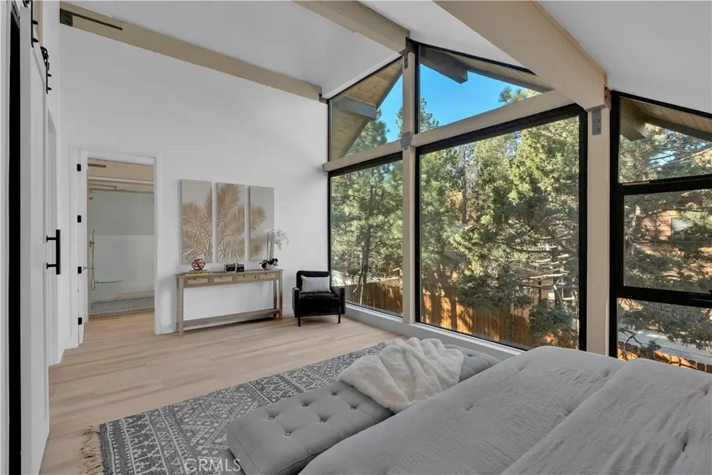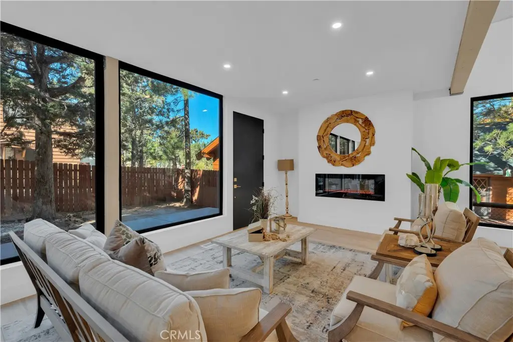 Welcome to Sugarloaf's crown jewel - the newest, largest, and most impressive modern home in the area. This brand-new, never-before-occupied home offers 4 spacious bedrooms, 2.5 bathrooms and 2,167 sqft of sleek mountain living on a 5,000 sq ft lot - equipped with RV parking. Perfectly located 10-15 minutes from downtown Big Bear, the lake, and the slopes, this home combines luxury craftsmanship with the rugged beauty of the mountains. Built to outperform and outshine anything nearby, every inch of this home reflects premium construction and attention to detail. The exterior features 24-gauge metal siding and shiplap accents, paired with a 24-gauge metal roof built to withstand the toughest of elements. Inside, you'll find wide-plank luxury vinyl flooring, Quartz countertops, and Pex-A plumbing for durability and efficiency. Dual HVAC systems ensure year-round comfort, while the open floor plan and modern design create a seamless flow throughout the home. This is not your average mountain cabin - it's a statement piece. A rare combination of size, design, and new construction that sets a new standard for modern mountain living in Sugarloaf. Whether you're looking for a high-end retreat, full-time residence, or an elite investment property, this home delivers unmatched quality, style, and performance.