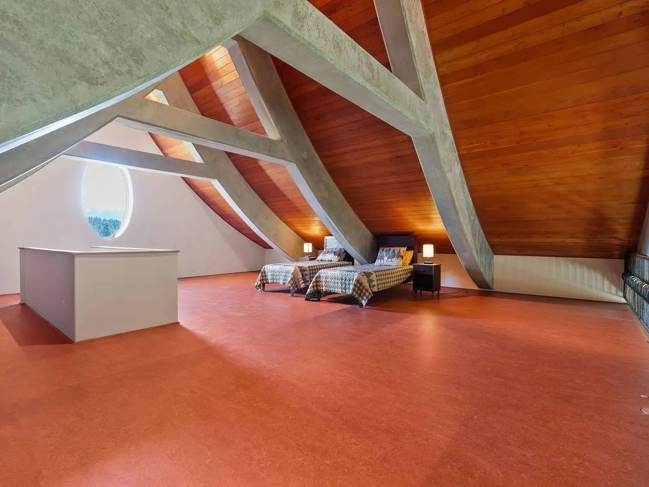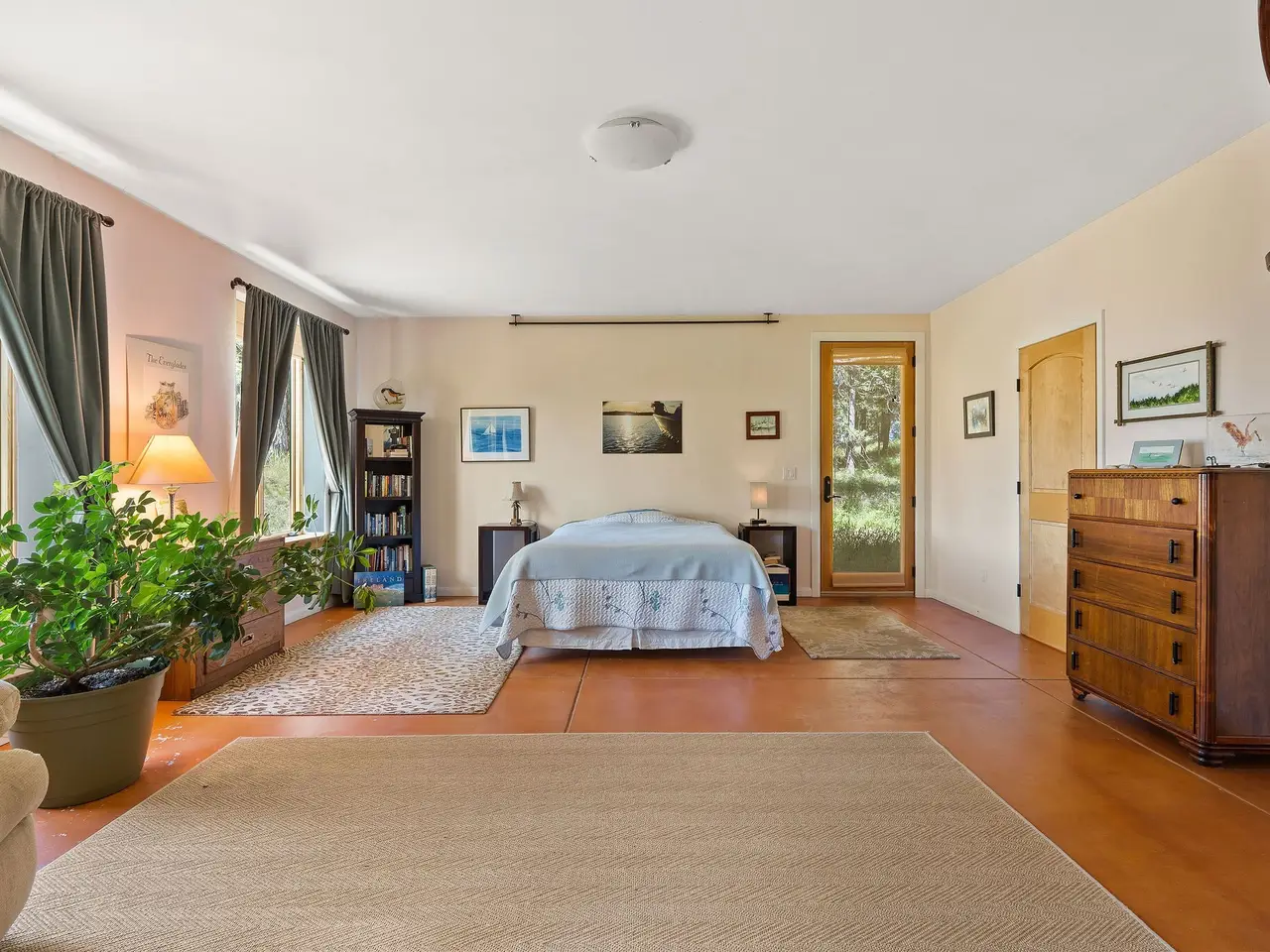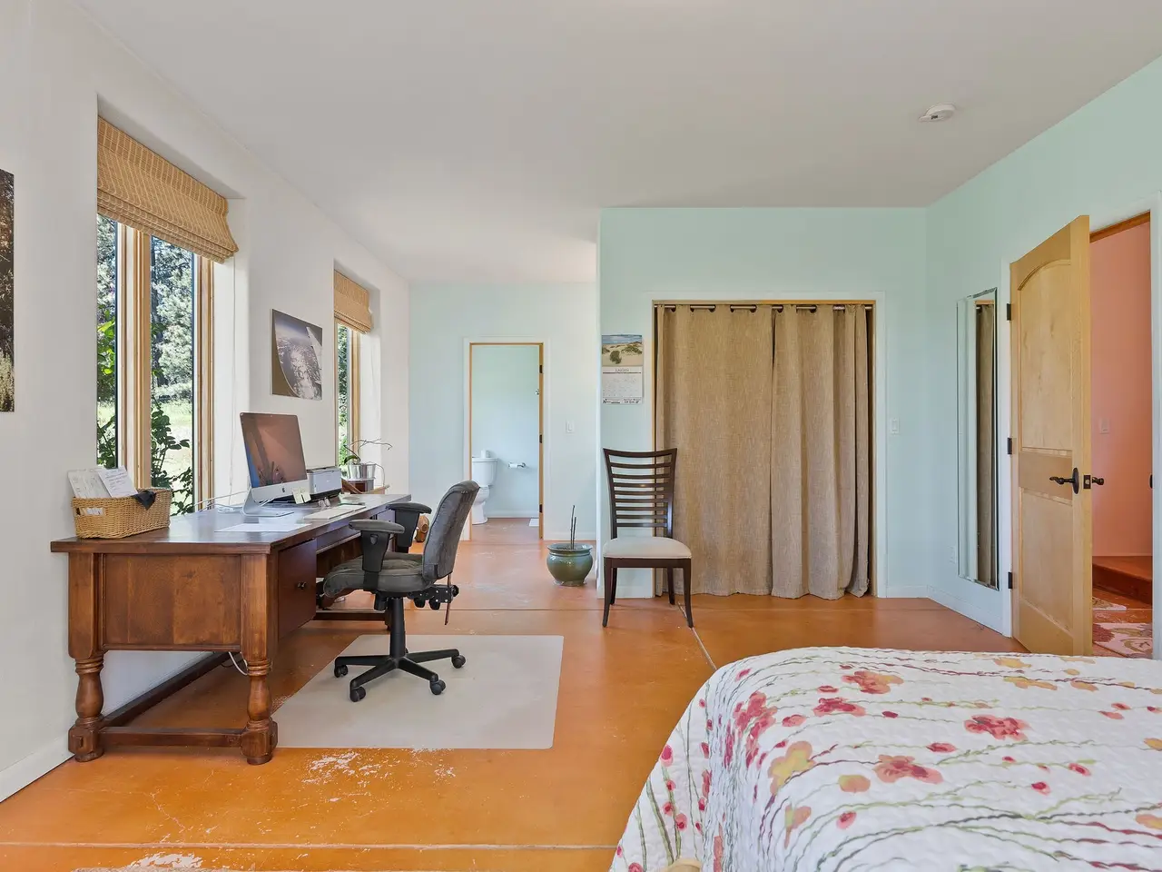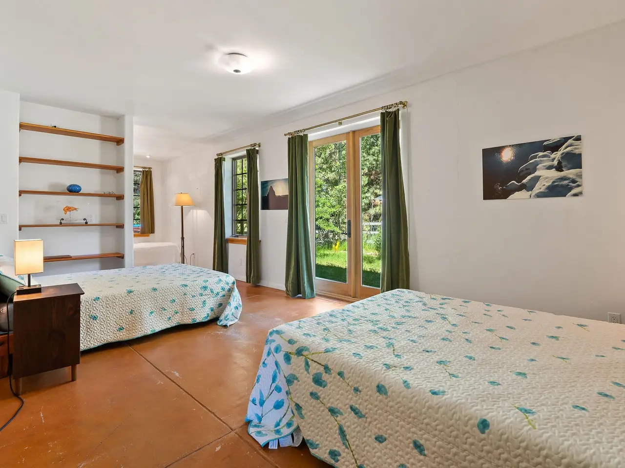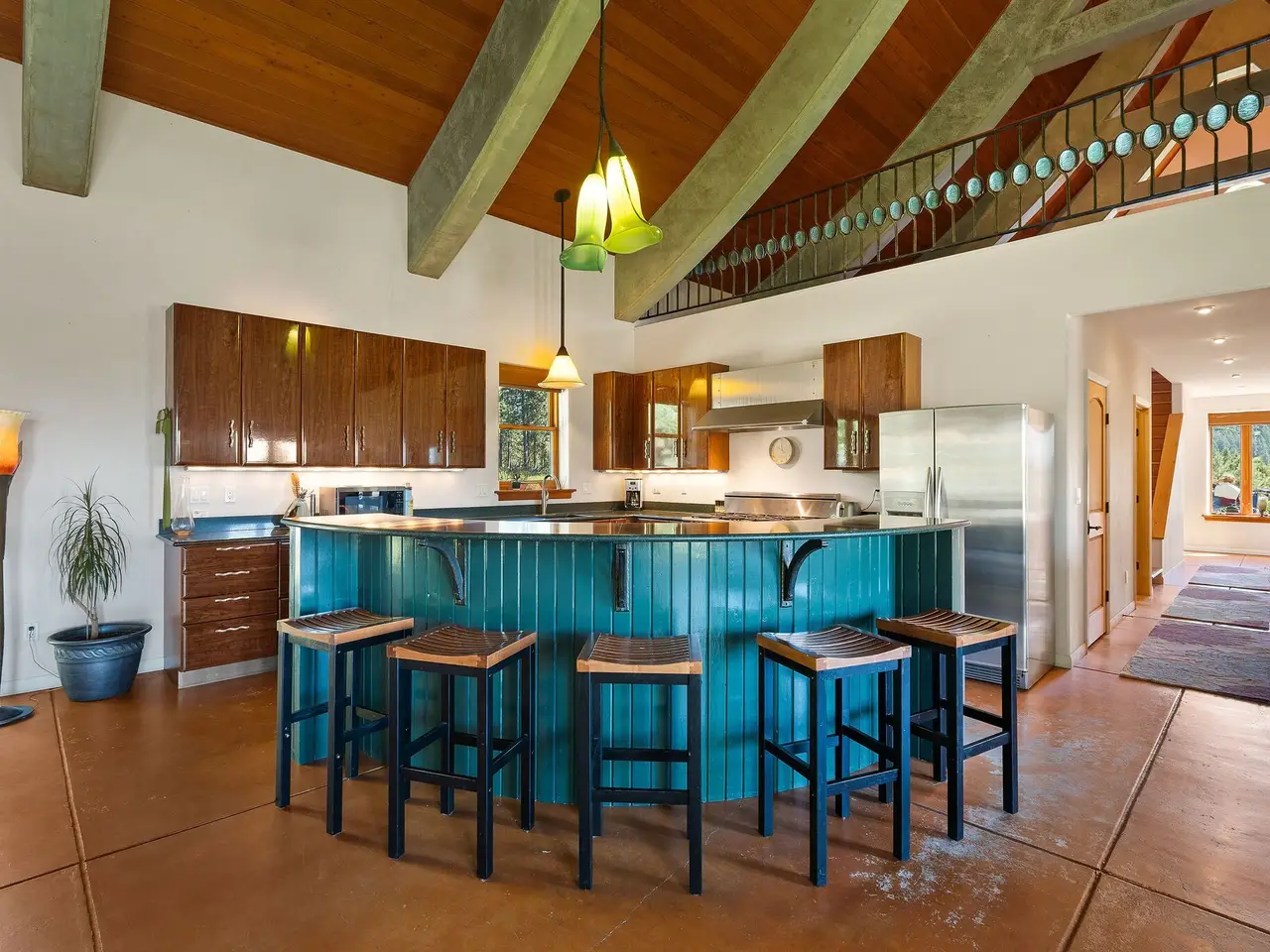 This stunning concrete tilt-up home is set on a breathtaking 20-acre meadow property, offering a serene and tranquil atmosphere just minutes from downtown Bigfork. The exceptional architectural design features magnificent arched concrete beams that support the unique structure. Inside, the spacious great room includes three luxurious bedroom suites and two distinctive lofts, all showcasing spectacular views of the surrounding meadow and mountain range. A guest suite above the garage adds a fourth bedroom, complete with a full bath, mini kitchen and gas fireplace. Additional rooms on the ground floor provide versatile options for various uses. The property also boasts a fully functional 2,120-square-foot workshop garage, currently serving as a working artist studio. This one-of-a-kind home is truly a masterpiece.