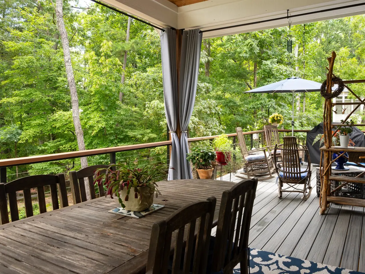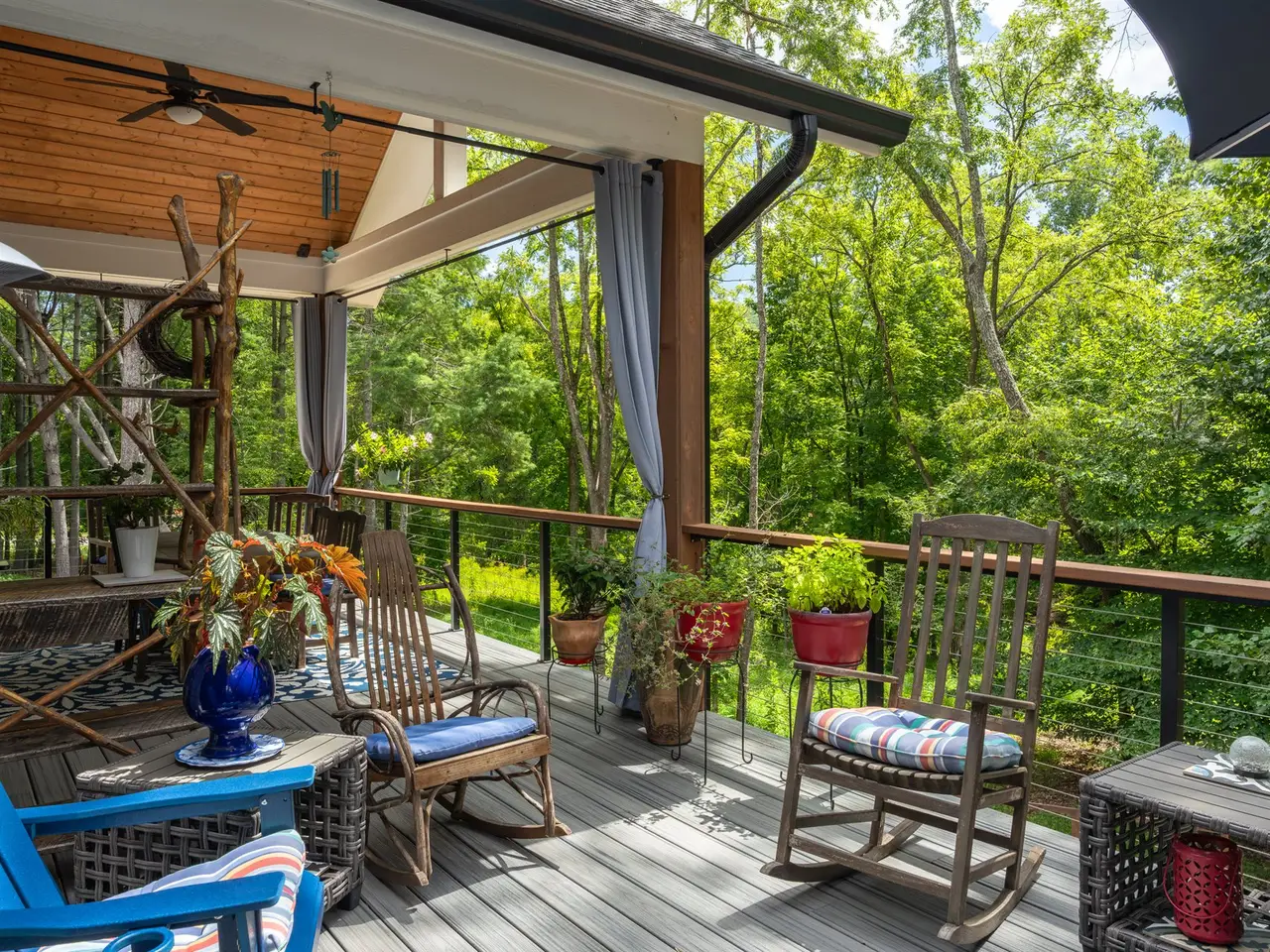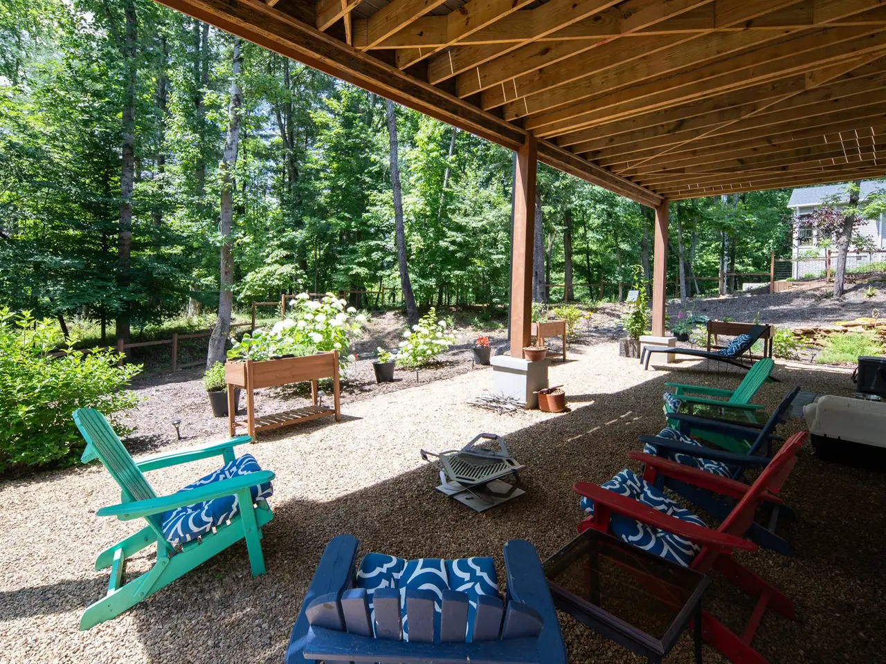 Expansive rear porch with outdoor fireplace