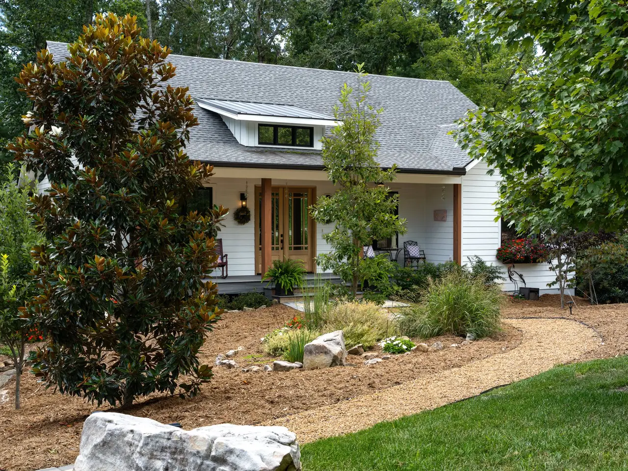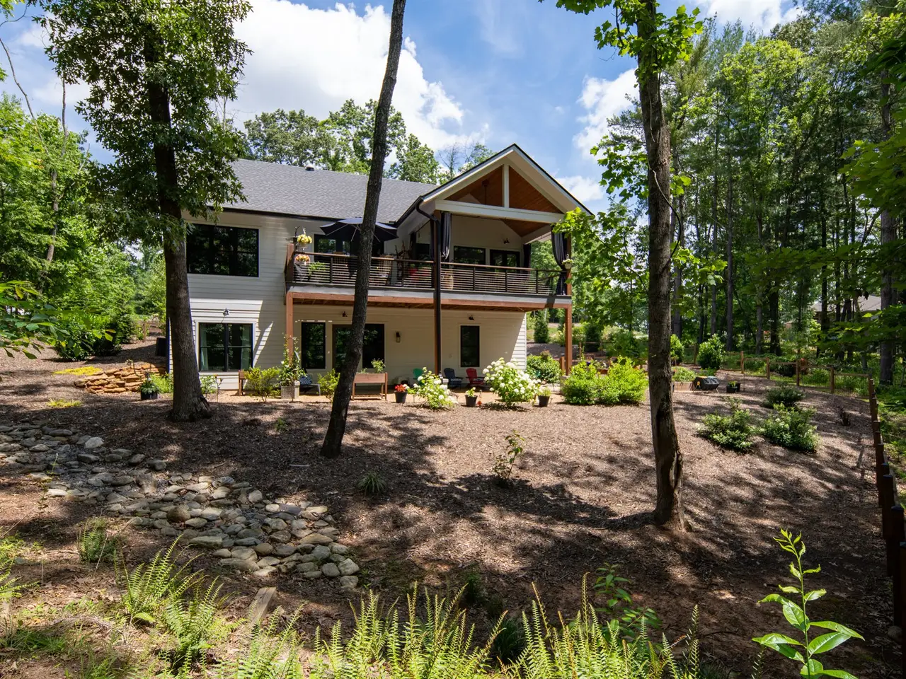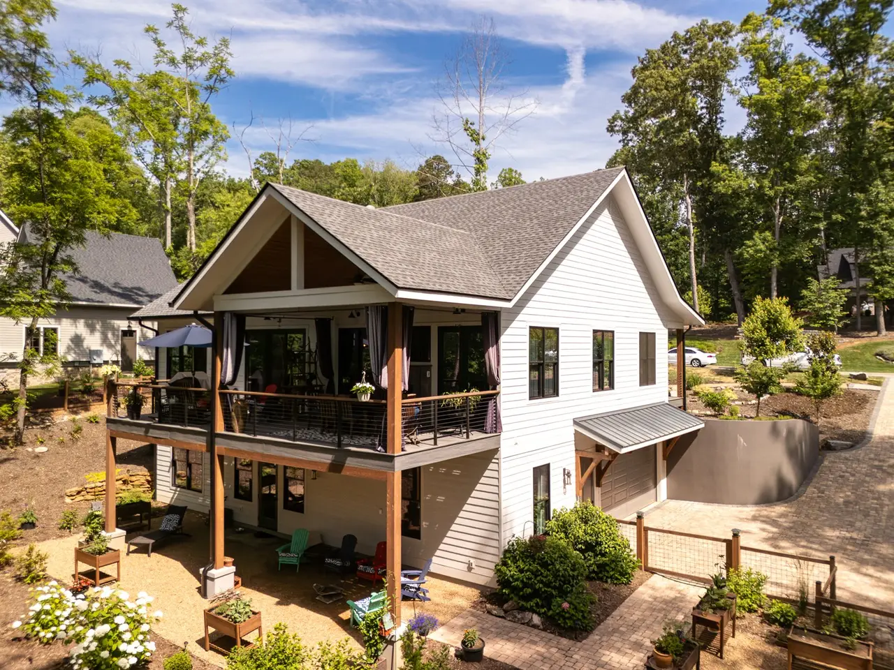 This extraordinary custom home, built in 2020, is ideally positioned on a large private lot within the exclusive gated enclave of Waters Edge at Biltmore Lake. Blending timeless elegance with modern sophistication, it showcases impeccable design and craftsmanship throughout. A welcoming covered front porch leads inside to soaring ceilings, an open-concept great room, and a chef's kitchen that flow seamlessly for both entertaining and everyday living. The main-level primary suite is a serene retreat, while the expansive rear porch with outdoor fireplace creates the perfect setting for refined al fresco dining. The lower level offers two guest suites, two full baths, and plumbing for a future kitchenette?ideal for multi-generational living or luxurious guest accommodations. An elevator ensures effortless access on every level. Just steps from the lake and trails, this residence provides unmatched access to boating, fishing, hiking, concerts, community events, and racquet sports within the coveted Biltmore Lake lifestyle.